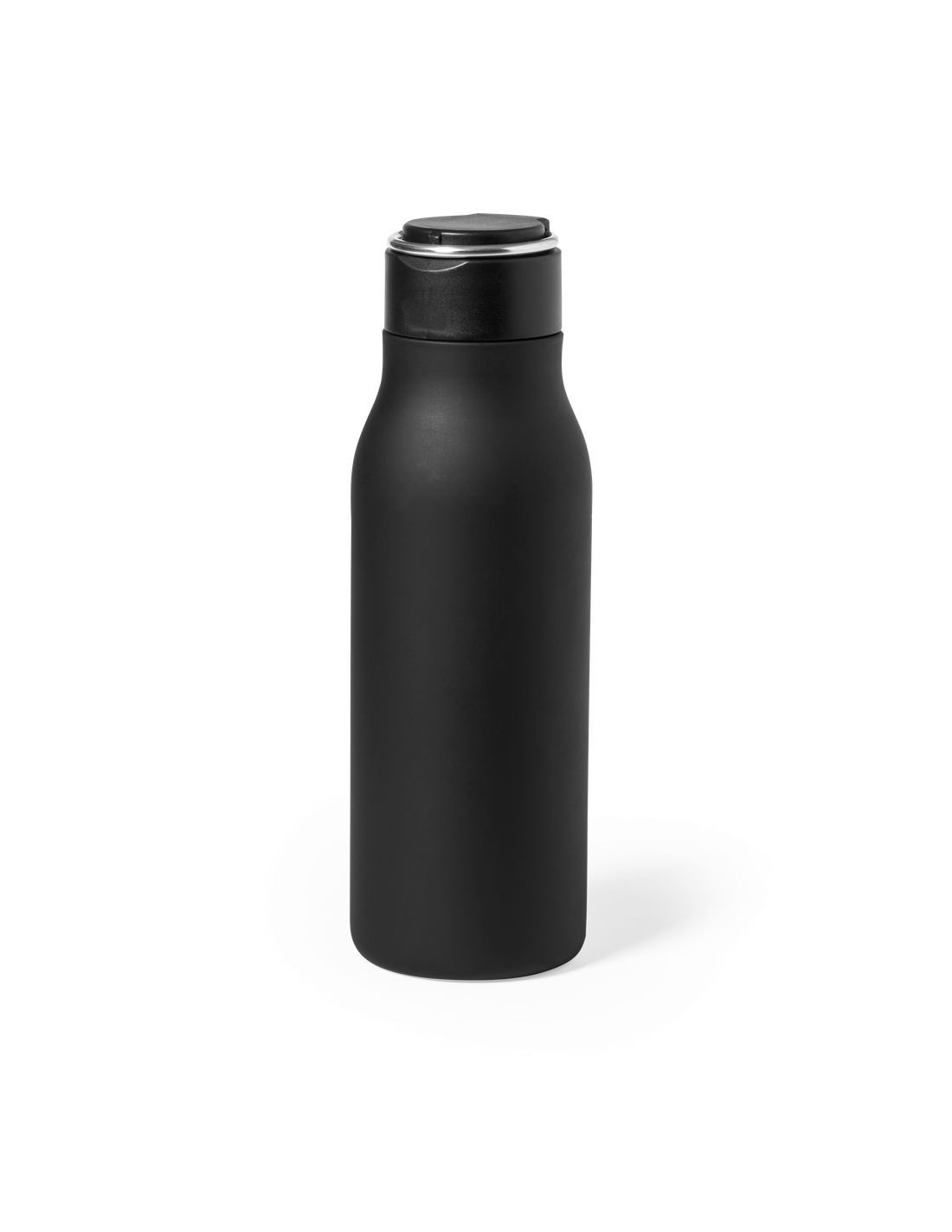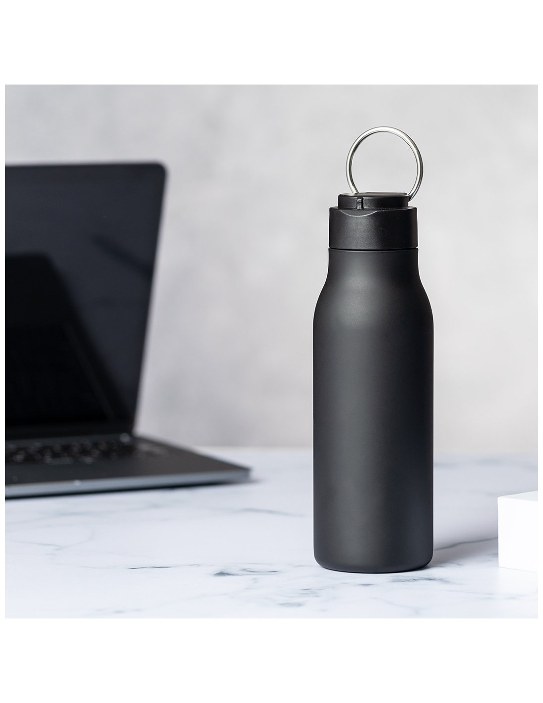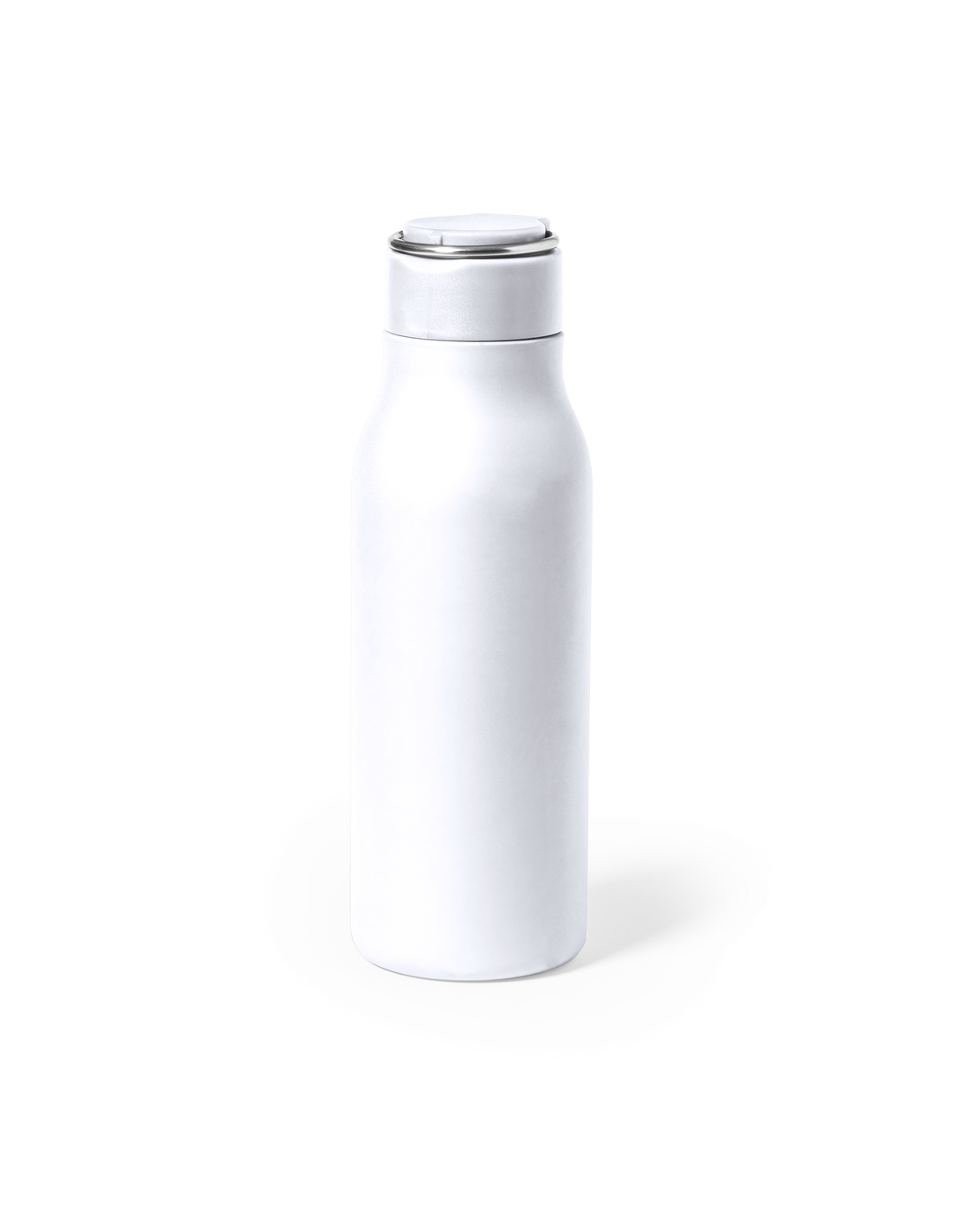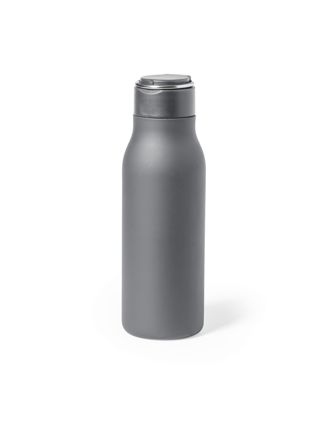 Bidón de 600 ml de capacidad, fabricado en acero inox. Tapón a rosca a juego libre de BPA, con anilla de transporte integrada, plegable y de acabado cromado. Disponible en variada gama de colores satinados y presentado en caja individual de diseño kraft.Disponible manual de instrucciones en español e inglés.