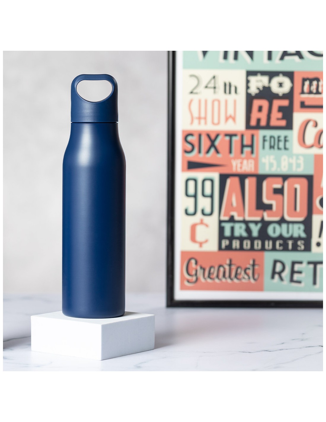 Bidón de 850 ml de capacidad, fabricado en acero inox. Tapón a rosca a juego, con asa de transporte integrada y libre de BPA. Disponible en variada gama de colores satinados y presentado en caja individual de diseño kraft.Disponible manual de instrucciones en español e inglés.