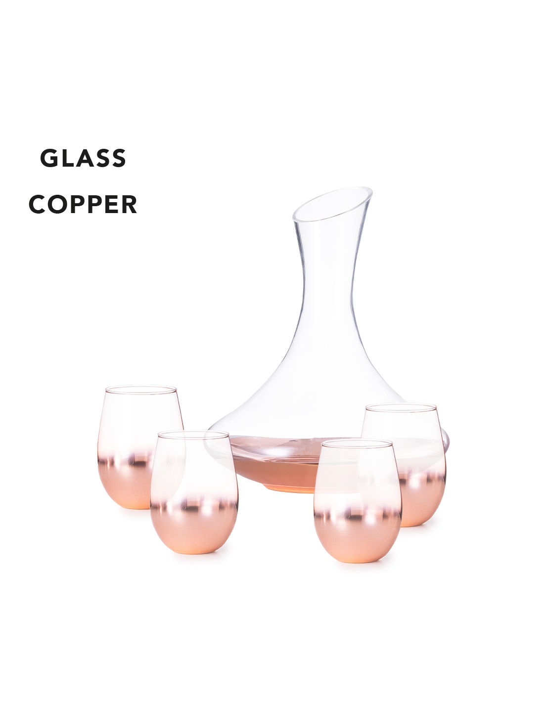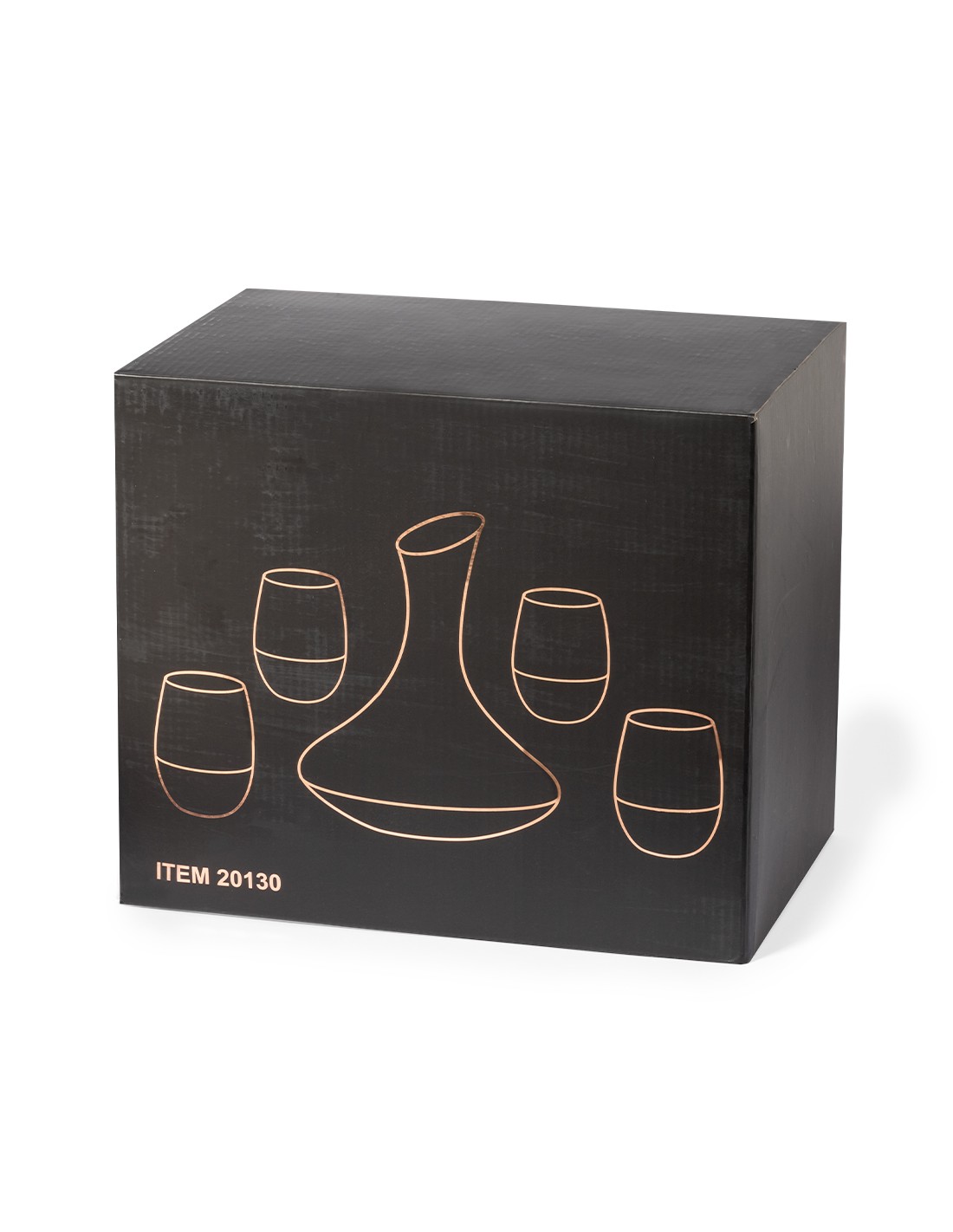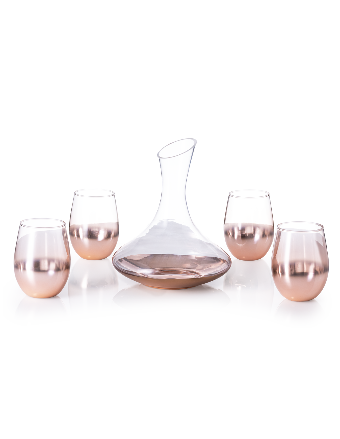Elegante set de vinos fabricado en cristal, con delicado e innovador recubrimiento rosado degradado. Un regalo de diseño que incluye 4 vasos de 500 ml y un decantador de 1,8 l.Presentado en exclusiva caja individual de diseño negra.