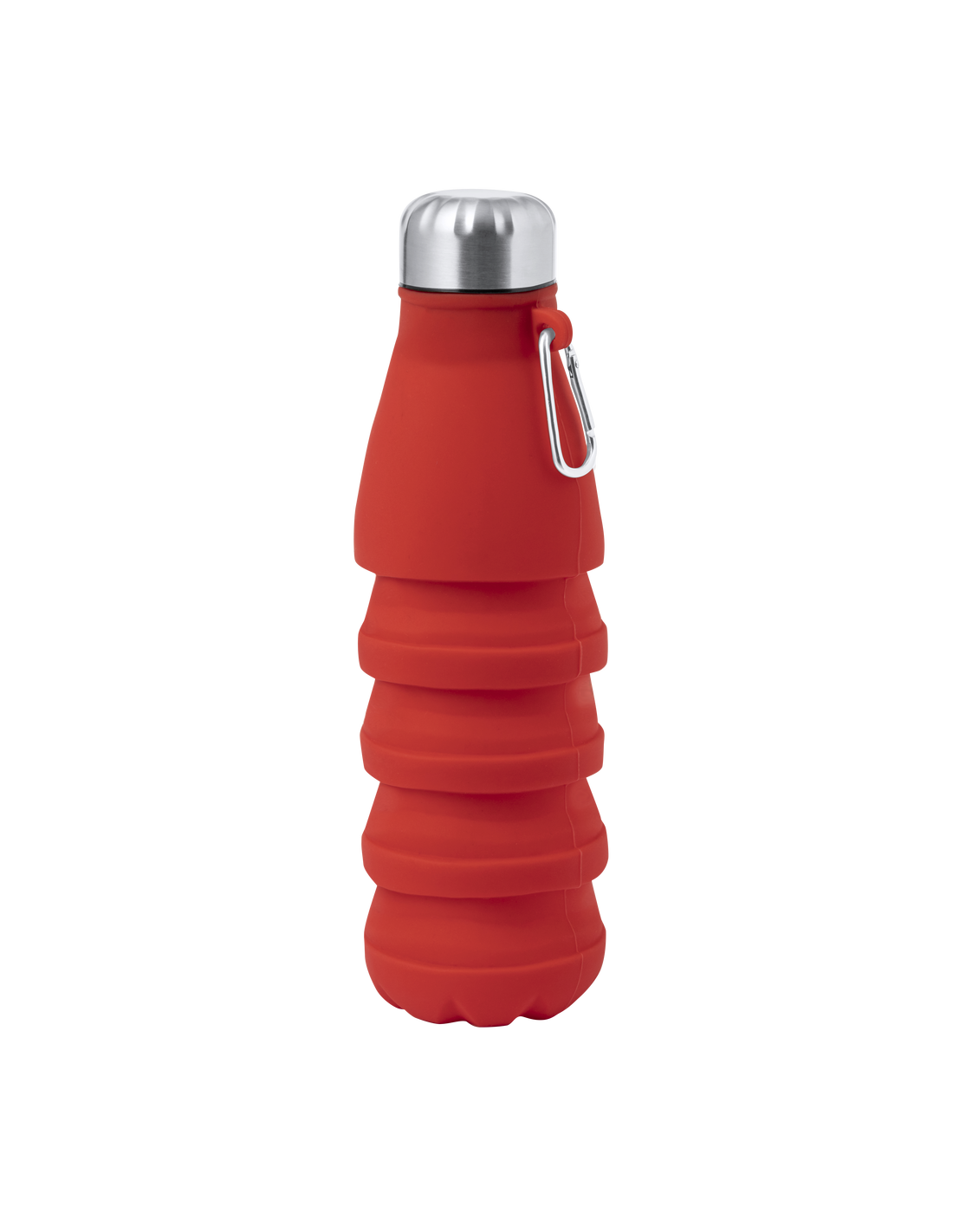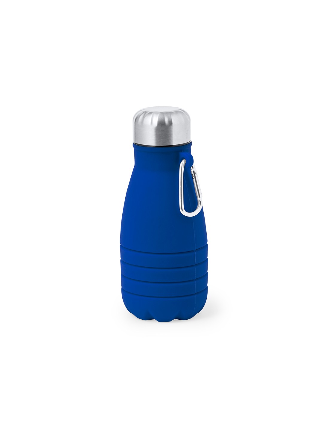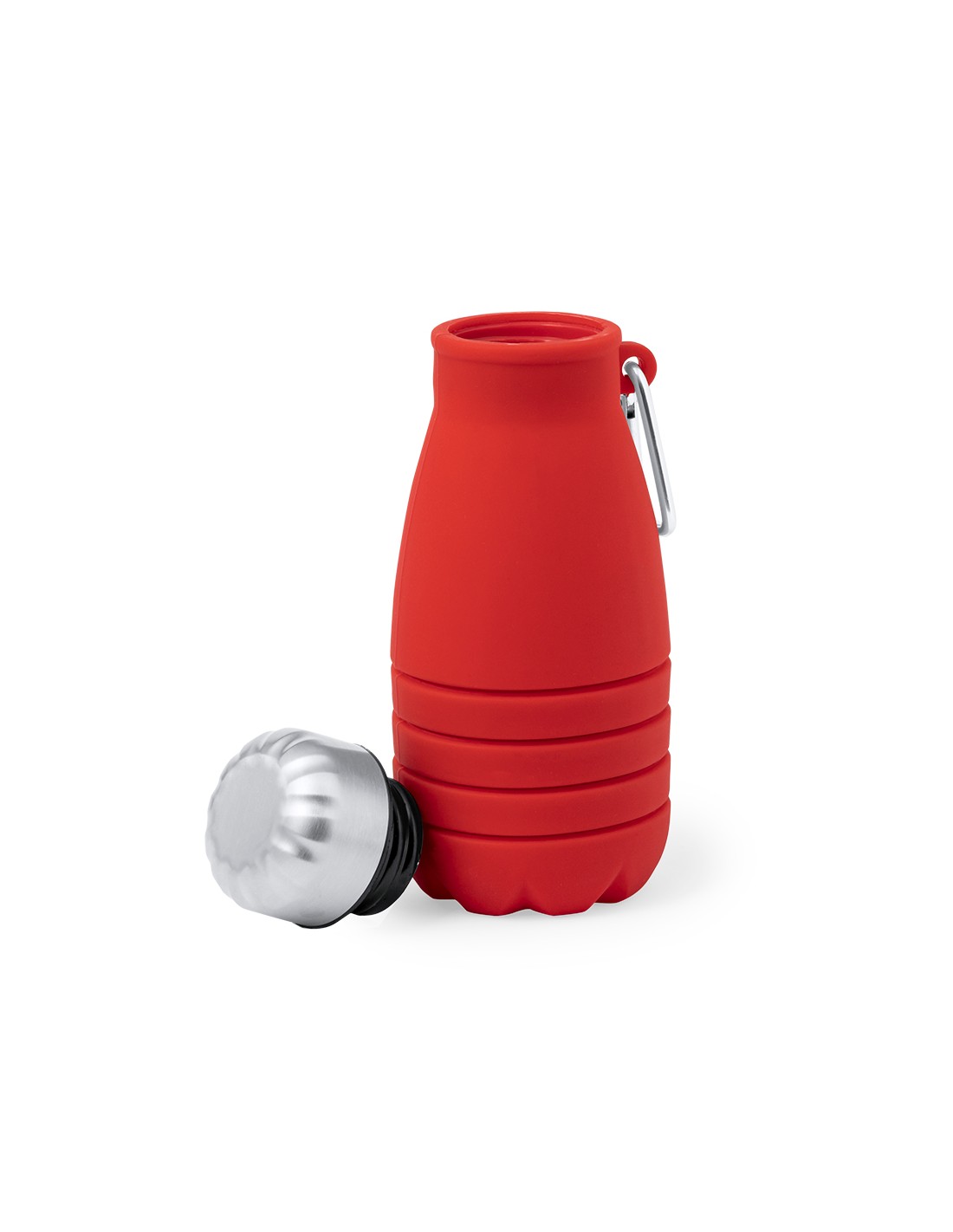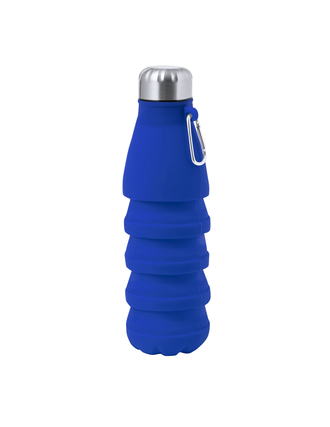 Bidón plegable de 550 ml de capacidad. Fabricado en silicona de alta calidad con tapón de acero inoxidable. Con cuerpo flexible de acabado mate, este bidón puede ser plegado para un cómodo y sencillo almacenamiento. Incluye mosquetón para fácil transporte. Libre de BPA. Es ideal para tener en tu escritorio, mesa o en cualquier superficie donde disfrutar tranquilamente de tu bebida favorita. Medidas plegado: Ø7,1 cm x 16,9 cm de alto. Medidas desplegado Ø7,1 cm hasta 24,8 cm de alto.