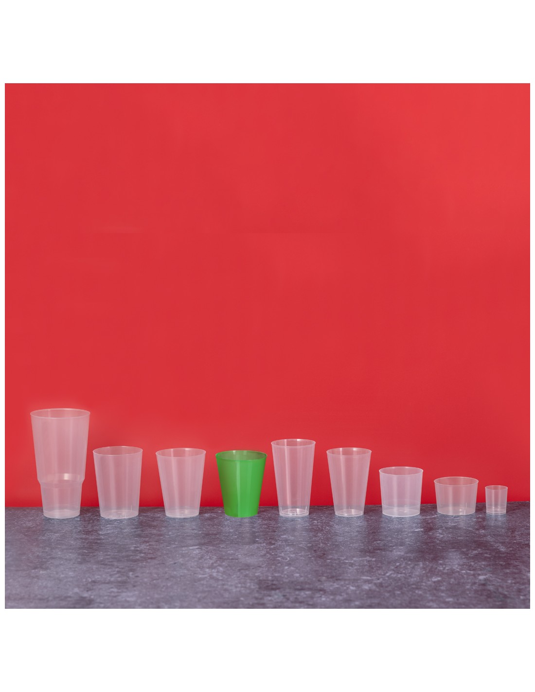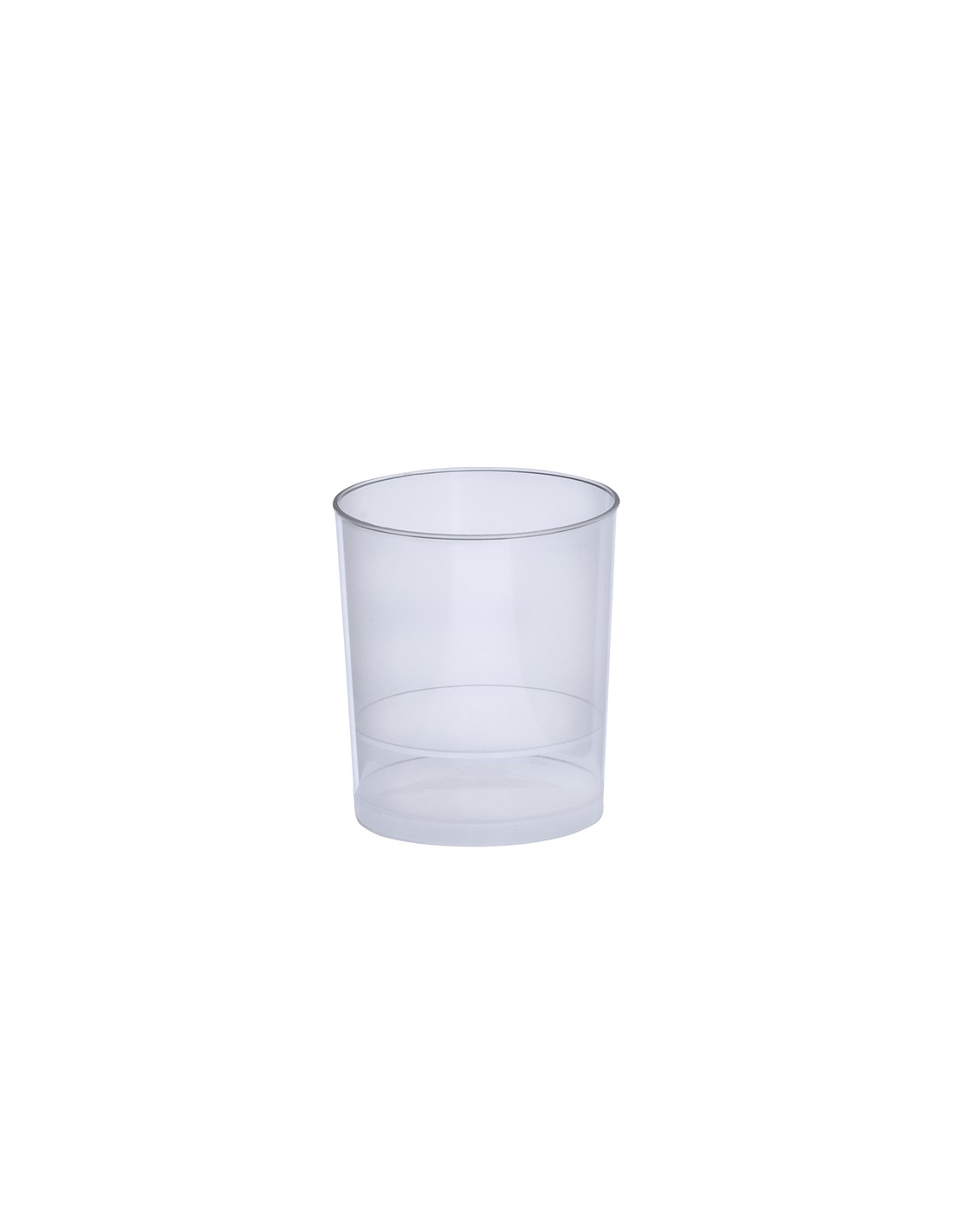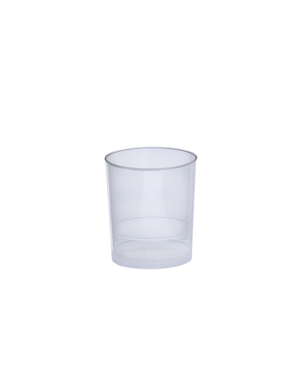 Vaso de 35 ml de capacidad en resistente y flexible material PP. Reutilizable y en acabado translúcido.