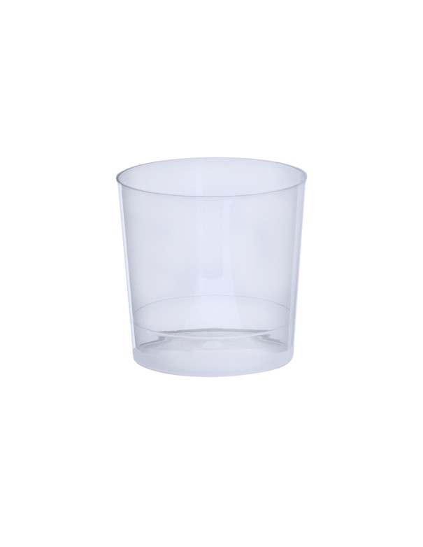 Vaso de 330 ml de capacidad en resistente y flexible material PP. Reutilizable y en acabado translúcido.
