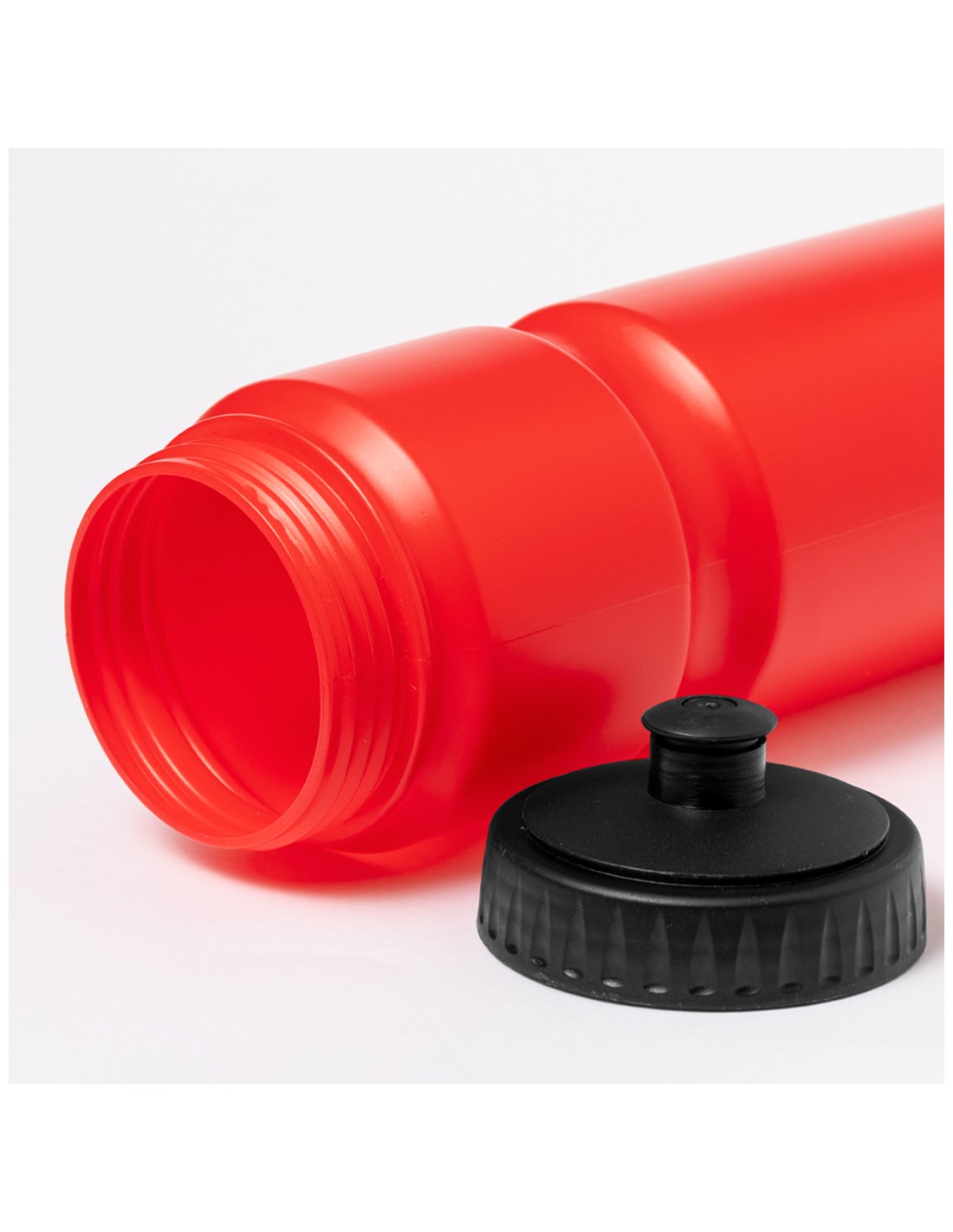 Bidón de 840 ml fabricado en resistente PE, con un diseño ergonómico que se adapta cómodamente a la mano. Cuenta con un tapón a rosca que incluye un dosificador, asegurando un sellado perfecto. Disponible en una variada gama de colores y presentado de manera individual en bolsa de papel.