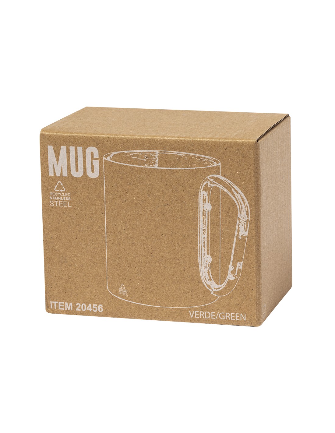 Taza doble pared en Acero Inox Reciclado de 300 ml. Con asa en forma de mosquetón para fácil transporte y cuerpo en variados colores mate. Presentada en caja de diseño kraft.El acero es uno de los materiales más demandados y que puede encontrarse casi en todas partes, desde productos de uso diario a grandes construcciones. Con innumerables propiedades, entre las que cabe destacar la durabilidad y su alto grado de reutilización, convirtiéndolo en una alternativa muy valorada en soluciones de sostenibilidad. Debidamente tratado, permite obtener nuevos recursos de infinita utilización.