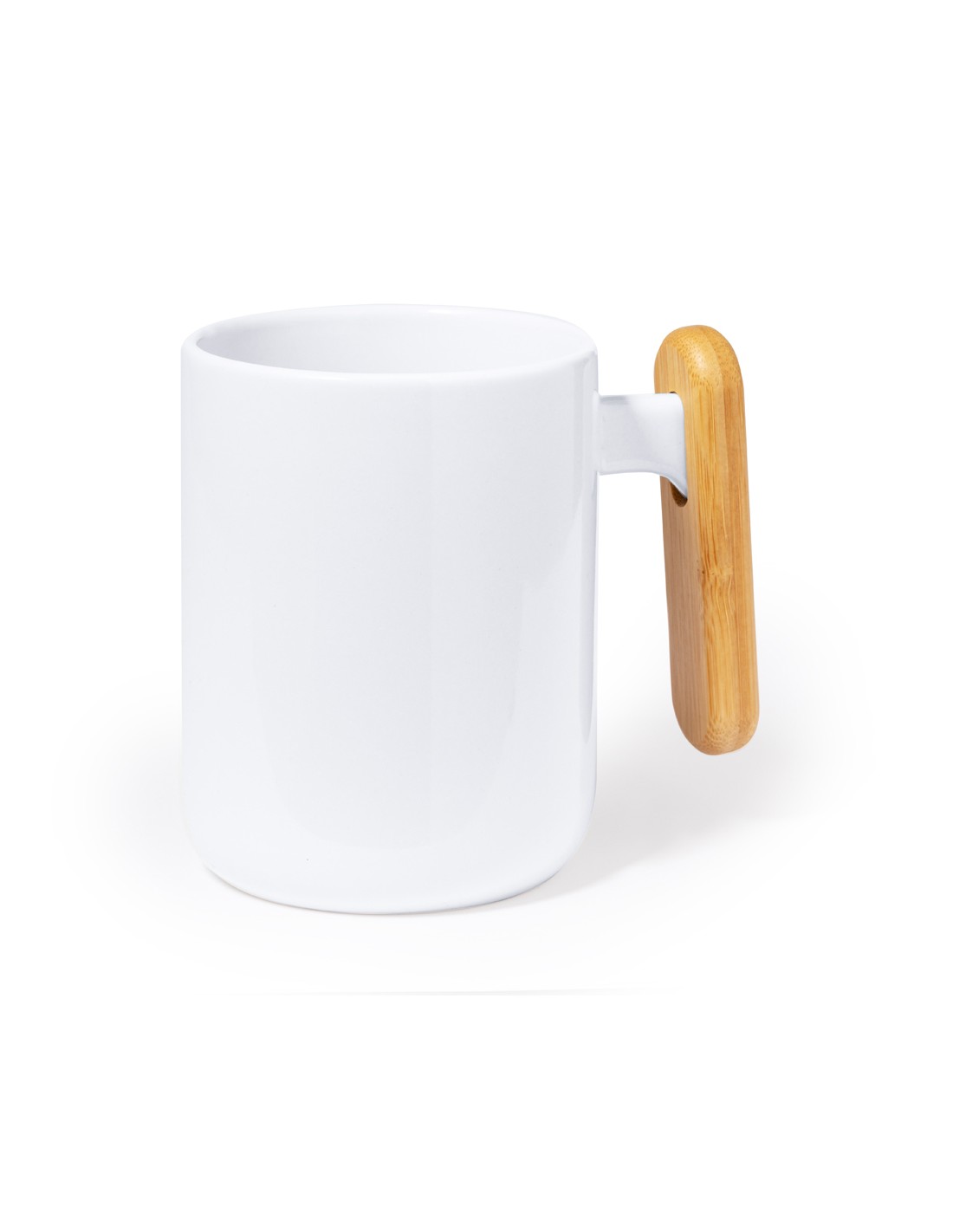 Taza de cerámica de 480 ml de capacidad, en elegante color blanco. Distinguido diseño en combinación cerámica con asa de bambú. Presentada en caja individual acabado kraft.Materiales como el bambú fomentan la utilización de materias primas naturales, reduciendo las emisiones contaminantes. Proviene de una planta de gran resistencia y versatilidad, con crecimiento y regeneración rápidos, siendo una excelente alternativa al uso de madera tradicional.
