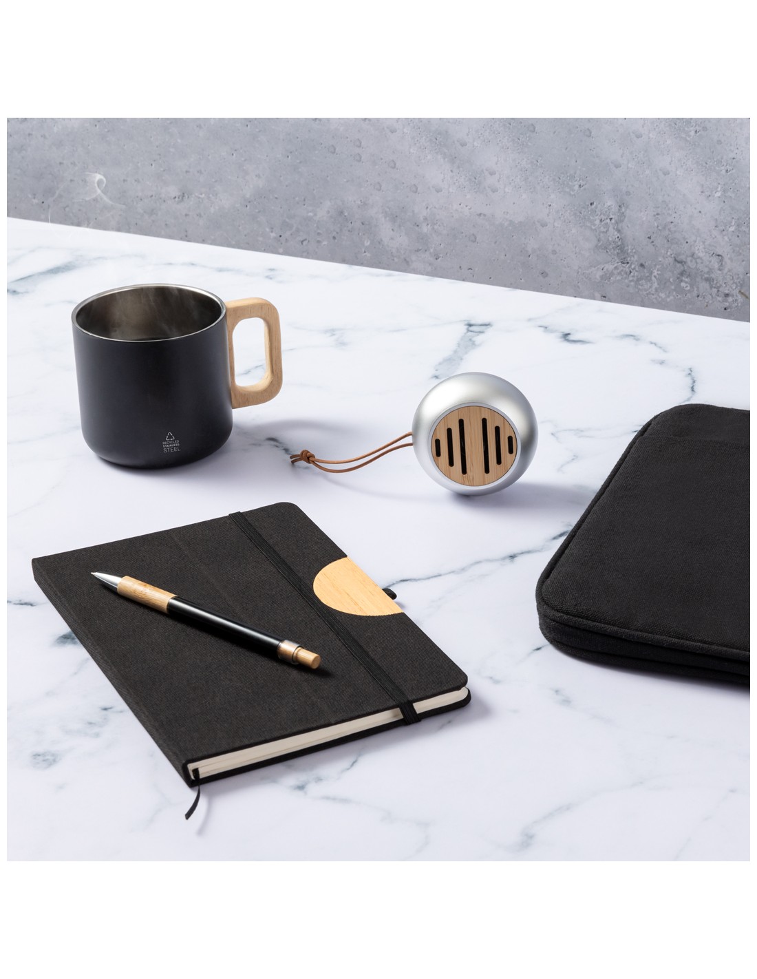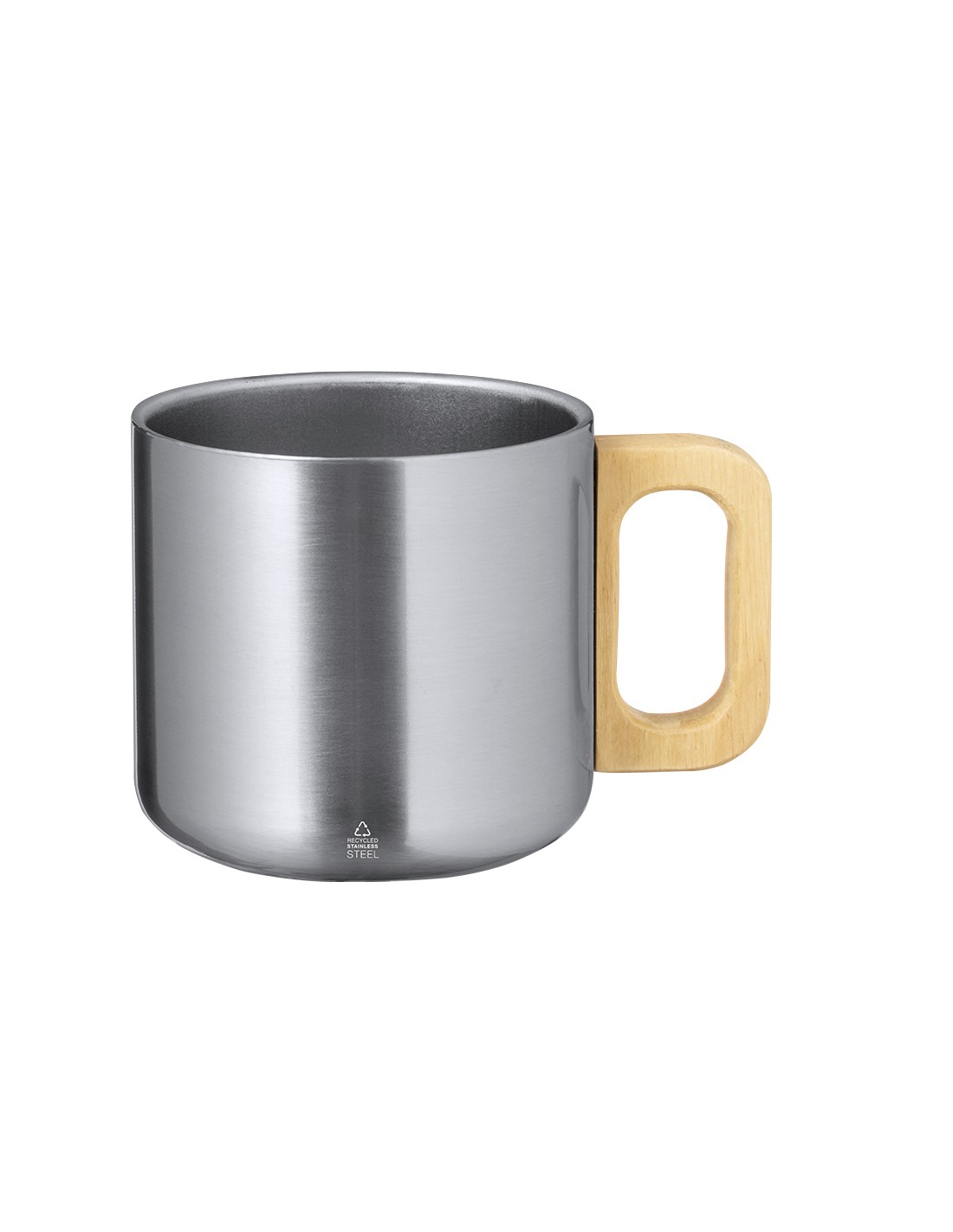 Original taza de doble pared y 400 ml de capacidad. Fabricada en Acero Inox Reciclado, con asa para un cómodo agarre en madera. Con logotipo Acero Inox Reciclado y disponible en varios colores. Presentada en caja individual de diseño kraft y con protector de papel.El acero es uno de los materiales más demandados y que puede encontrarse casi en todas partes, desde productos de uso diario a grandes construcciones. Con innumerables propiedades, entre las que cabe destacar la durabilidad y su alto grado de reutilización, convirtiéndolo en una alternativa muy valorada en soluciones de sostenibilidad. Debidamente tratado, permite obtener nuevos recursos de infinita utilización.