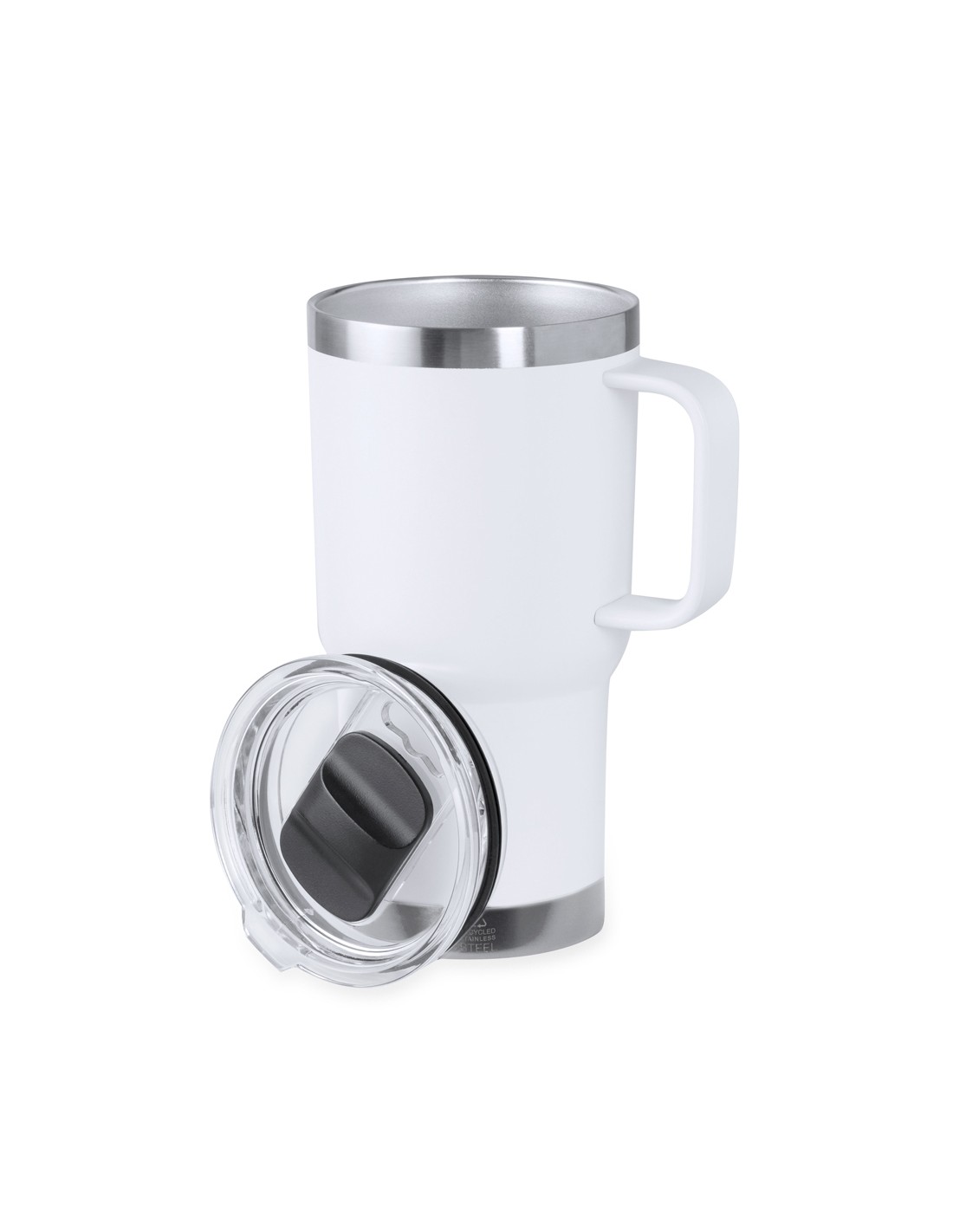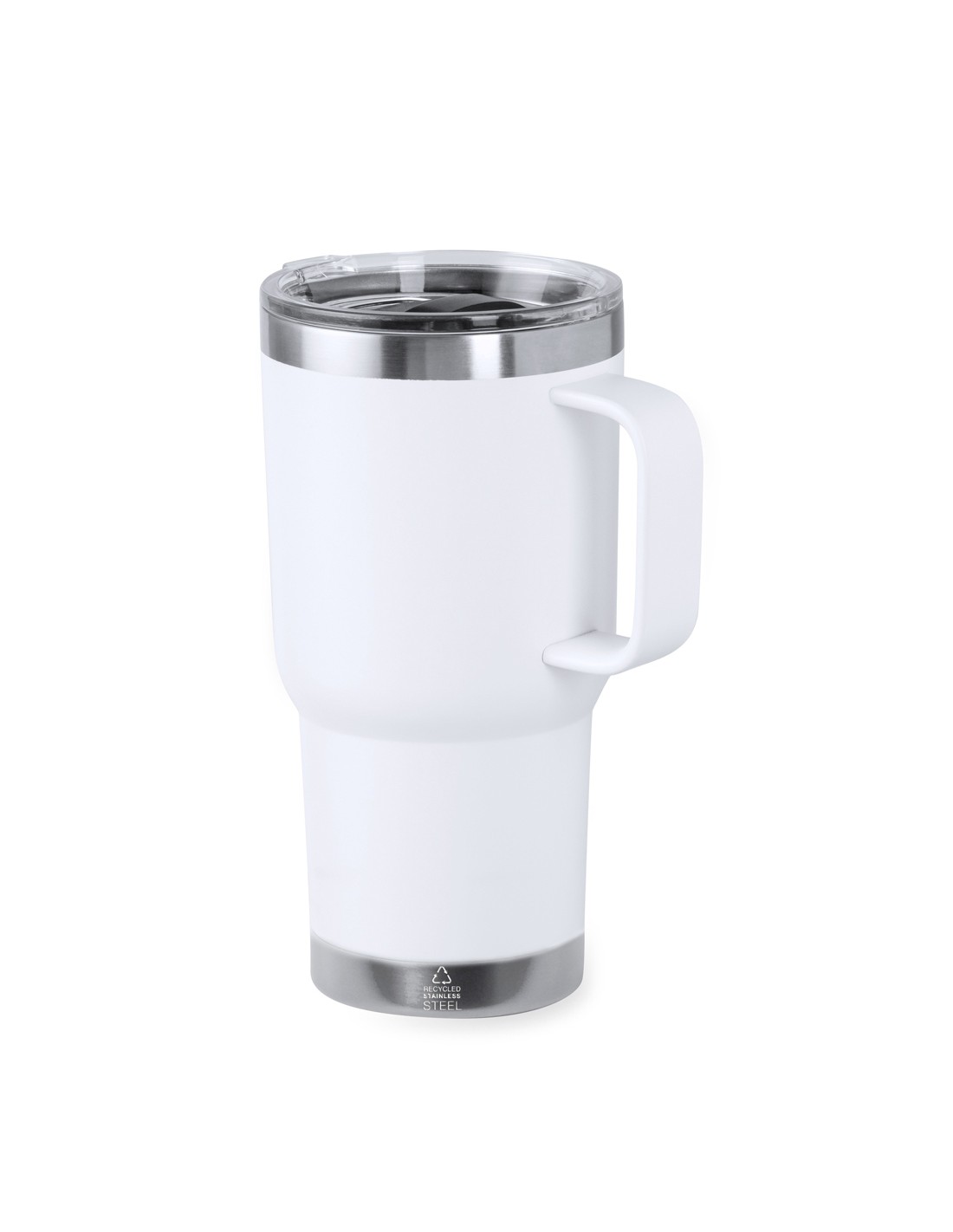 Taza térmica fabricada en acero inox reciclado, con doble pared y 600 ml de capacidad en color mate. Incluye tapa con cierre a presión, dosificador de fácil apertura y asa rígida para mayor comodidad. Es ideal para tener en tu escritorio, mesa o en cualquier superficie donde disfrutar tranquilamente de tu bebida favorita. Con logotipo Acero Inox Reciclado. El acero es uno de los materiales más demandados y que puede encontrarse casi en todas partes, desde productos de uso diario a grandes construcciones. Con innumerables propiedades, entre las que cabe destacar la durabilidad y su alto grado de reutilización, convirtiéndolo en una alternativa muy valorada en soluciones de sostenibilidad. Debidamente tratado, permite obtener nuevos recursos de infinita utilización
