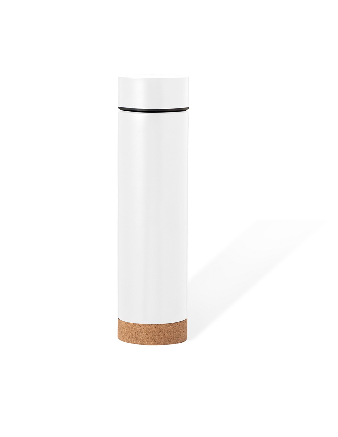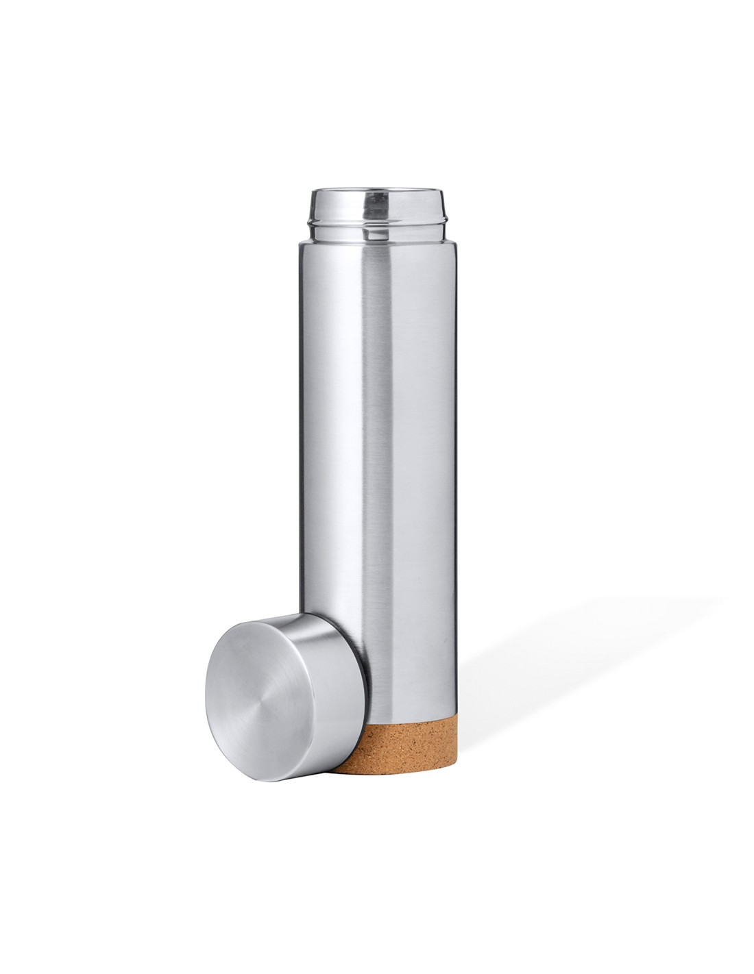 Termo en acero inox de 470 ml de capacidad con base de corcho. Con doble pared para mejor y más duradera conservación de la temperatura. Infusor incluido y sistema de apertura fácil a rosca. Disponible en variada gama de colores y presentado en atractiva caja de diseño kraft.Elaborado con elementos vegetales para así fomentar la utilización de materias primas naturales y reducir las emisiones contaminantes.