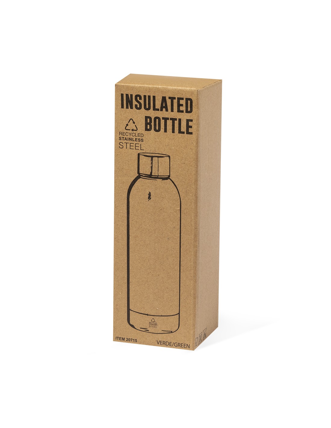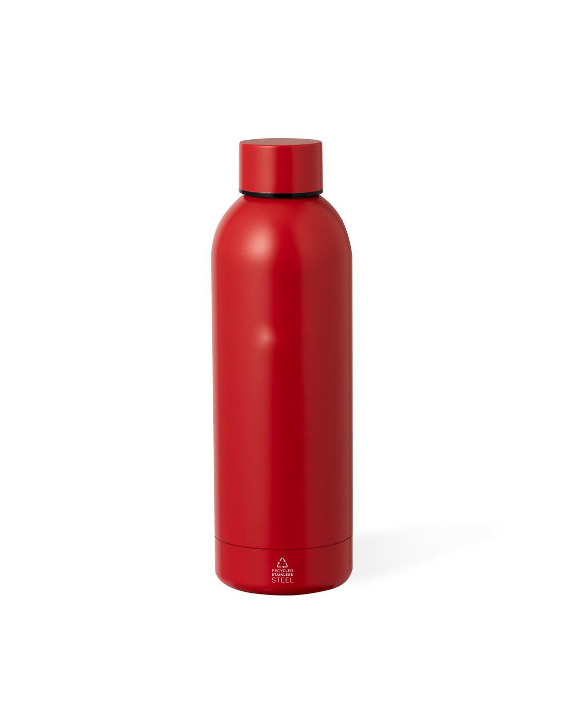 Bidón térmico de doble capa en Acero Inox Reciclado de 550 ml de capacidad, disponible en variada gama de colores metalizados de acabado mate. Con logotipo Acero Inox Reciclado. Presentado en atractiva caja de diseño kraft.El acero es uno de los materiales más demandados y que puede encontrarse casi en todas partes, desde productos de uso diario a grandes construcciones. Con innumerables propiedades, entre las que cabe destacar la durabilidad y su alto grado de reutilización, convirtiéndolo en una alternativa muy valorada en soluciones de sostenibilidad. Debidamente tratado, permite obtener nuevos recursos de infinita utilización.