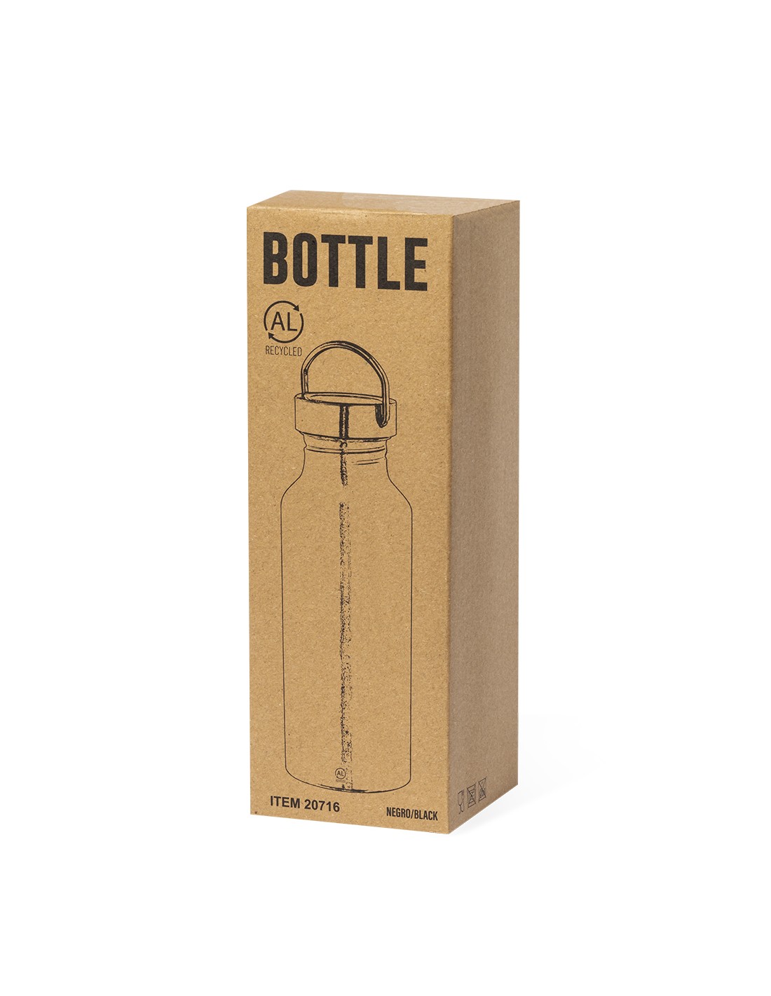 Bidón de 650 ml de capacidad, fabricado en Aluminio Reciclado de acabado brillo. Con original tapón plateado de rosca a juego y asa integrada. Disponible en variada gama de elegantes colores. Con logotipo Aluminio Reciclado, libre de BPA y presentado en caja individual de diseño kraft.El Aluminio Reciclado es un material con posibilidades de reciclaje casi infinitas, sin perder sus propiedades originales y consumiendo menos energía en este proceso.Certificación GRS (Global RecycLED Standard / Estándar de Reciclaje Global), que garantiza el origen reciclado del material usado para fabricar el producto.