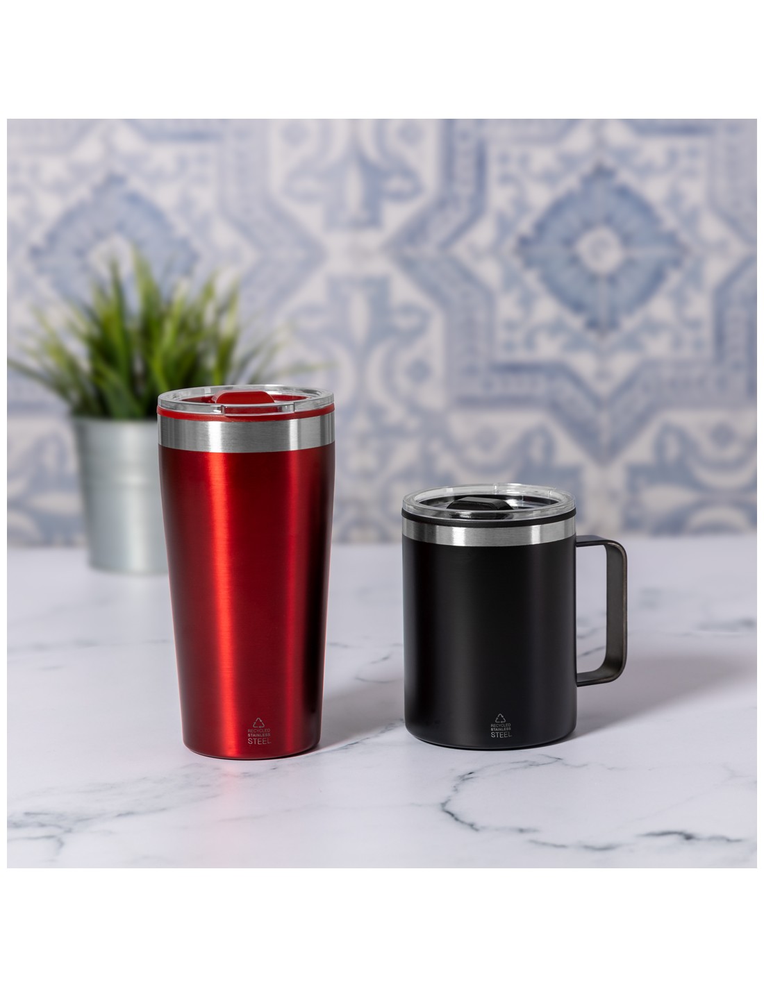 Vaso térmico fabricado en acero inox reciclado, con doble pared y 600 ml de capacidad. Incluye tapa con dosificador y abrefácil. Es ideal para tener en tu escritorio, mesa o en cualquier superficie donde disfrutar tranquilamente de tu bebida favorita. Con logotipo Acero Inox Reciclado. El acero es uno de los materiales más demandados y que puede encontrarse casi en todas partes, desde productos de uso diario a grandes construcciones. Con innumerables propiedades, entre las que cabe destacar la durabilidad y su alto grado de reutilización, convirtiéndolo en una alternativa muy valorada en soluciones de sostenibilidad. Debidamente tratado, permite obtener nuevos recursos de infinita utilización.