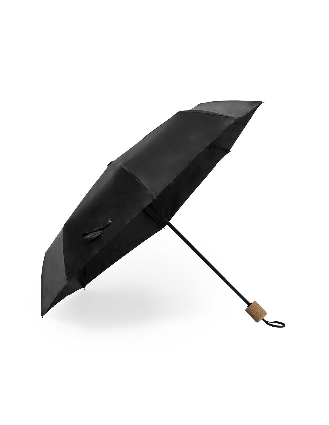 - Paraguas Pongee 190T RPET. Varillas Fibra de Vidrio. 21". Sistema Antiviento. Mango Corcho. Funda Pongee RPET