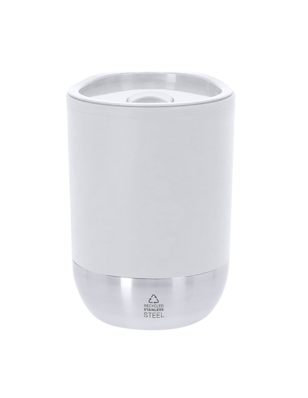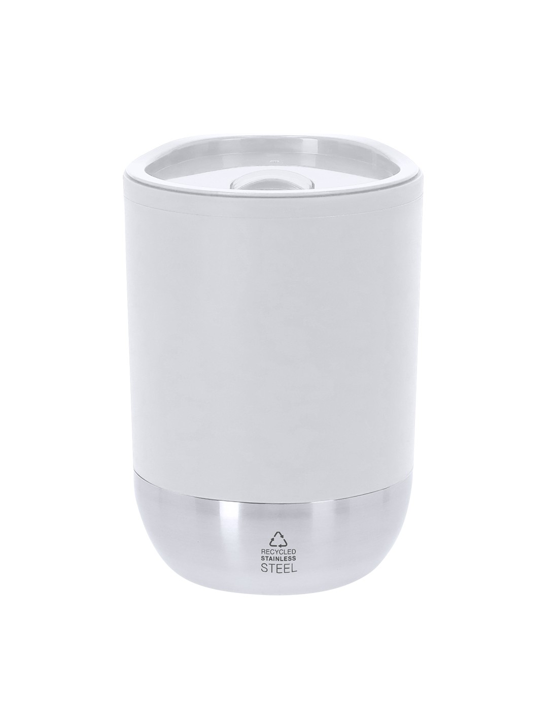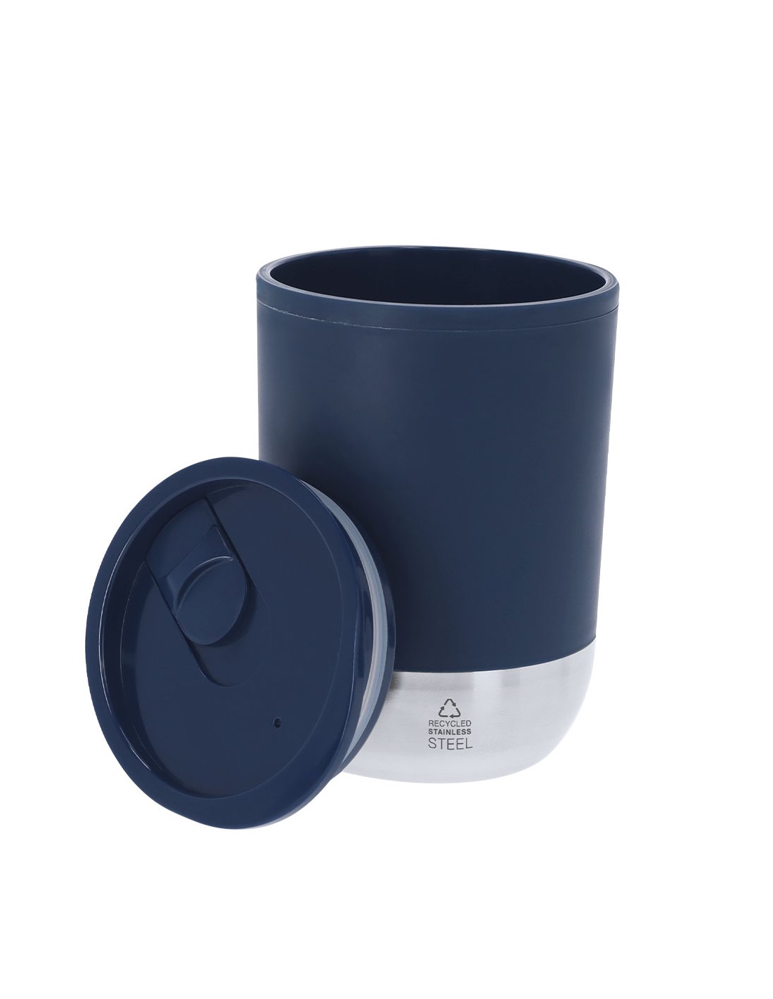 Vaso térmico de 290 ml de capacidad. Fabricado en resistente PP Reciclado de doble pared en combinación con base en Acero Inox Reciclado. Tapa con dosificador de fácil apertura, libre de BPA. Es ideal para tener en tu escritorio, mesa o en cualquier superficie donde disfrutar tranquilamente de tu bebida favorita. Con certificación Food Grade, garantizando la seguridad cuando los alimentos entran en contacto con el material usado para fabricar el producto. Con distintivo de Acero Inox Reciclado. El PP reciclado es un plástico reciclado y altamente reciclable, de gran resistencia y apto para multitud de aplicaciones.El acero es uno de los materiales más demandados y que puede encontrarse casi en todas partes, desde productos de uso diario a grandes construcciones. Con innumerables propiedades, entre las que cabe destacar la durabilidad y su alto grado de reutilización, convirtiéndolo en una alternativa muy valorada en soluciones de sostenibilidad. Debidamente tratado, permite obtener nuevos recursos de infinita utilización.