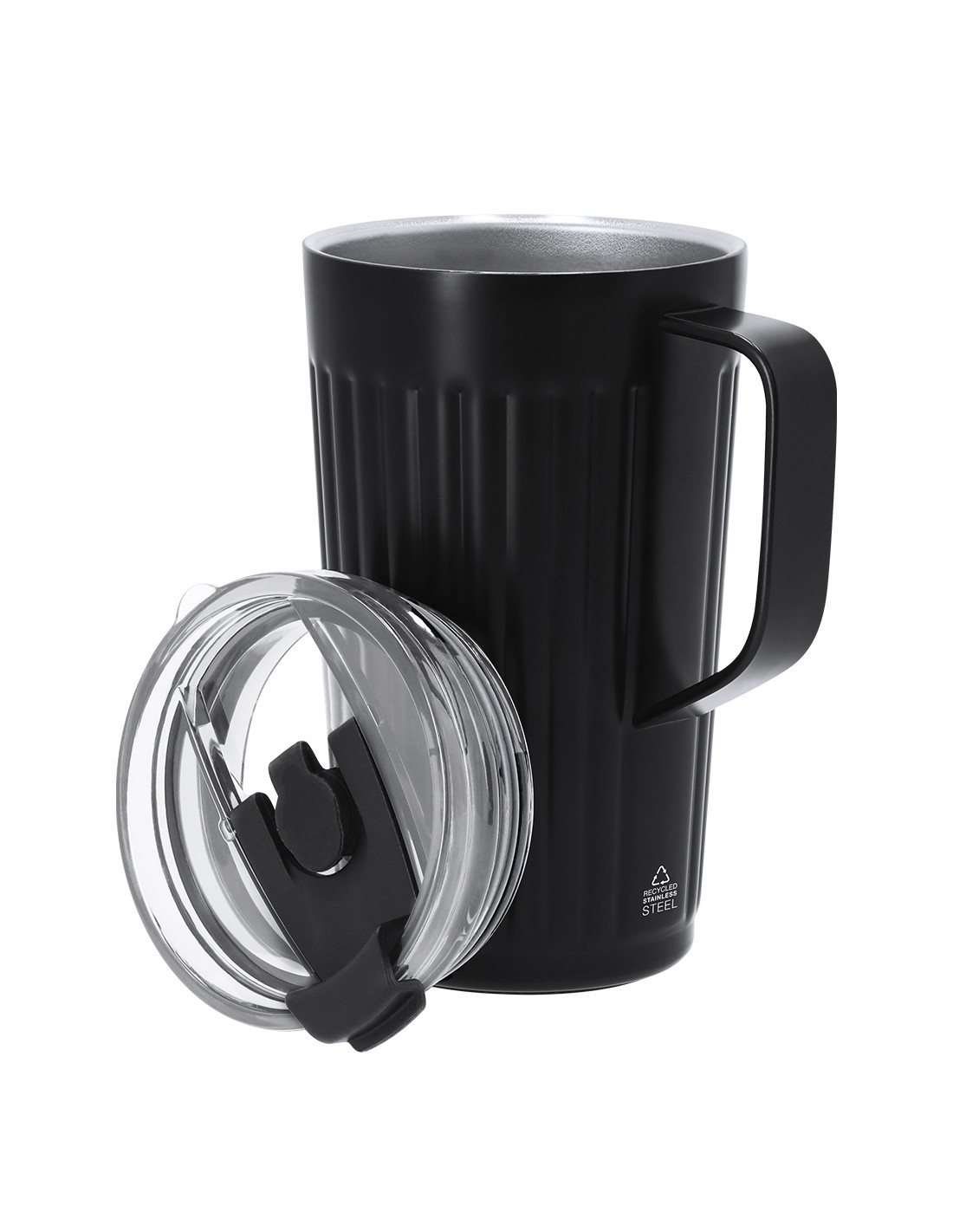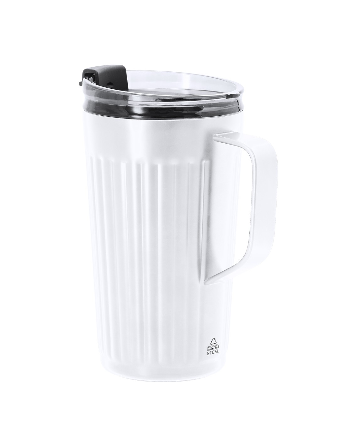 Taza térmica fabricada en Acero Inox Reciclado de doble pared y 350 ml de capacidad. Exterior en acabado biselado en color metálico mate. Incluye tapadera con sistema de cierre a presión transparente con orificio especial para pajitas, tapón de silicona y dosificador de fácil apertura abatible, libre de BPA. Base antideslizante de silicona y distintivo de Acero Inox Reciclado. El acero es uno de los materiales más demandados y que puede encontrarse casi en todas partes, desde productos de uso diario a grandes construcciones. Con innumerables propiedades, entre las que cabe destacar la durabilidad y su alto grado de reutilización, convirtiéndolo en una alternativa muy valorada en soluciones de sostenibilidad. Debidamente tratado, permite obtener nuevos recursos de infinita utilización.