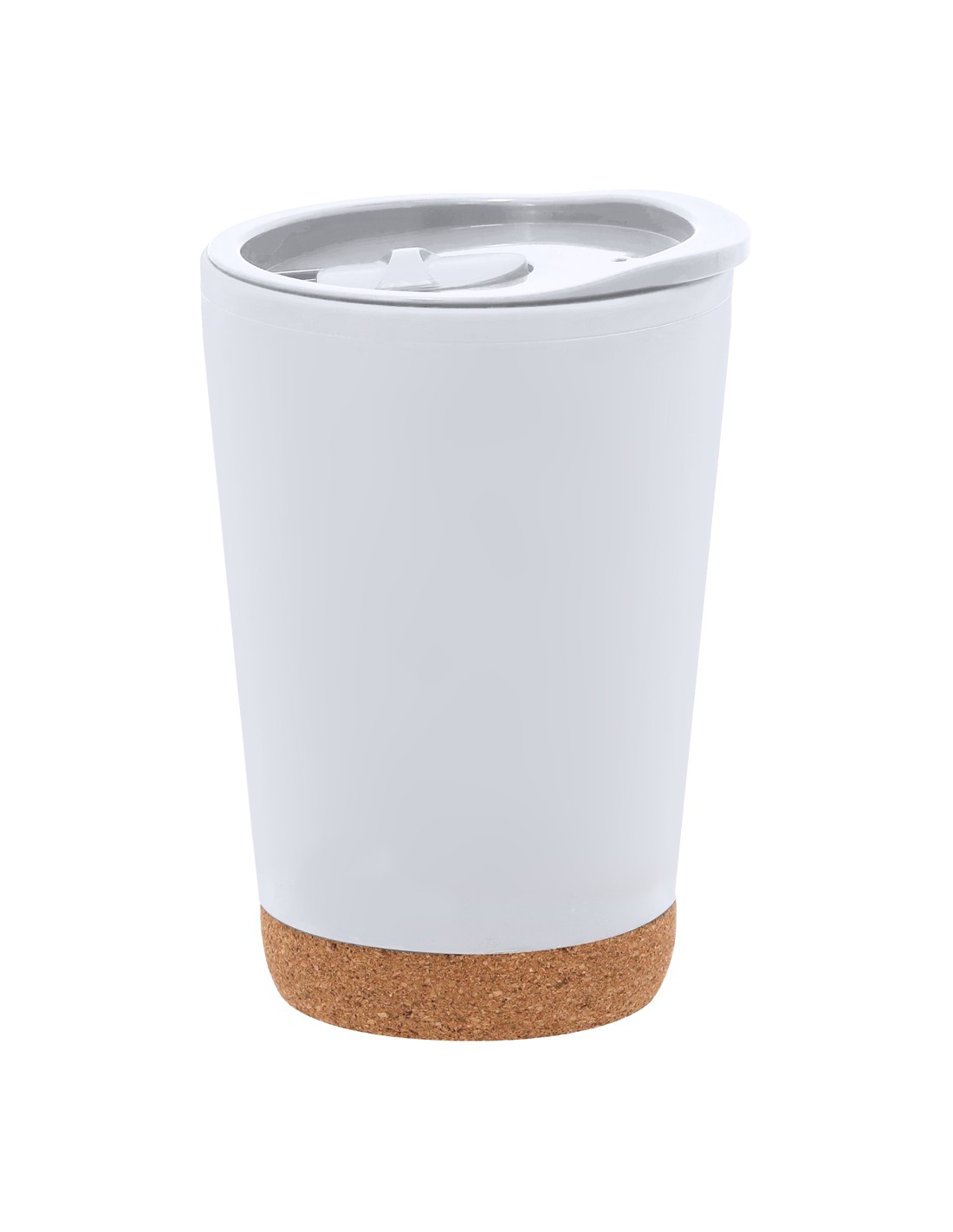 Vaso térmico fabricado en resistente PP reciclado de doble pared, base de corcho y 260 ml de capacidad. Tapa con dosificador de fácil apertura, libre de BPA. Es ideal para tener en tu escritorio, mesa o en cualquier superficie donde disfrutar tranquilamente de tu bebida favorita. El PP reciclado es un plástico reciclado y altamente reciclable, de gran resistencia y apto para multitud de aplicaciones.Con certificación Food Grade, garantizando la seguridad cuando los alimentos entran en contacto con el material usado para fabricar el producto.Elaborado con elementos vegetales para así fomentar la utilización de materias primas naturales y reducir las emisiones contaminantes.