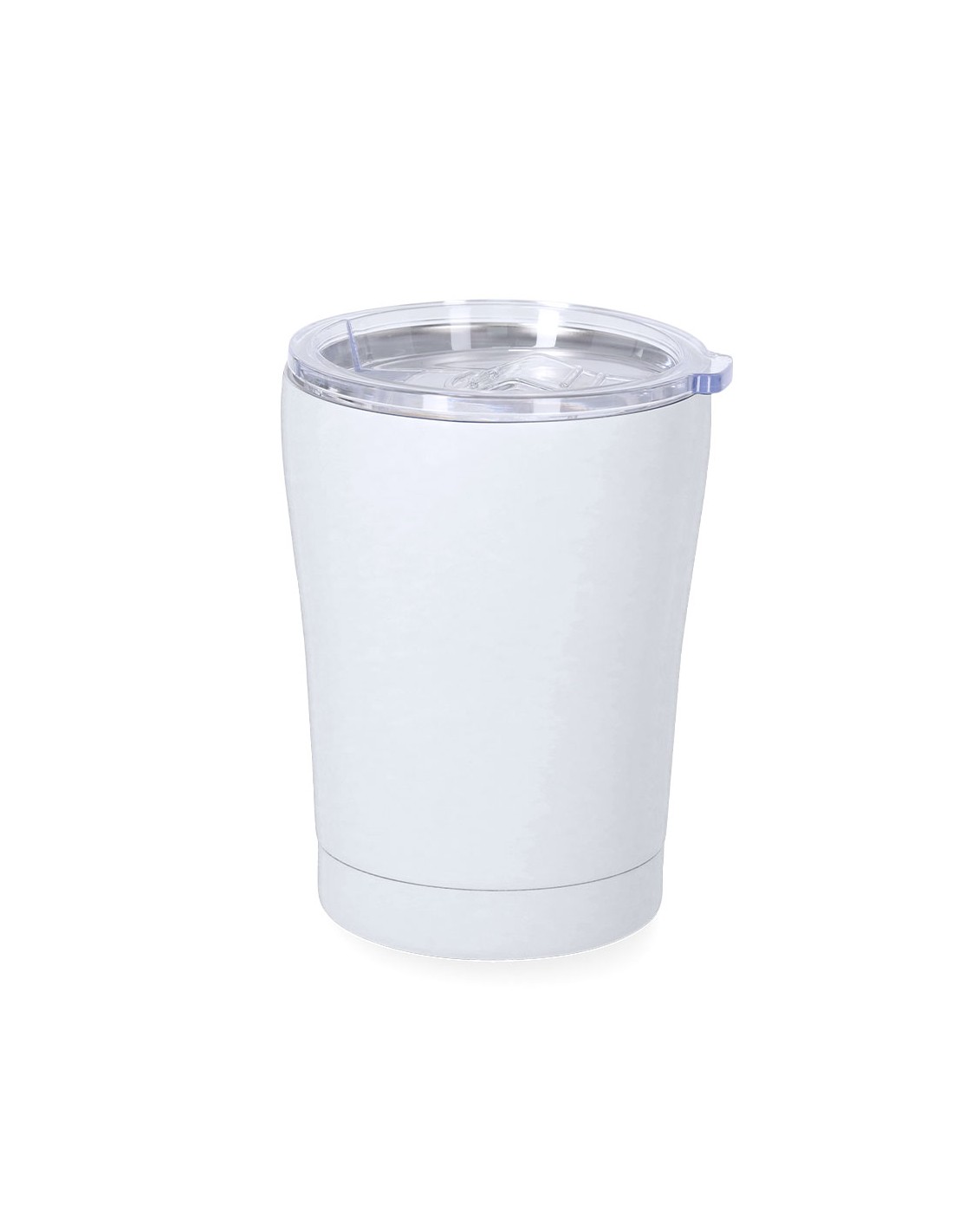 Vaso térmico fabricado en acero inox de doble pared y 350 ml de capacidad. Exterior en acabado caucho de acabado mate, especialmente diseñado para marcaje láser. Incluye tapa de cierre a presión transparente, con dosificador y de fácil apertura, libre de BPA. Es ideal para tener en tu escritorio, mesa o en cualquier superficie donde disfrutar tranquilamente de tu bebida favorita.