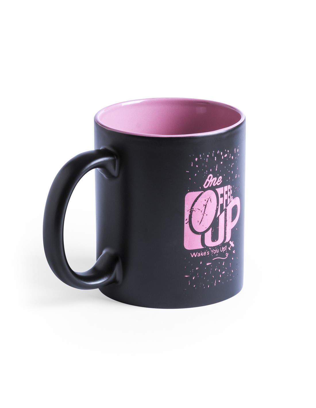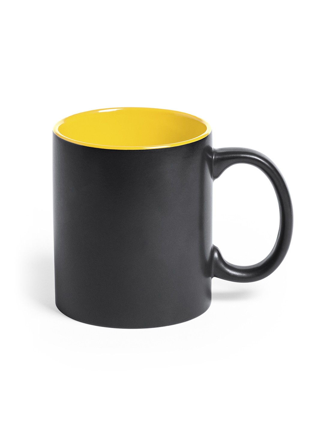 Taza de cerámica de alta calidad de 350ml de capacidad. Parte exterior en color negro, especialmente diseñada para marcaje en láser, e interior en variada gama de vivos colores. Al grabar el logotipo en la parte exterior, se muestra el color del interior de la taza. Presentada en caja individual.Disponible manual de instrucciones en español e inglés.