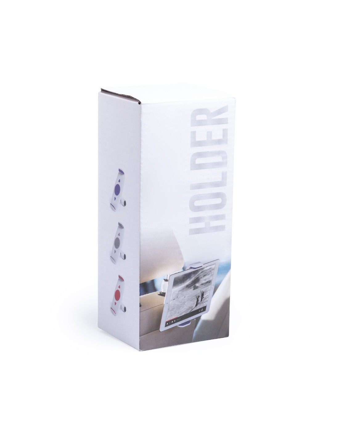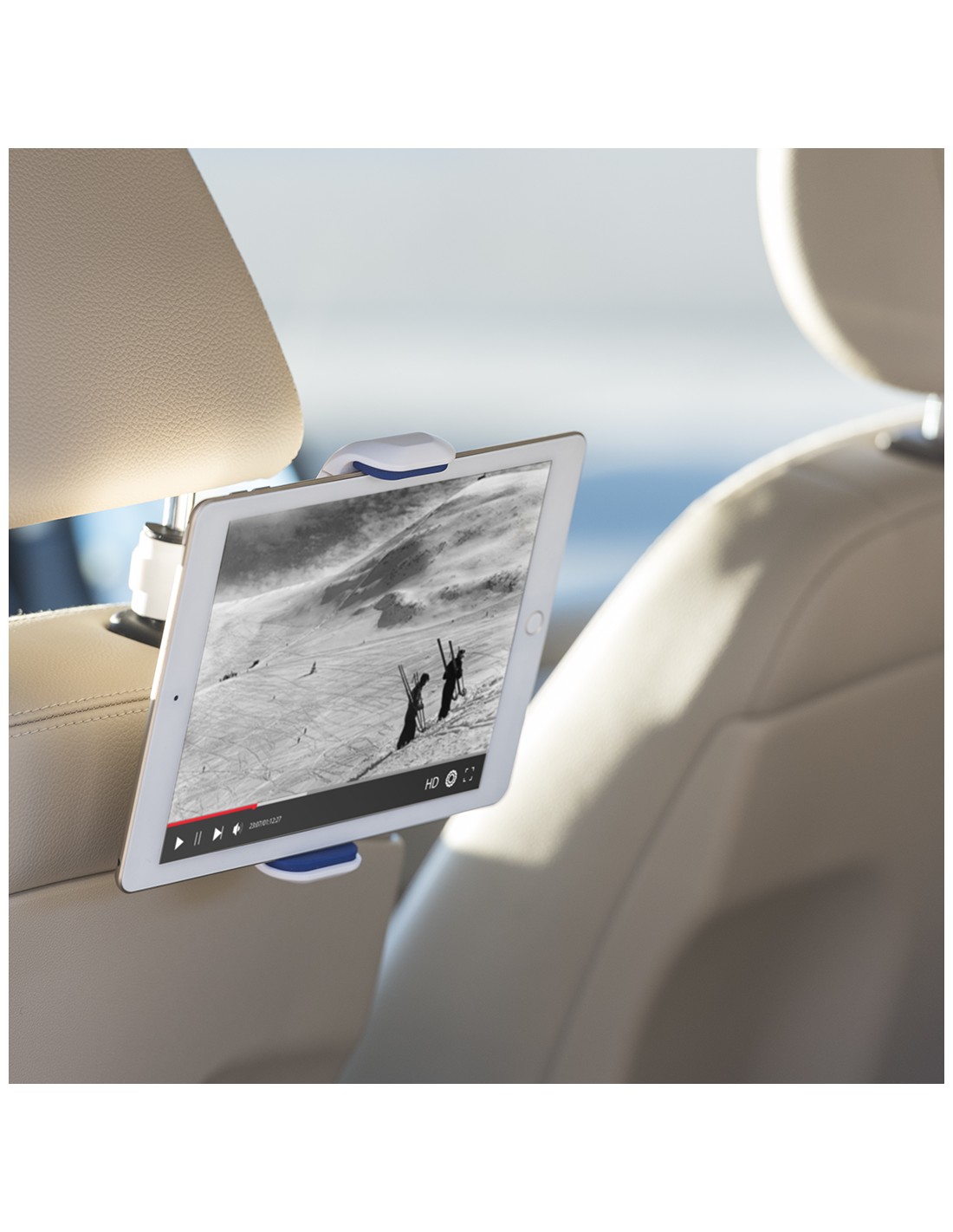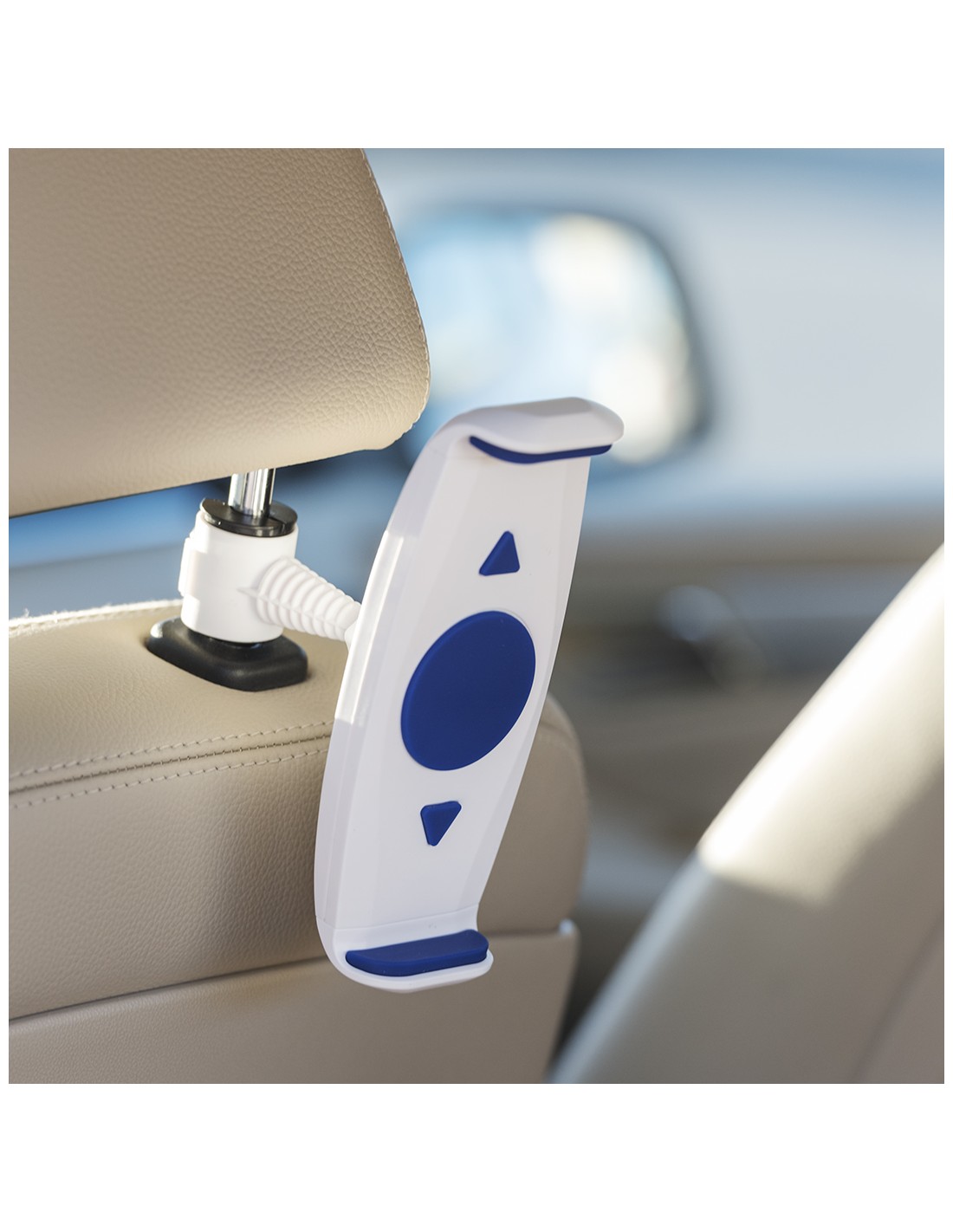Original soporte para dispositivos móviles de hasta 10 pulgadas para acople a la barra del cabecero del coche. En variada gama de colores, giratorio 360º y con gomas anti deslizantes de alta sujeción.