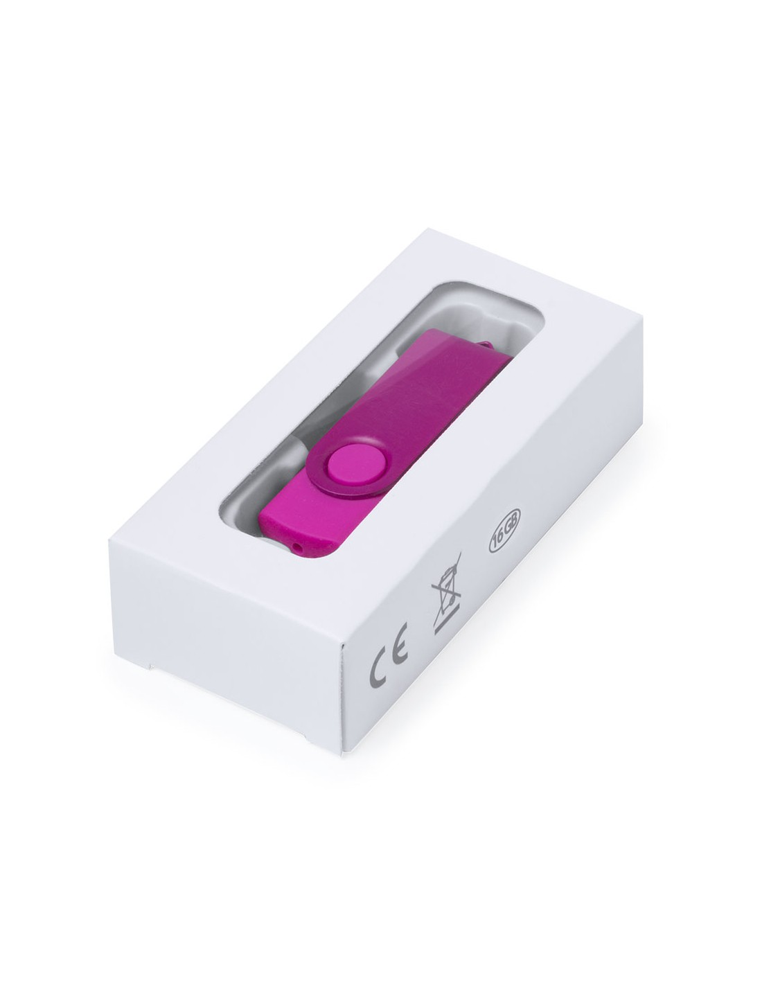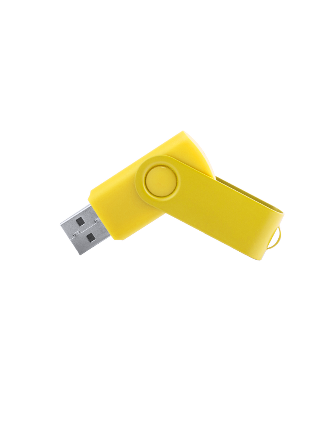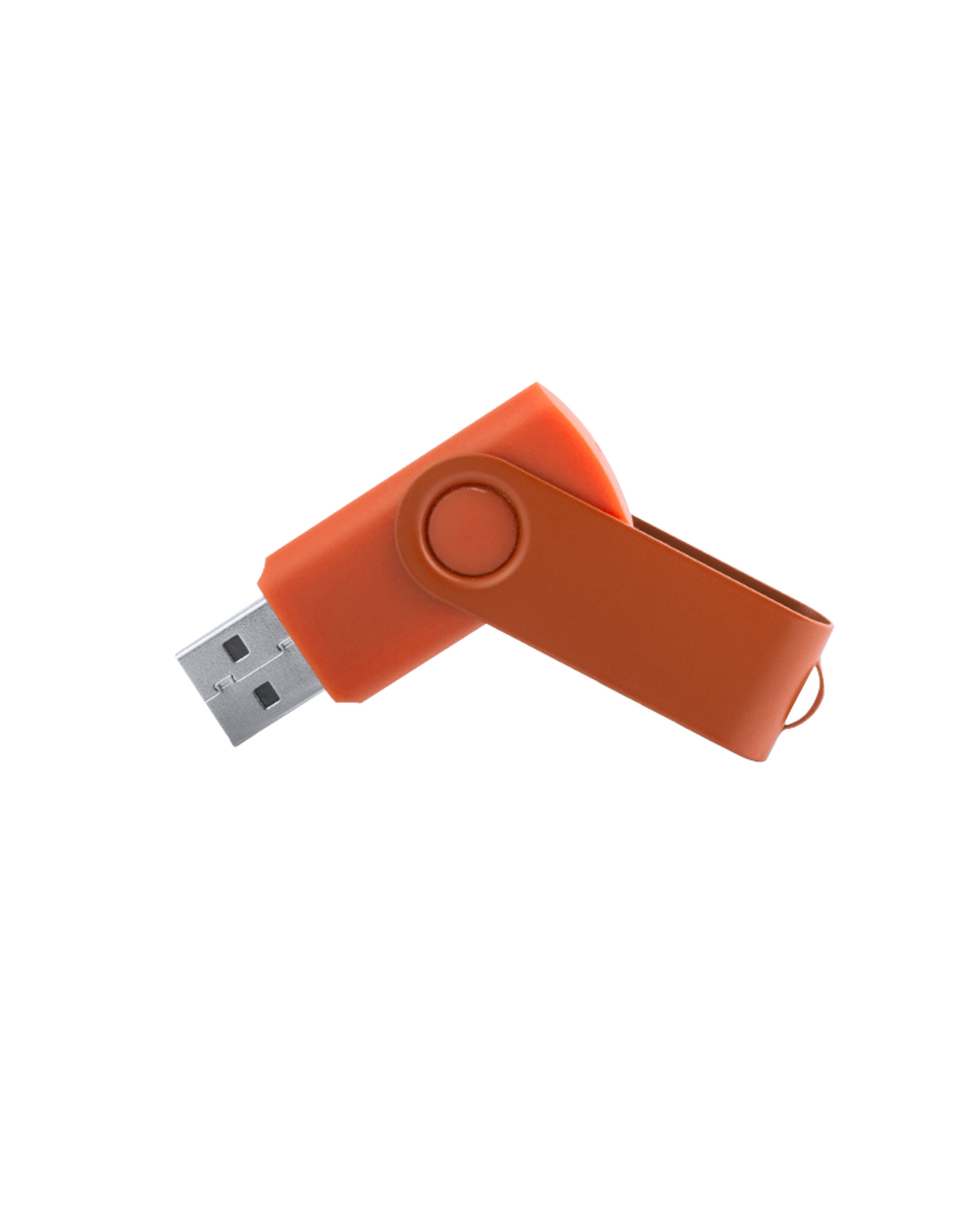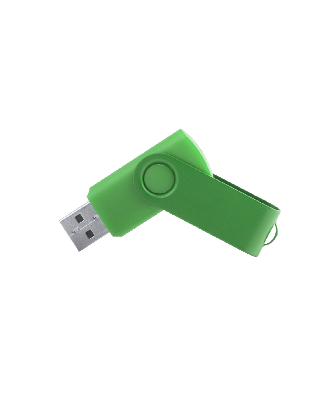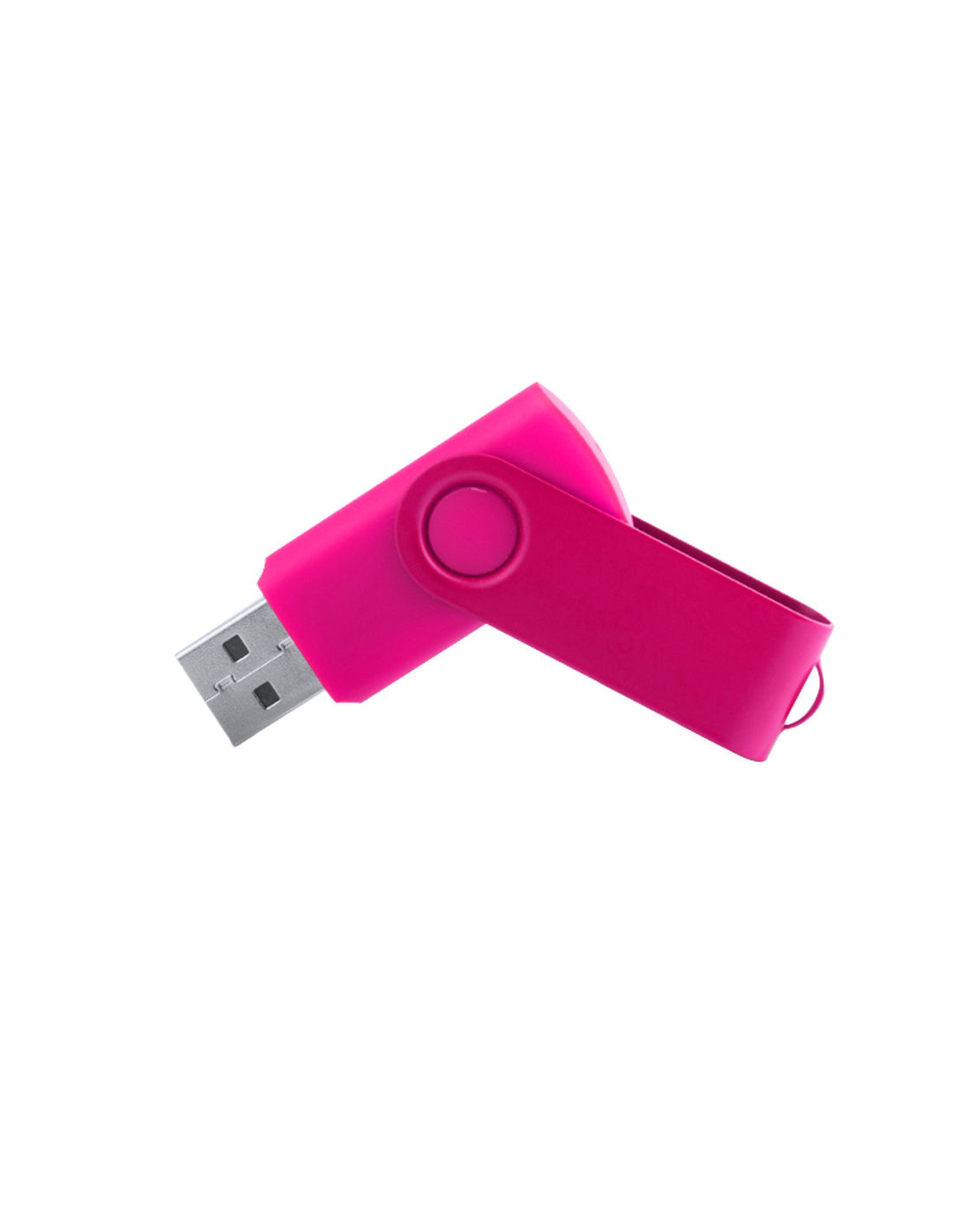 Memoria USB de 16GB de capacidad, con mecanismo giratorio, cuerpo de suave acabado y clip metálico a juego en acabado brillante. Presentada en estuche individual.