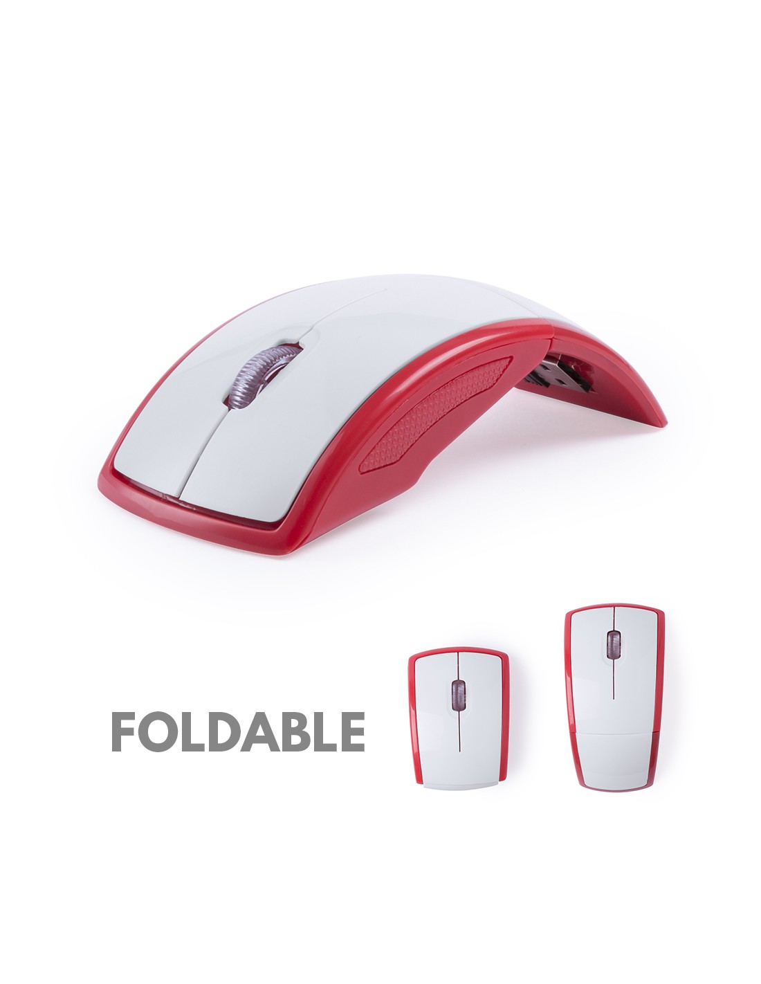 Ratón óptico inalámbrico plegable. Con diseño ergonómico y en atrevidos colores. Presentado en caja individual. Alimentación a pilas: 2xAAA no incluidas.