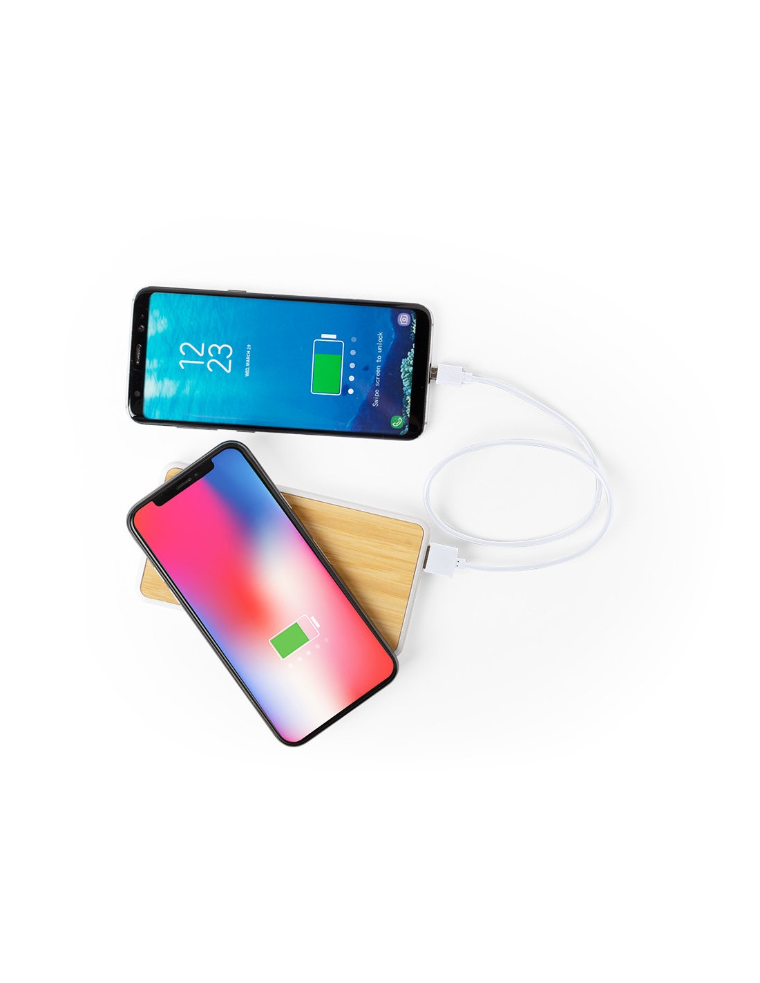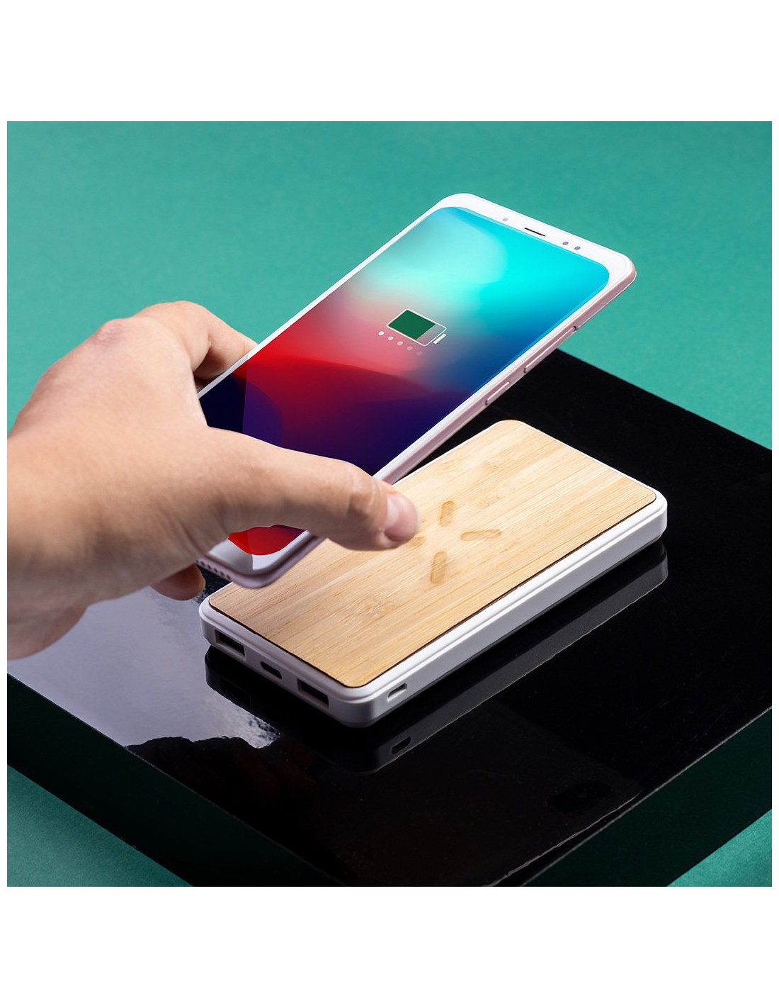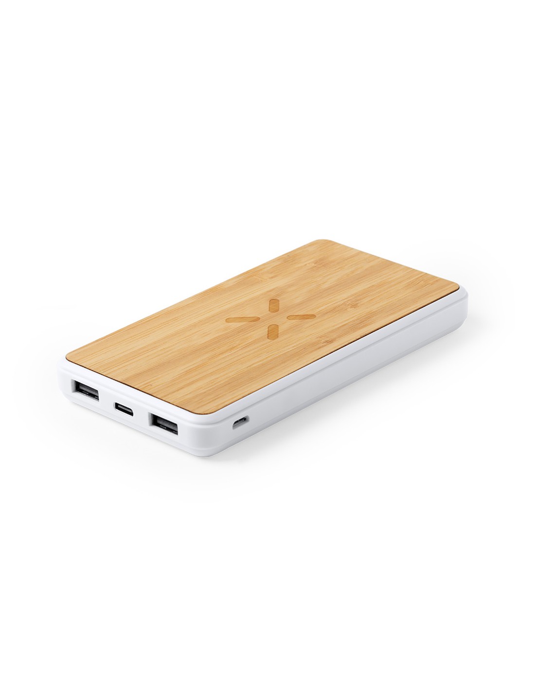 Batería auxiliar externa de línea nature, con cargador inalámbrico integrado y carcasa en madera de bambú. 8.000 mAh de capacidad de carga e indicador de estado de carga. Salida doble USB y entradas Tipo C y micro USB -cable incluido-. Con amplia superficie de marcaje y presentada en atractiva caja de diseño. Las capacidades mostradas en todas nuestras baterías auxiliares externas son reales, incorporando todas ellas baterías de grado A y no recicladas, con una vida útil de al menos 500 ciclos de carga y según normativa CE. Además, están fabricadas conforme a los estándares RoHS y en cumplimiento con los siguientes requisitos de seguridad: Sistema de protección contra sobrecarga del power bank. Sistema de protección contra descarga completa que proporciona una mayor durabilidad del power bank. Sistema de bloqueo para evitar cortocircuitos. Sistema de transferencia de carga constante, acorde con la capacidad del dispositivo de destino.