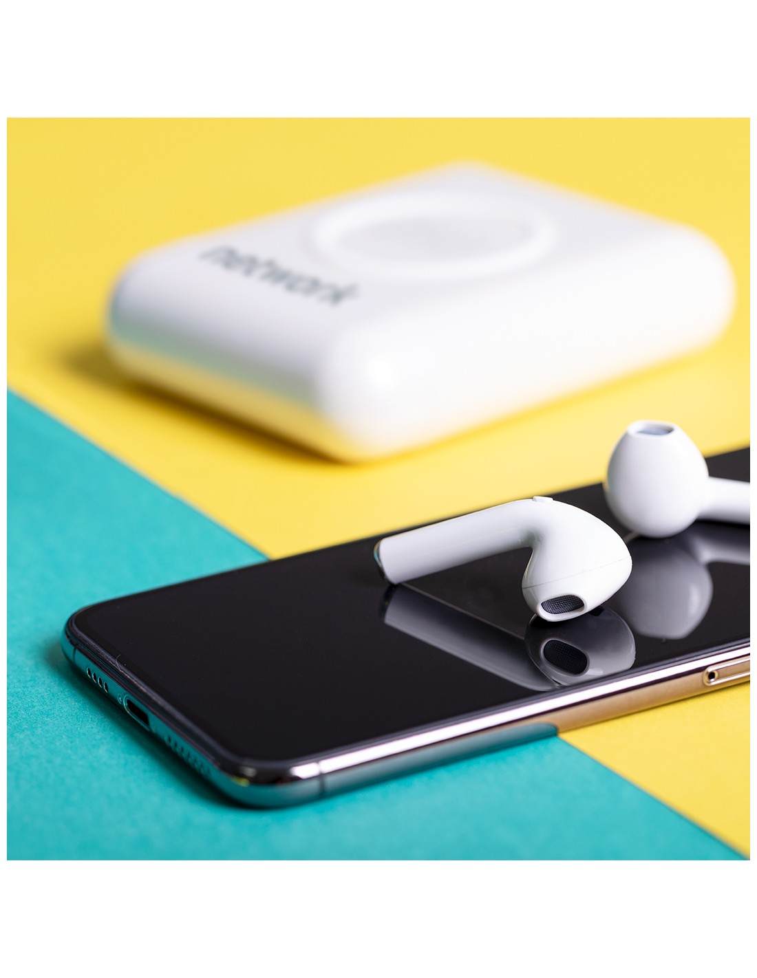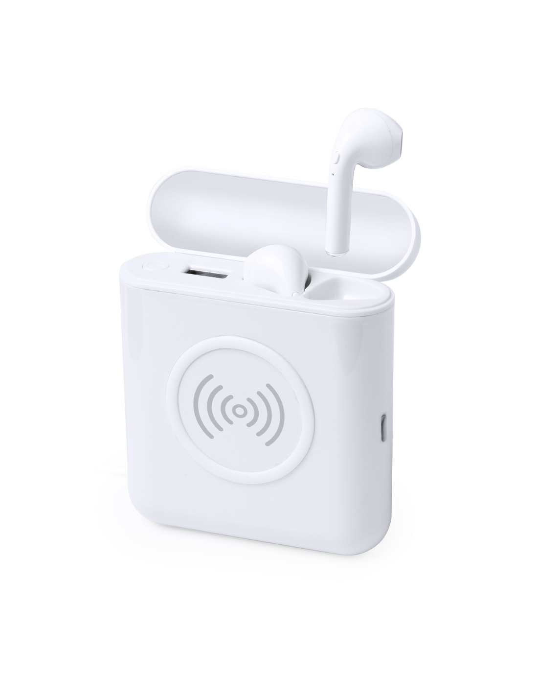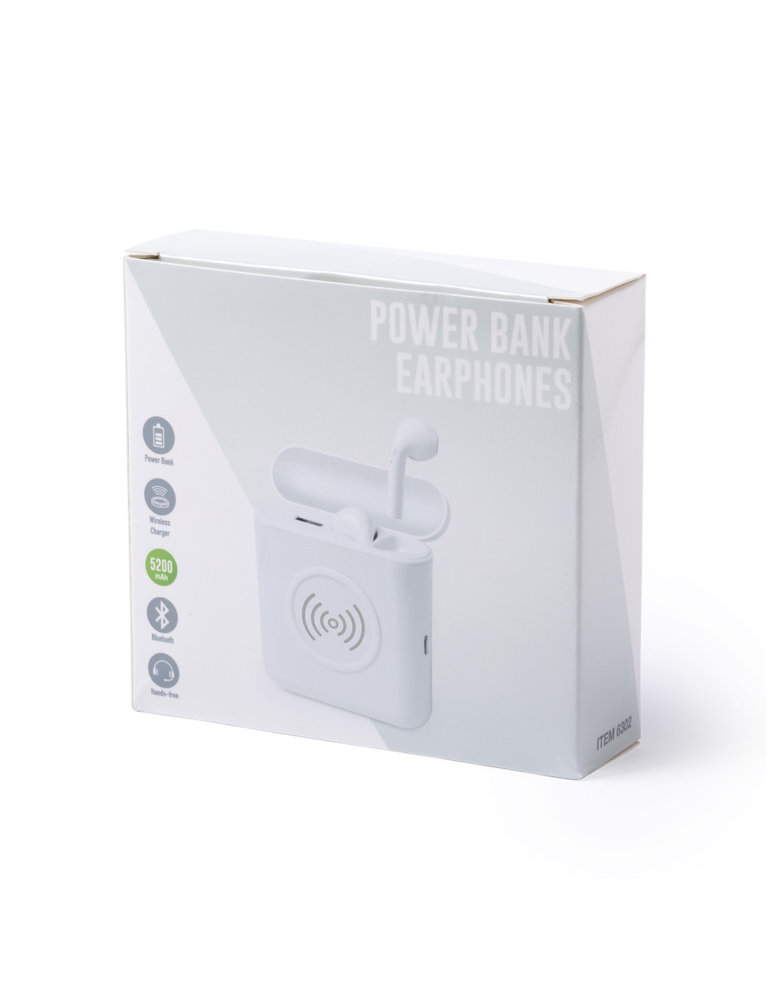 Set de auriculares intraurales con batería auxiliar externa y carga inalámbrica. Auriculares Bluetooth 4.2 en elegante color blanco, con controles integrados y función manos libres. Base de carga a juego, con batería auxiliar externa de carga inalámbrica o por cable de 5.200 mAh de capacidad y conexión de entrada Tipo C. Recargables mediante puerto USB -cable incluido- y base con tapa de bisagra. Presentados en atractiva caja de diseño. Las capacidades mostradas en todas nuestras baterías auxiliares externas son reales, incorporando todas ellas baterías de grado A y no recicladas, con una vida útil de al menos 500 ciclos de carga y según normativa CE. Además, están fabricadas conforme a los estándares RoHS y en cumplimiento con los siguientes requisitos de seguridad: Sistema de protección contra sobrecarga del power bank. Sistema de protección contra descarga completa que proporciona una mayor durabilidad del power bank. Sistema de bloqueo para evitar cortocircuitos. Sistema