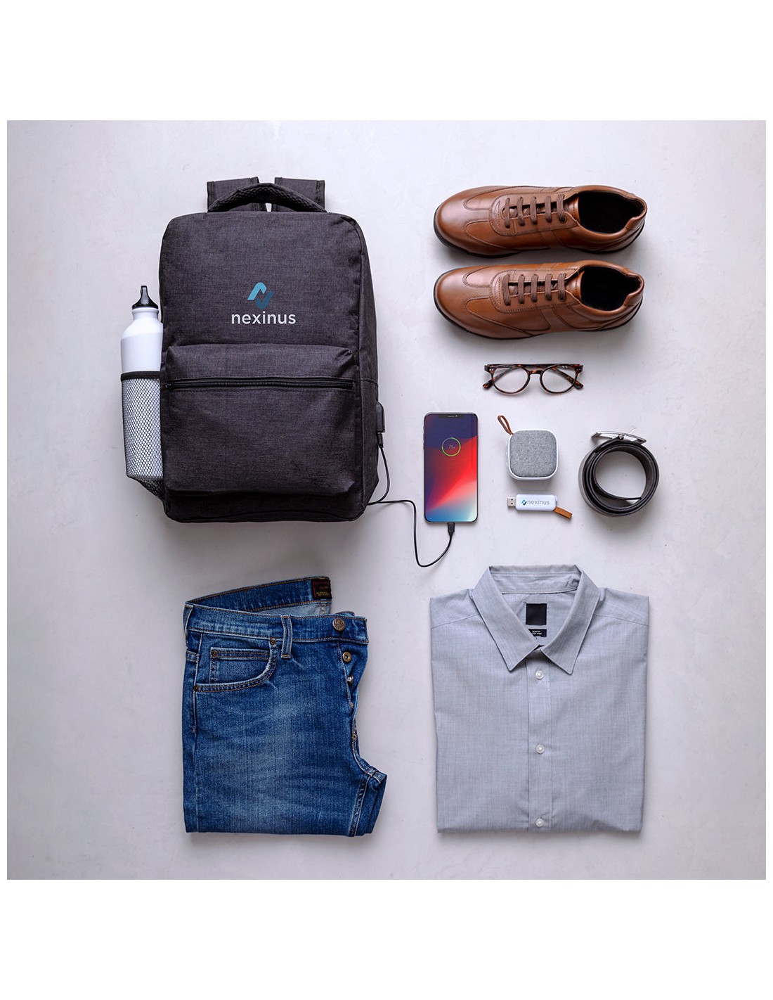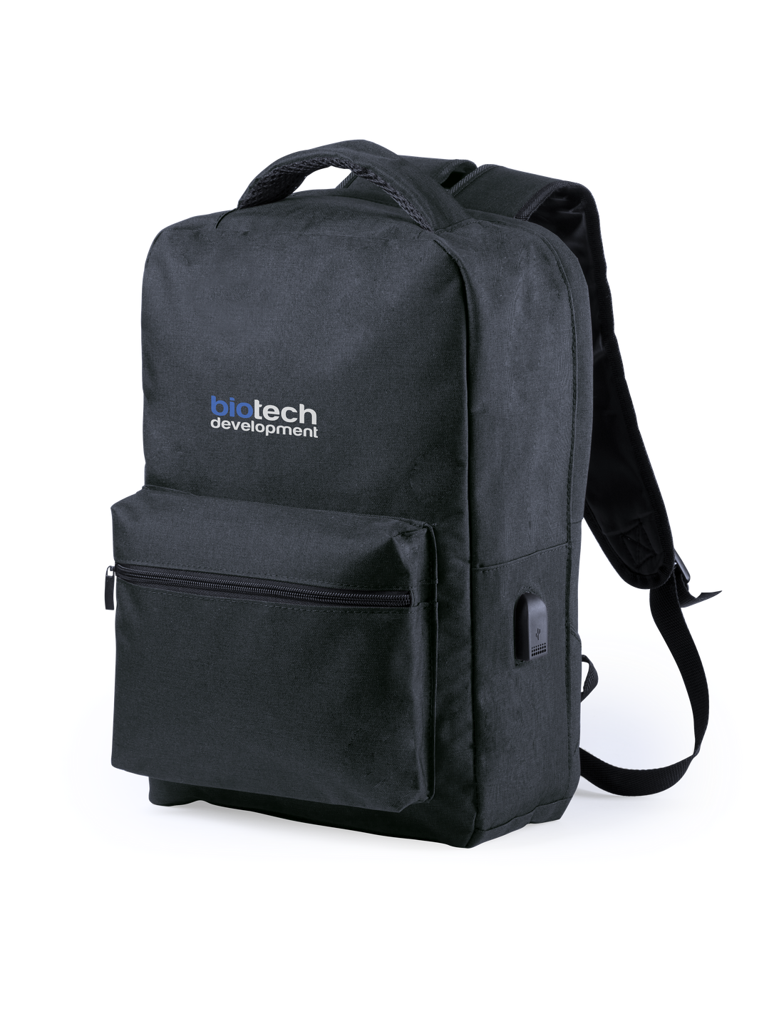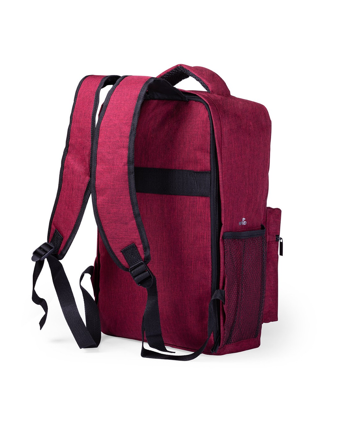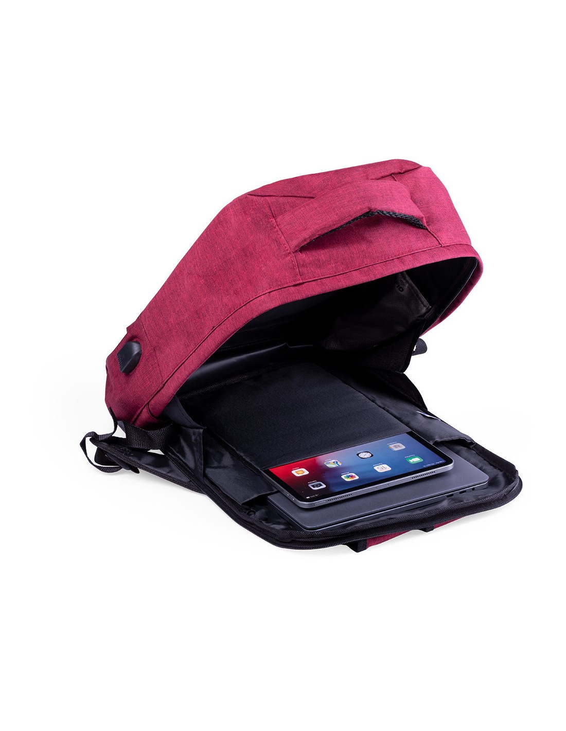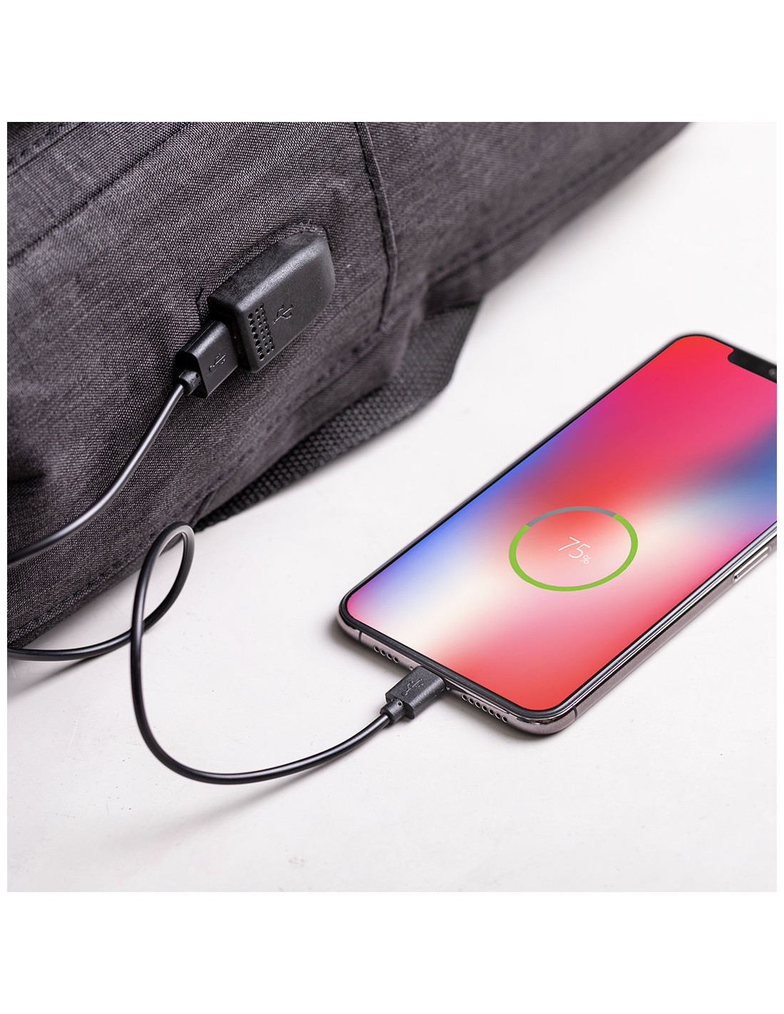 Mochila antirrobo en resistente material poliéster 300D. Con bolsillo antirrobo en la espalda para guardar objetos de valor. Compartimento interior con salida USB para conexión de powerbank -no incluido-. Incluye cable micro USB para total comodidad en la carga de cualquier dispositivo móvil. Bolsillo en lateral con protección RFID y compartimentos interiores acolchados para tablets de hasta 10 pulgadas y portátiles de hasta 15 pulgadas. Cinta para fijación al trolley y disponible en amplia gama de colores, con multitud de bolsillos interiores y exteriores. Cintas de hombros y espalda ajustables con acolchado.