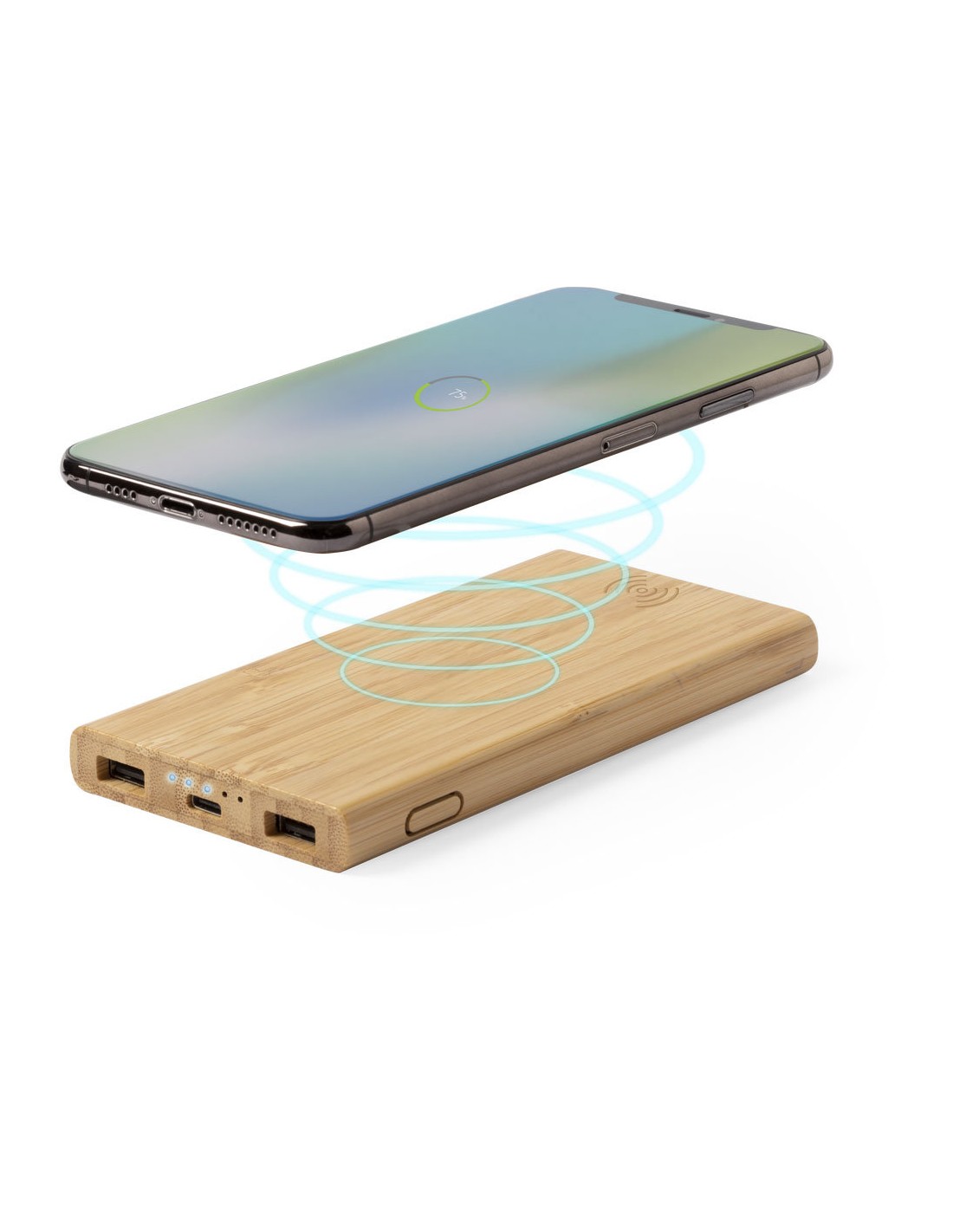 Batería auxiliar externa de línea nature con cargador inalámbrico integrado. Carcasa en bambú procedente de cortes naturales. 6.000 mAh de capacidad de carga e indicador de estado de carga. Salida USB doble y entradas Tipo C y Micro USB -cable incluido-. Capacidad de carga de hasta 3 dispositivos simultáneamente. Compatible con dispositivos equipados con tecnología de carga inalámbrica. Amplia superficie de marcaje y presentado en atractiva caja de diseño eco. Las capacidades mostradas en todas nuestras baterías auxiliares externas son reales, incorporando todas ellas baterías de grado A y no recicladas, con una vida útil de al menos 500 ciclos de carga y según normativa CE. Además, están fabricadas conforme a los estándares RoHS y en cumplimiento con los siguientes requisitos de seguridad: Sistema de protección contra sobrecarga del power bank. Sistema de protección contra descarga completa que proporciona una mayor durabilidad del power bank. Sistema de bloqueo para evitar cortocircuitos. Sistema de transferencia de carga constante, acorde con la capacidad del dispositivo de destino.