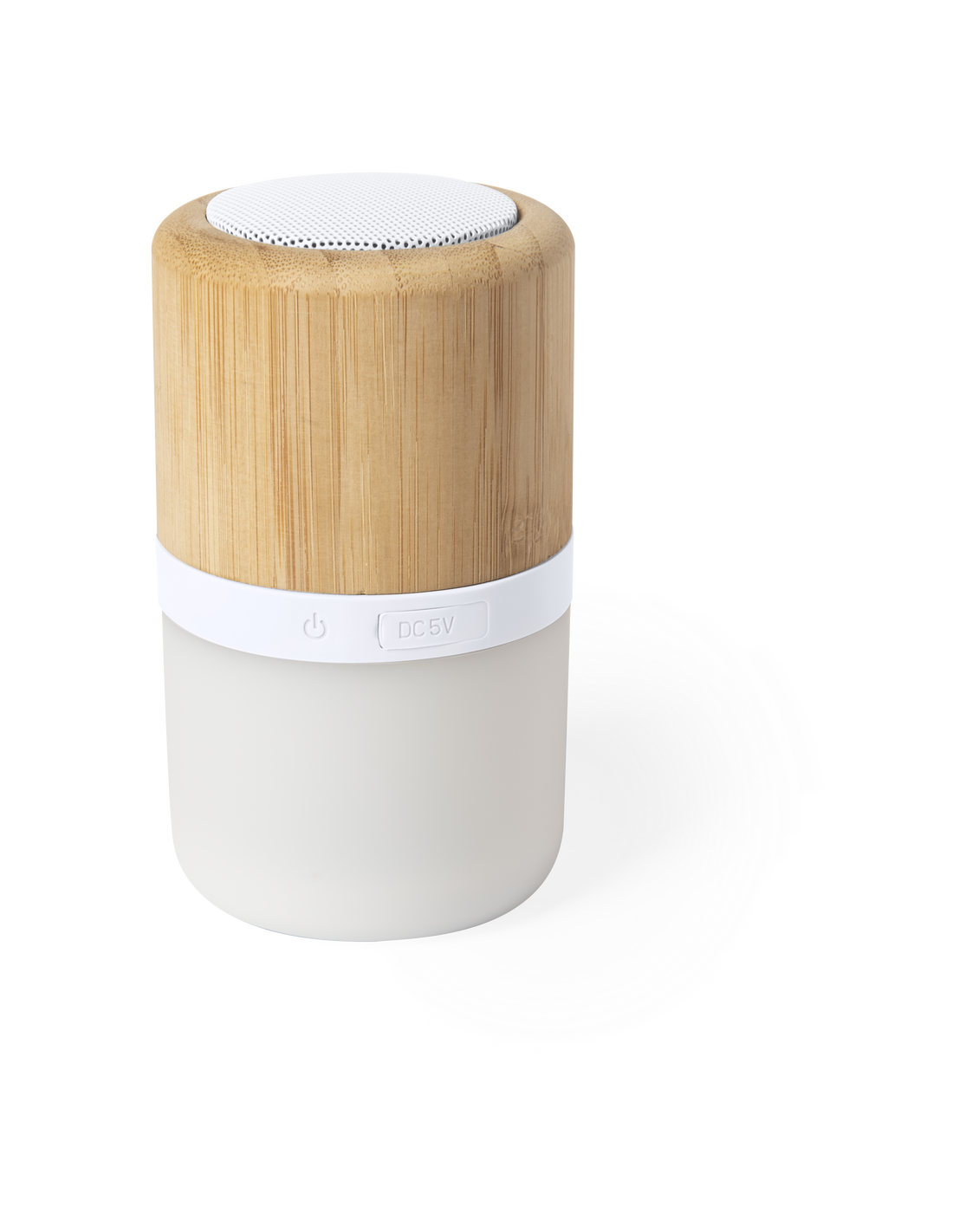 Altavoz de línea nature, con tecnología Led Inteligente y conexión Bluetooth 5.0. Hecho en bambú procedente de cortes naturales. 3W de potencia, con dos posiciones de luz multicolor y recargable mediante cable USB -incluido-. Presentado en atractiva caja de diseño eco.