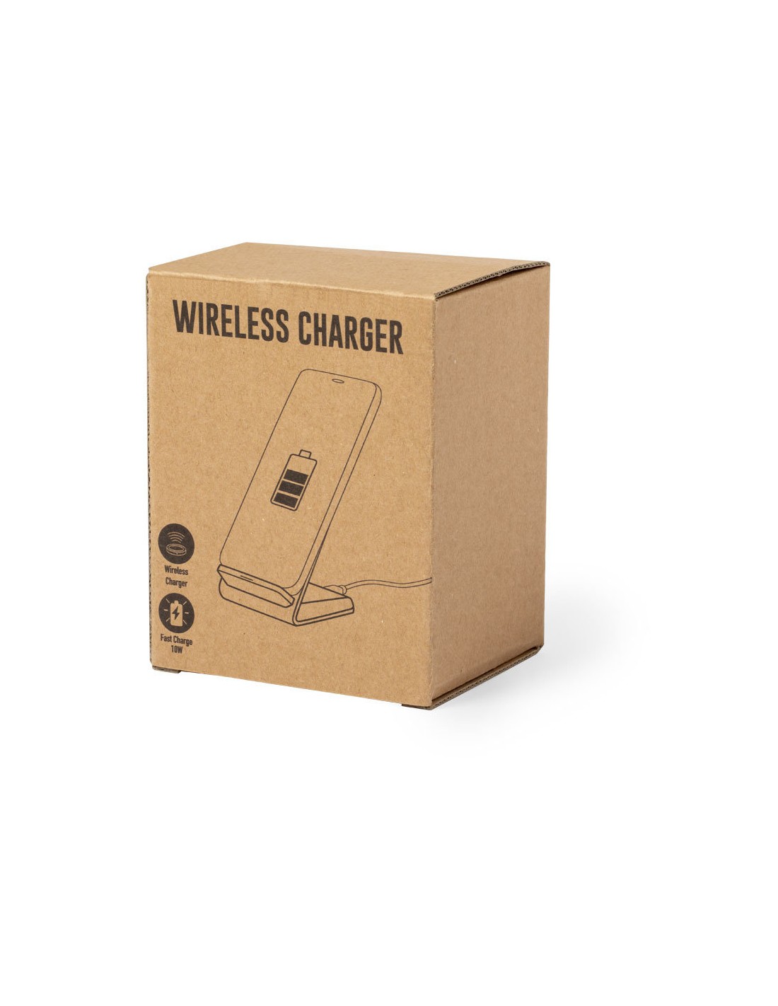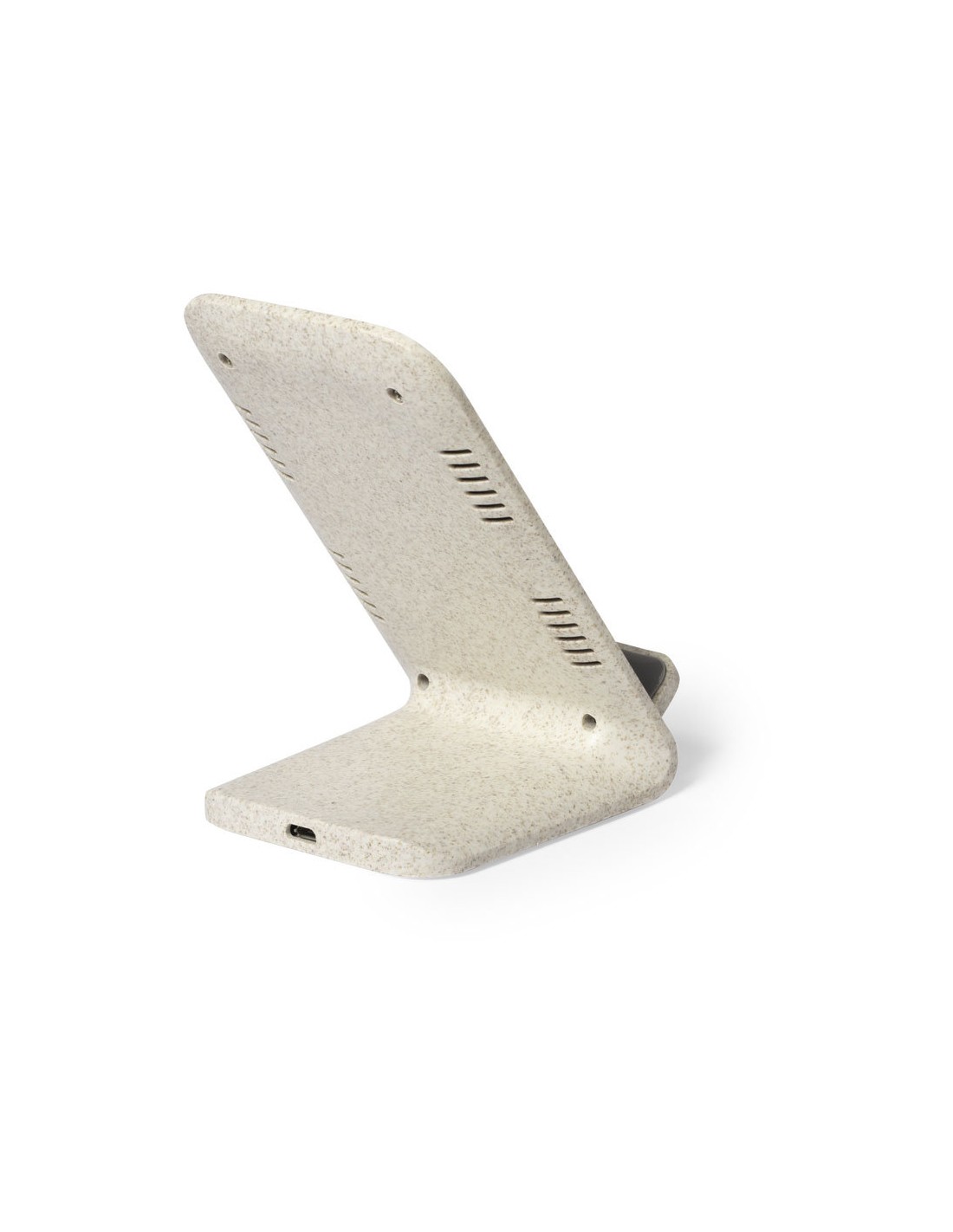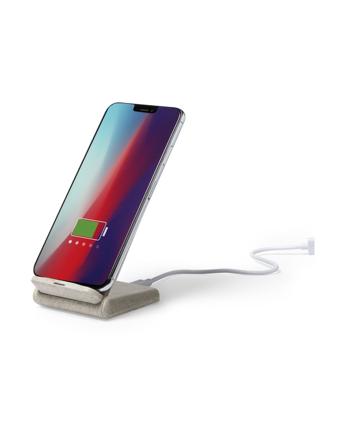 Cargador inalámbrico de línea nature con función soporte para móvil. Carcasa en caña de trigo, para así fomentar la utilización de materias primas naturales y reducir las emisiones contaminantes. Con función carga rápida de 10W y compatible con dispositivos equipados con tecnología de carga inalámbrica. Con luz indicadora de estado de carga y cable de 100 cm. Amplia superficie de marcaje, presentado en atractiva caja de diseño eco.