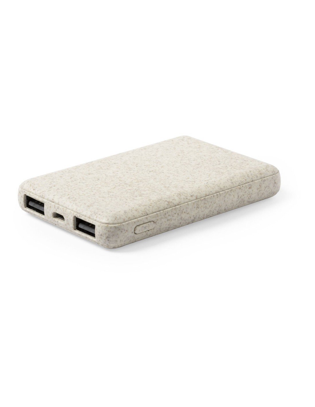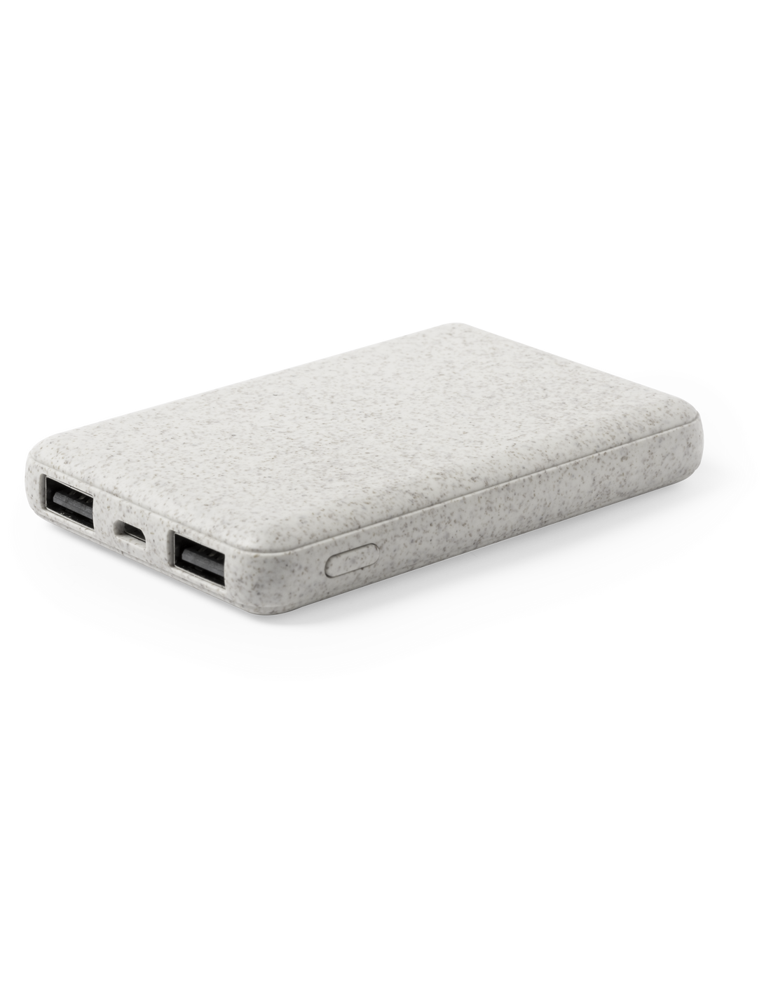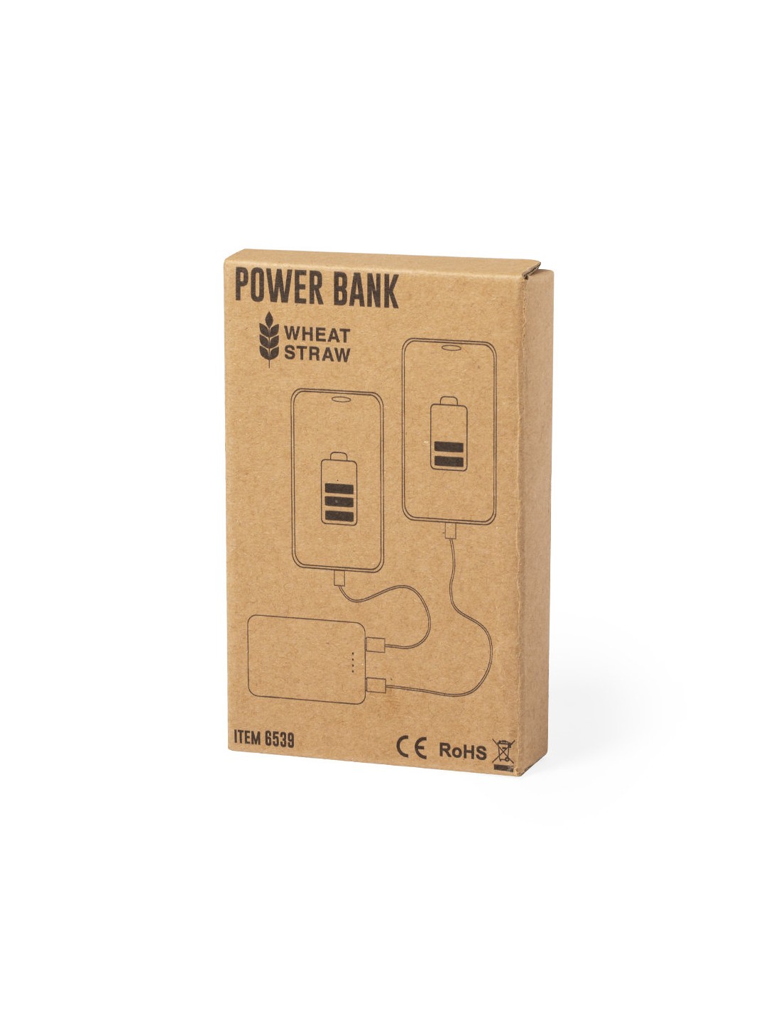 Batería auxiliar externa de línea nature de tamaño ultra compacto, con carcasa en caña de trigo, para así fomentar la utilización de materias primas naturales y reducir las emisiones contaminantes. 5.000 mAh de capacidad de carga e indicador de estado de carga. Salida USB dual para carga simultánea de 2 dispositivos y entrada micro USB -cable incluido-. Con amplia superficie de marcaje y presentado en atractiva caja de diseño eco. Las capacidades mostradas en todas nuestras baterías auxiliares externas son reales, incorporando todas ellas baterías de grado A y no recicladas, con una vida útil de al menos 500 ciclos de carga y según normativa CE. Además, están fabricadas conforme a los estándares RoHS y en cumplimiento con los siguientes requisitos de seguridad: Sistema de protección contra sobrecarga del power bank. Sistema de protección contra descarga completa que proporciona una mayor durabilidad del power bank. Sistema de bloqueo para evitar cortocircuitos. Sistema de transferencia de carga constante, acorde con la capacidad del dispositivo de destino.