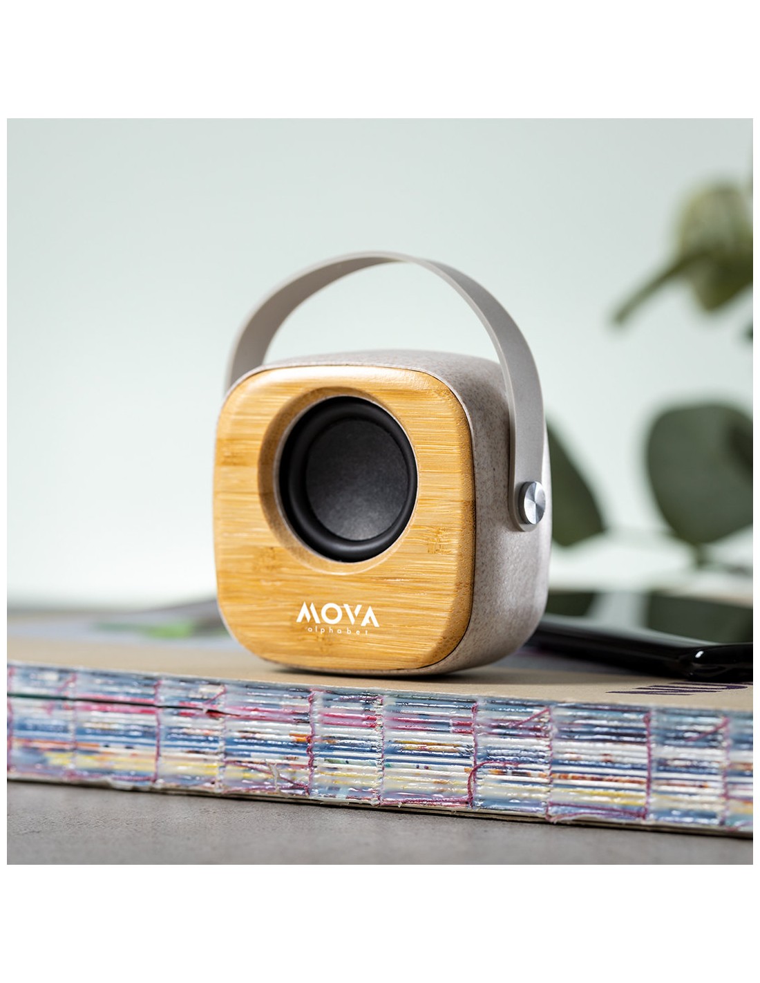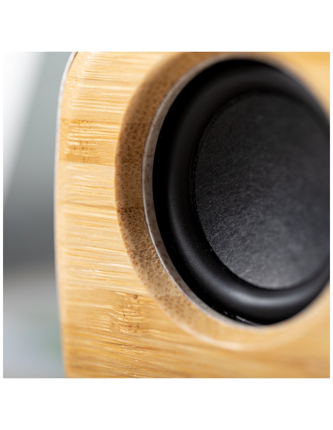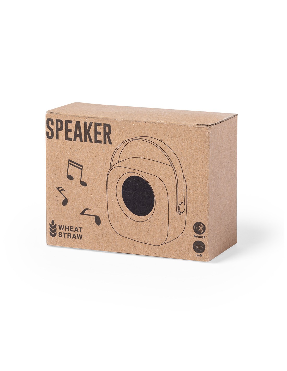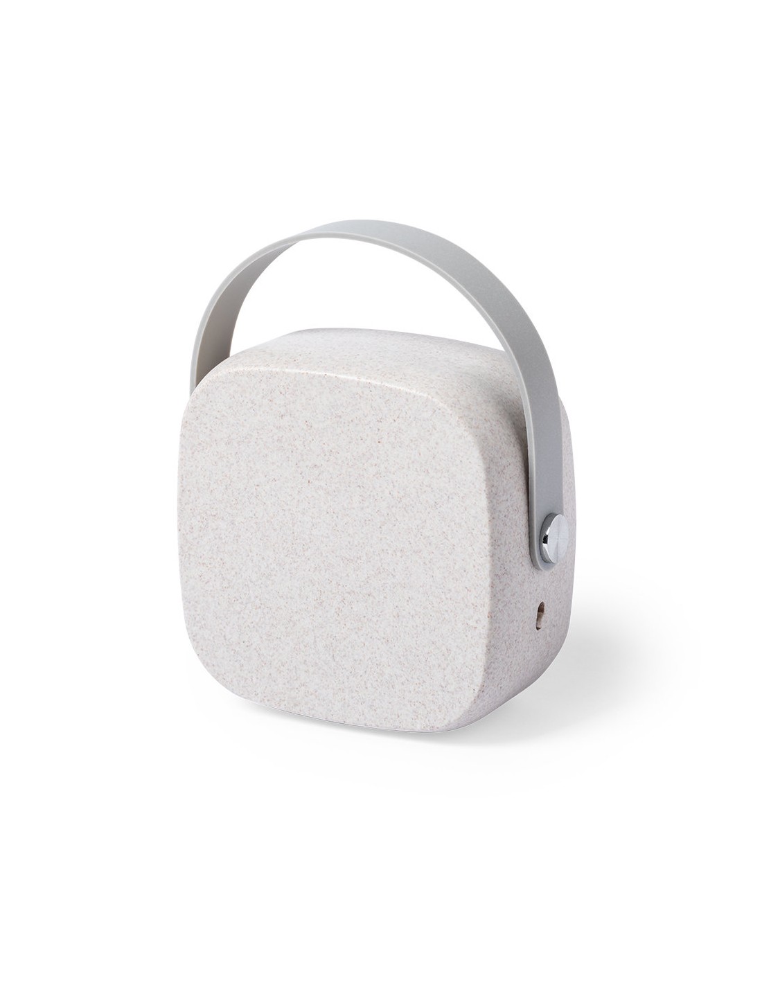 Altavoz Bluetooth en combinación de piezas de bambú de corte nature y carcasa en caña de trigo, para así fomentar la utilización de materias primas naturales y reducir las emisiones contaminantes. De tamaño compacto y con práctica asa de transporte en suave silicona, se convierte en un complemento perfecto para el smartphone. Conexión Bluetooth 5.0 y 3W de potencia, con entrada de línea jack 3,5mm (cable incluido). Compatible con iOS y Android, incluye cable de carga micro USB y viene presentado en atractiva caja de diseño. Disponible manual de instrucciones español e inglés.