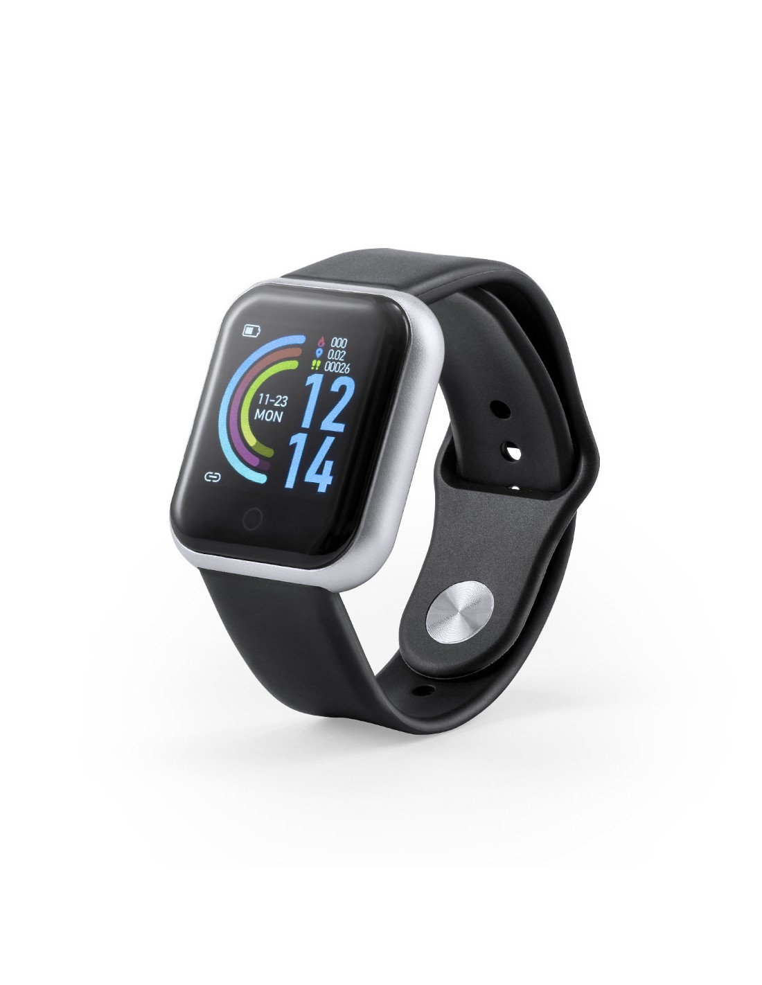 Reloj inteligente multifunción de diseño casual, con conexión Bluetooth. Elegante caja con correa en material TPU y pantalla LCD táctil integrada de 1,44 pulgadas, que lo convierten en el gadget perfecto para todo tipo de actividades deportivas, de ocio y para el día a día. Con funciones monitor de frecuencia cardíaca, presión arterial y oxígeno en sangre, monitor de sueño, cámara remota, alarma, antipérdida y podómetro. Resistente a salpicaduras de agua, con APP disponible para iOS y Android. Presentado en atractiva caja de diseño. Disponible manual de instrucciones en español e inglés.