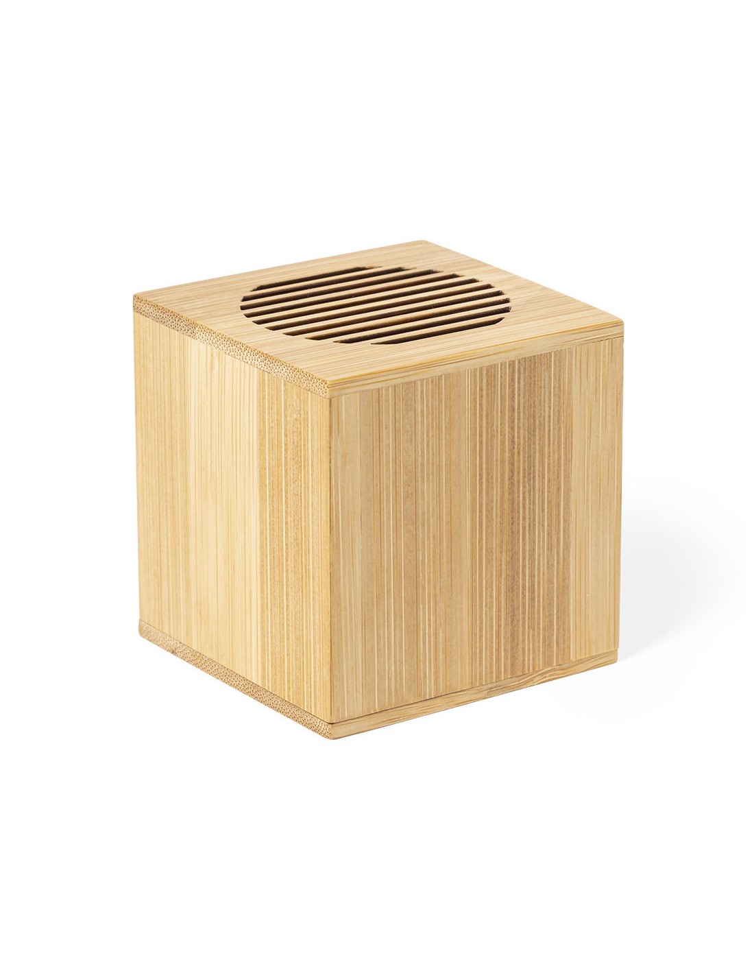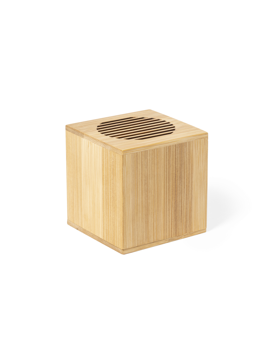 Altavoz inalámbrico de línea nature con conexión Bluetooth 5.0 y 3W de potencia, con batería de litio. Fabricado en bambú Recargable mediante cable Micro USB -incluido-. Amplia superficie de marcaje y presentado en atractiva caja de diseño eco. Disponible manual de instrucciones en español e inglés.