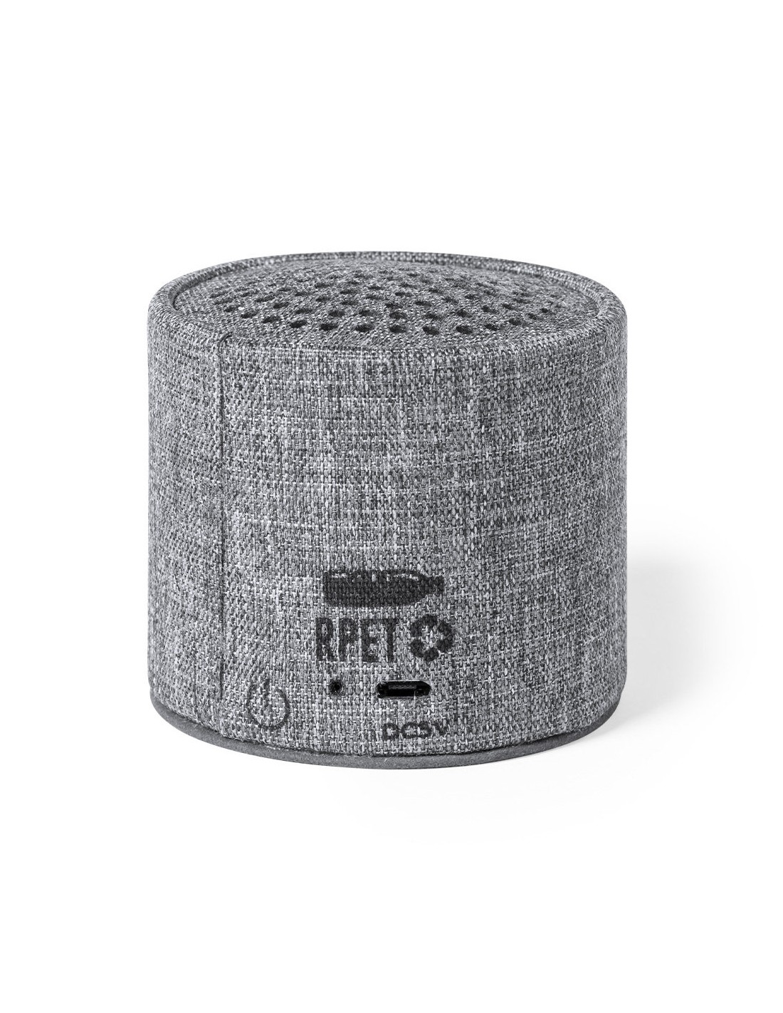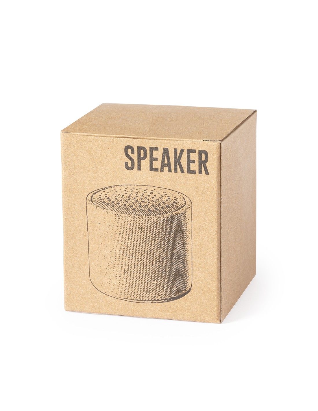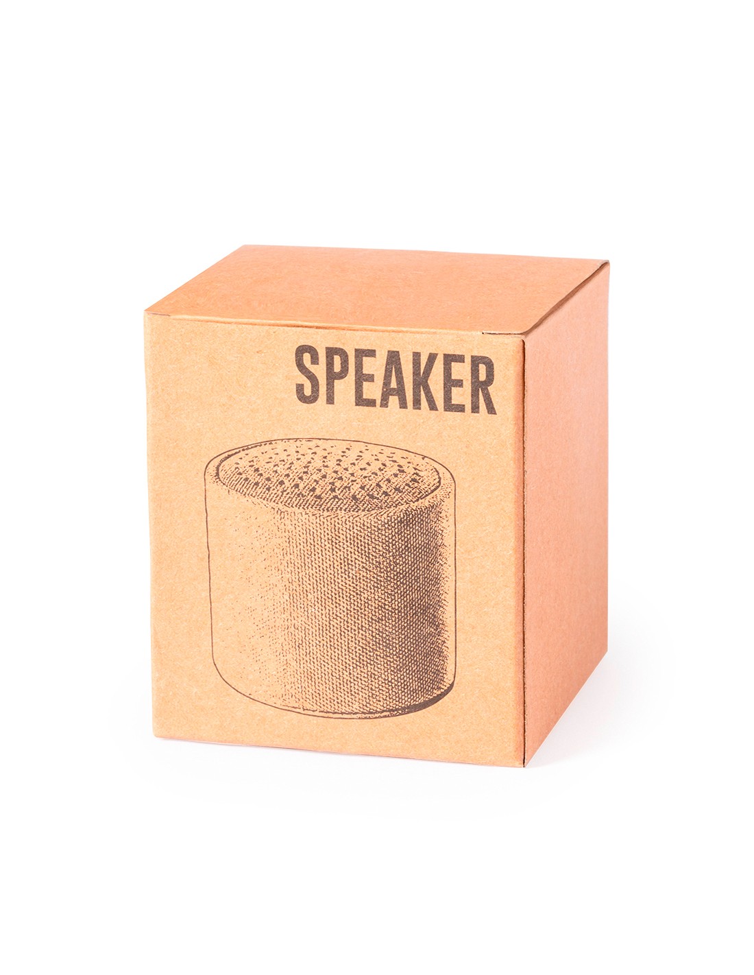 Compacto altavoz de línea nature y conexión Bluetooth 5.0. Carcasa fabricada en poliéster RPET, elaborado a partir de plástico reciclado, para así fomentar la reutilización de residuos plásticos y ayudar a la sostenibilidad del planeta. 3W de potencia, compatible con iOS y Android. Incluye cable de carga micro USB y base antideslizante. Presentado en atractiva caja de diseño eco. Con distintivo RPET sobre el artículo.