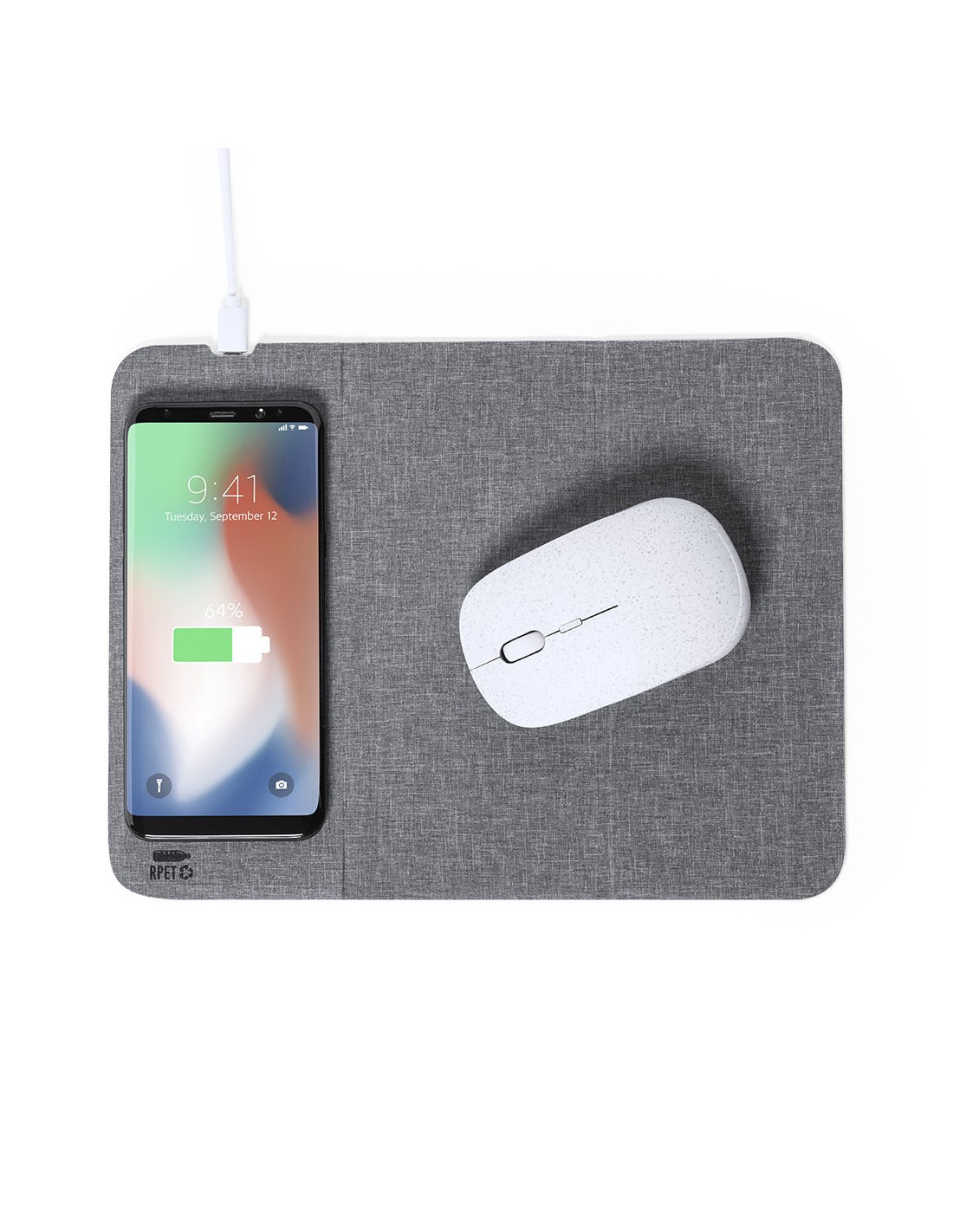Alfombrilla plegable de línea nature y fabricada en combinación de antelina y poliéster RPET, elaborado a partir de plástico reciclado para así fomentar la reutilización de residuos plásticos y ayudar a la sostenibilidad del planeta. Con cargador inalámbrico integrado de 10W -cable Tipo C incluido-. Base antideslizante y soporte multiposición para smartphone. Compatible con dispositivos equipados con tecnología de carga inalámbrica y presentada en atractiva caja de diseño eco. Disponible manual de instrucciones en español e inglés. Distintivo RPET sobre el artículo. En cumplimiento con los requisitos de seguridad: Sistema de protección contra sobrecalentamiento. Sistema de protección contra sobrecarga.Sistema de bloqueo para evitar cortocircuitos.