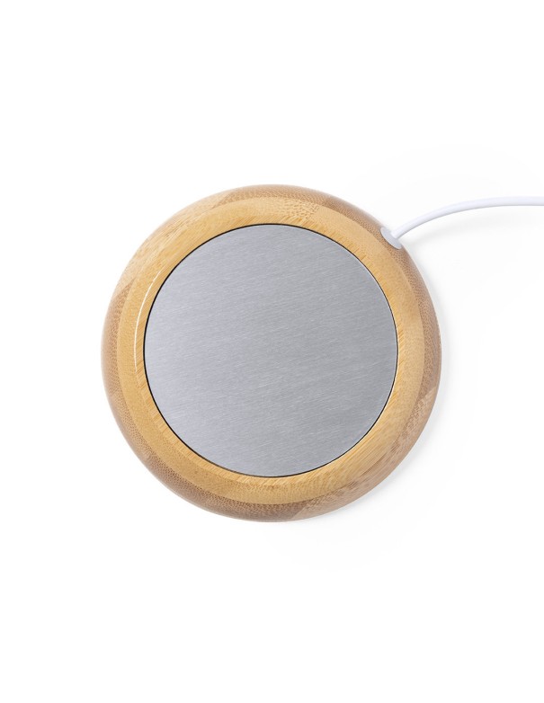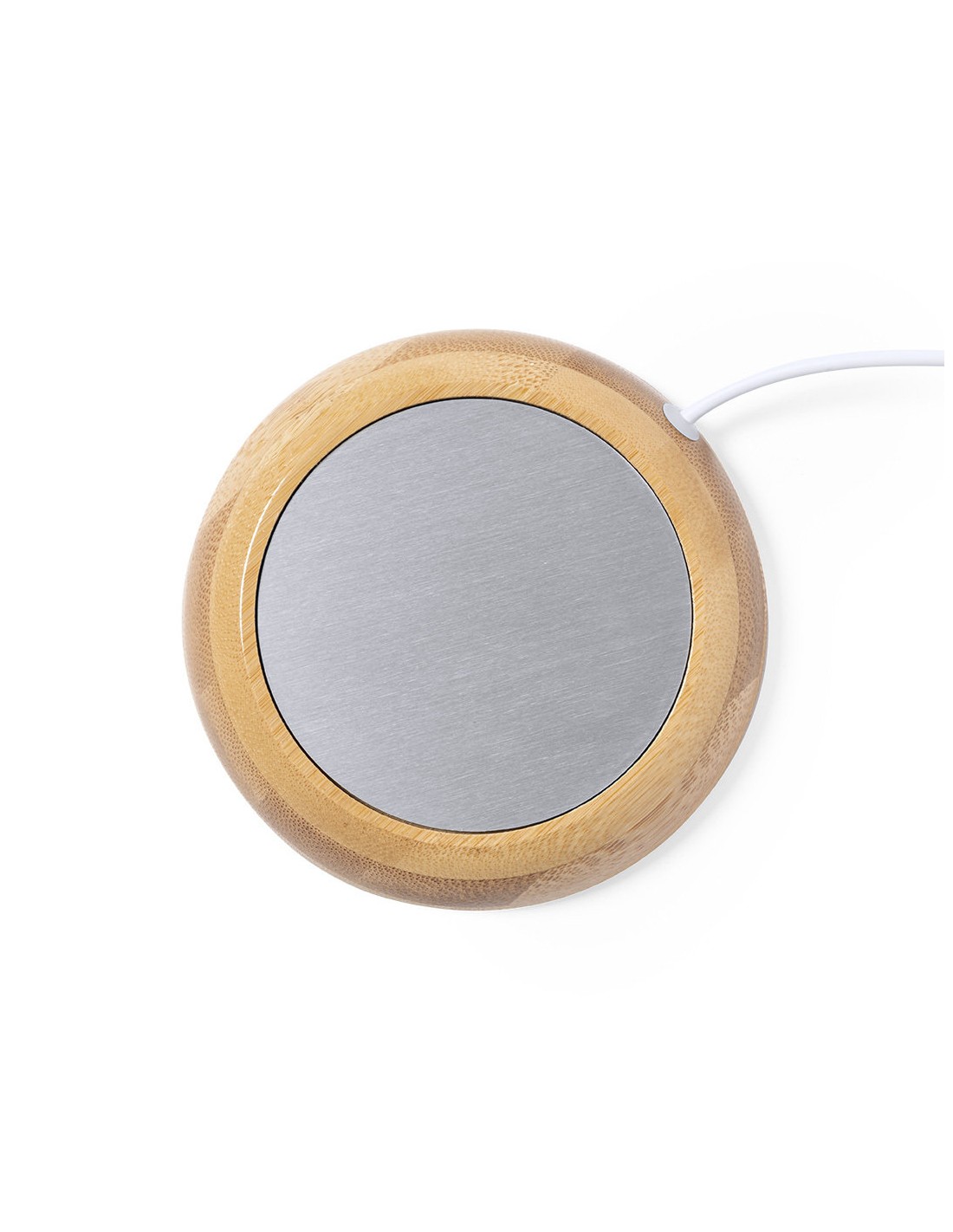 Calentador de tazas de línea nature, fabricado en bambú. Conexión USB y superficie metálica especialmente diseñada para mantener el calor, con base antideslizante en antelina. Presentado en caja individual de diseño eco. Disponible manual de instrucciones en español e inglés.