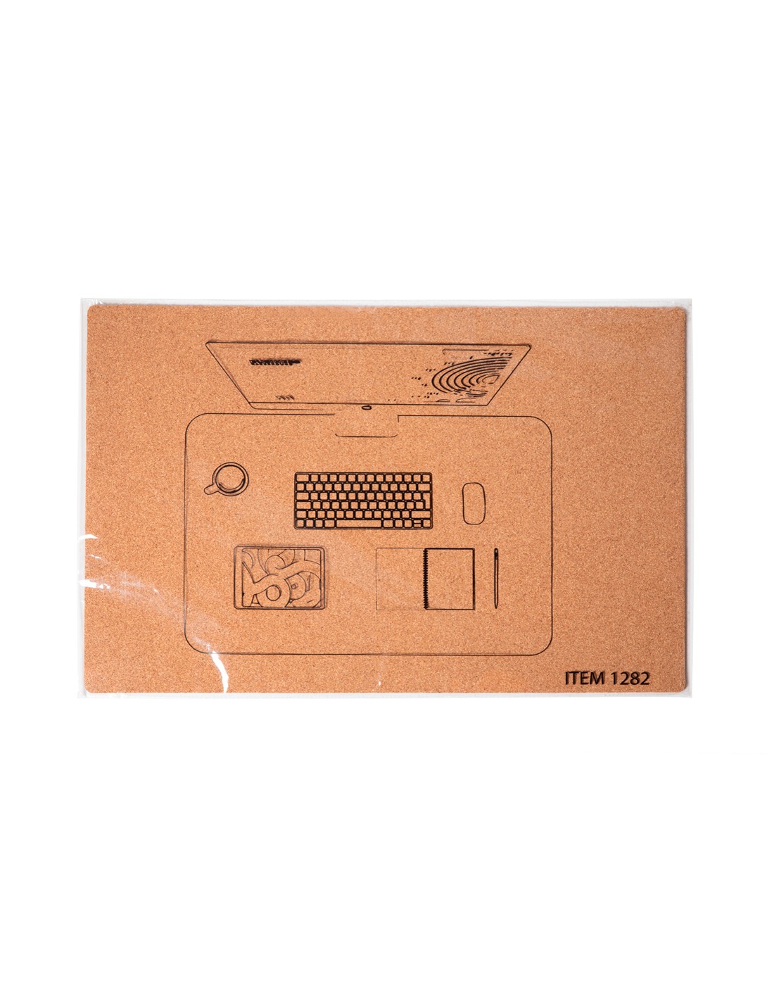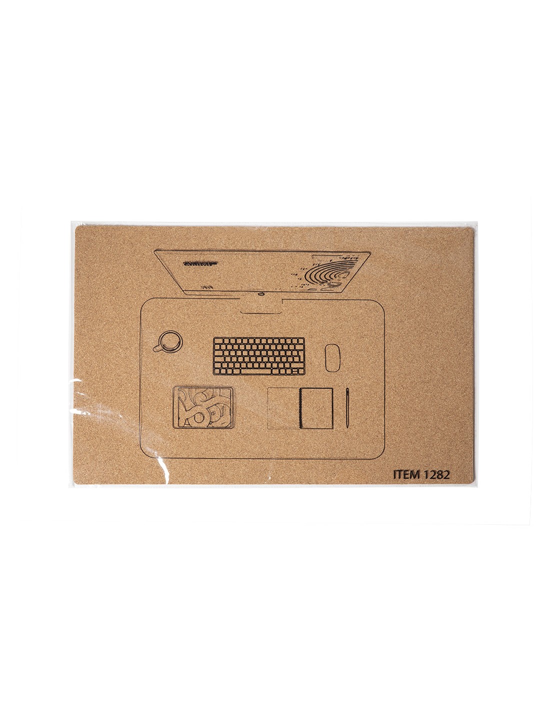 Alfombrilla sobremesa de línea nature fabricada en corcho natural. De tamaño extra grande para dar cabida a los diferentes gadgets del escritorio.