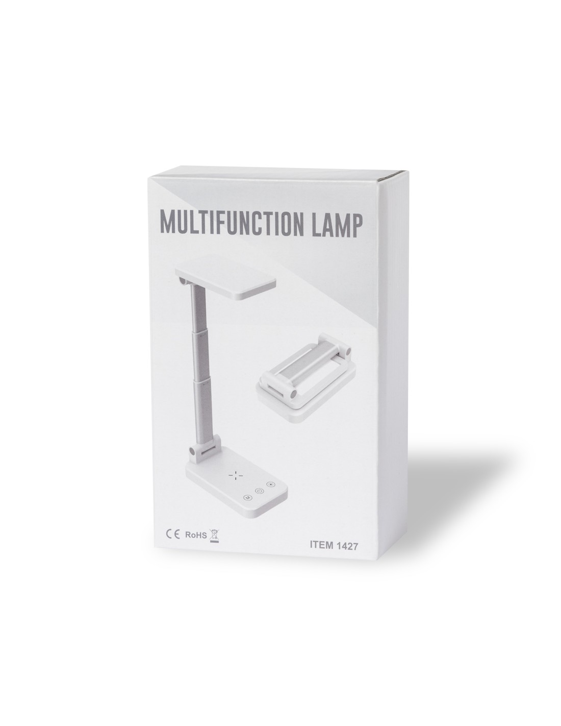 Lámpara multifunción plegable todo en uno, en combinación de aluminio con resistente ABS blanco. 28 LEDs y 3 posiciones de iluminación (cálida, fría y media), con intensidad de luz regulable y ajustable en altura. Cargador inalámbrico 10W integrado y batería de 3.000 mAh, con entrada Tipo C y salida USB. Compatible con dispositivos móviles de carga inalámbrica, incluye cable cargador Tipo C y viene presentada en una atractiva caja de diseño. Las capacidades mostradas en todas nuestras baterías auxiliares externas son reales, incorporando todas ellas baterías de grado A y no recicladas, con una vida útil de al menos 500 ciclos de carga y según normativa CE. Además, están fabricadas conforme a los estándares RoHS y en cumplimiento con los siguientes requisitos de seguridad: Sistema de protección contra sobrecarga del power bank. Sistema de protección contra descarga completa que proporciona una mayor durabilidad del power bank. Sistema de bloqueo para evitar cortocircuitos. Sistema de transferencia de carga constante, acorde con la capacidad del dispositivo de destino.