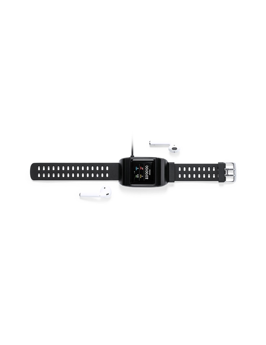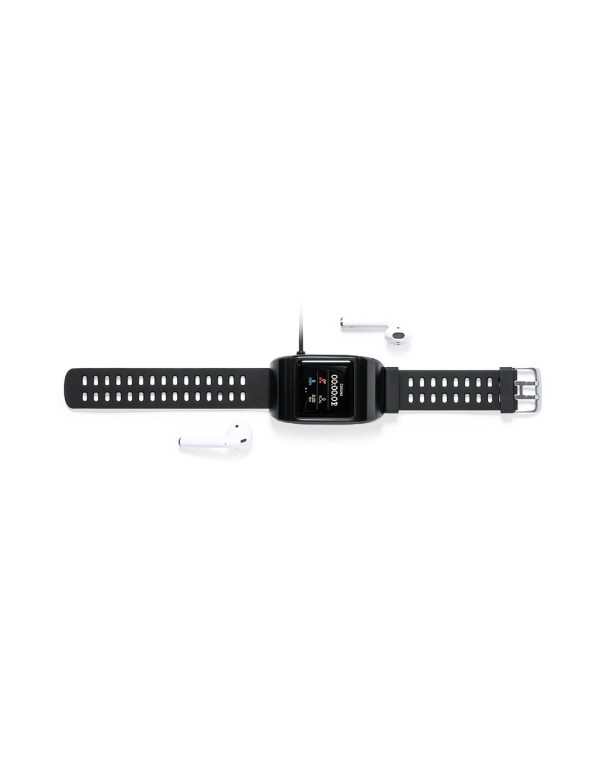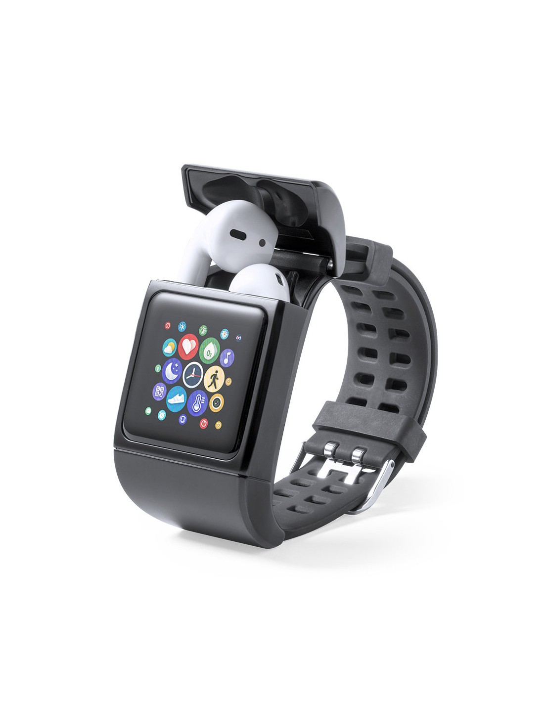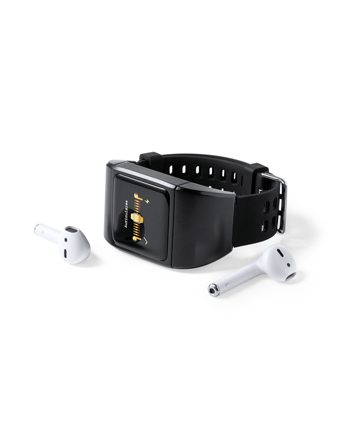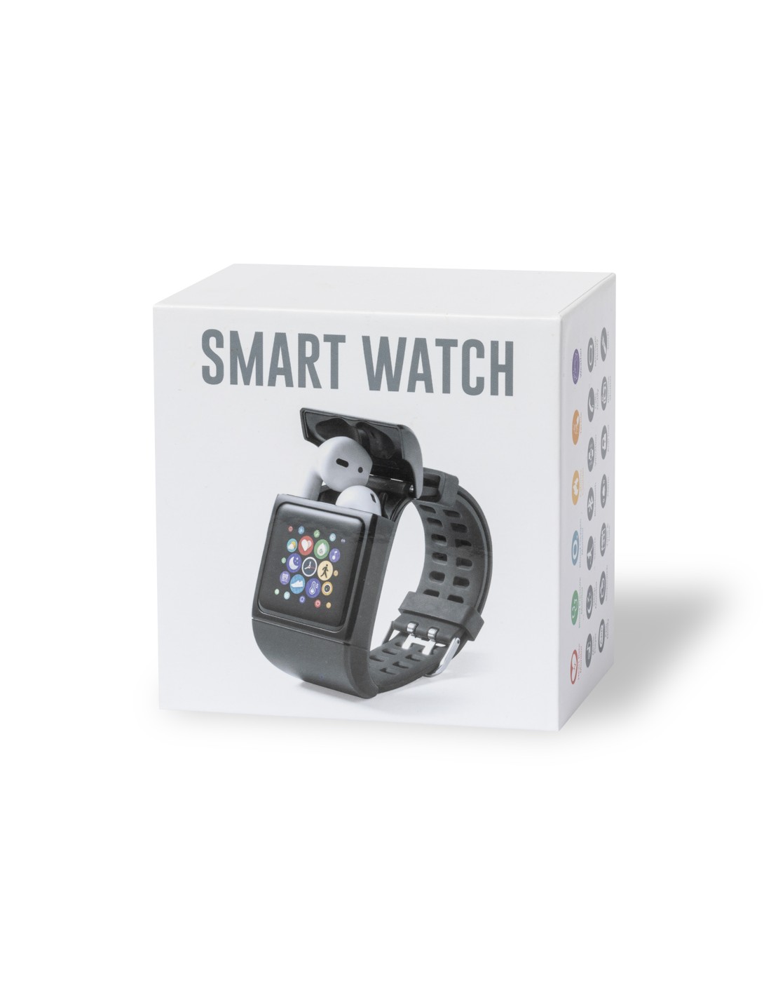 Reloj inteligente multigadget con auriculares intraurales integrados en la carcasa. Con conexión Bluetooth y diseño casual, correa en material TPU y pantalla TFT táctil de 1,30 pulgadas, que lo convierten en el gadget perfecto para todo tipo de actividades deportivas, de ocio y para el día a día. Resistente a salpicaduras de agua, con APP disponible para iOS y Android. Recargable por USB (cable incluido) y presentado en atractiva caja de diseño. Disponible manual de instrucciones en español e inglés.