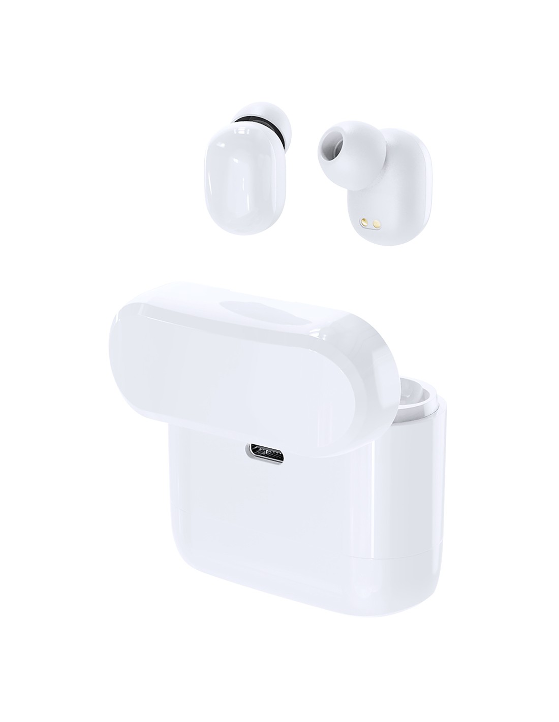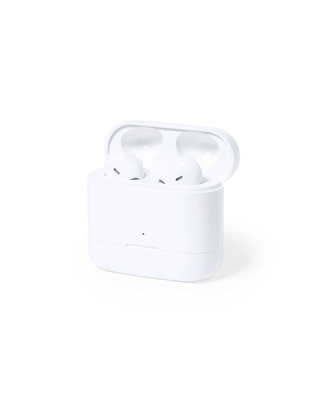 Estuche con 2 pares de auriculares intraurales en elegante acabado blanco y en 2 diseños ergonómicos. Conexión Bluetooth 5.0, con botón de control táctil integrado en el auricular, base de carga a juego e indicadores de estado de carga. Función manos libres y recargables por USB. Presentados en una atractiva caja de diseño.
