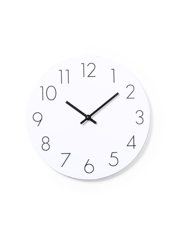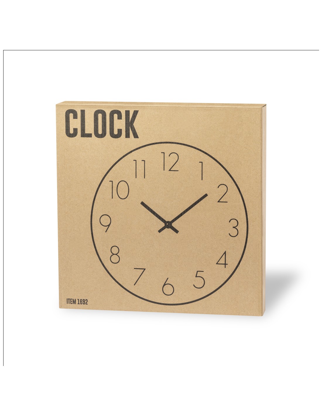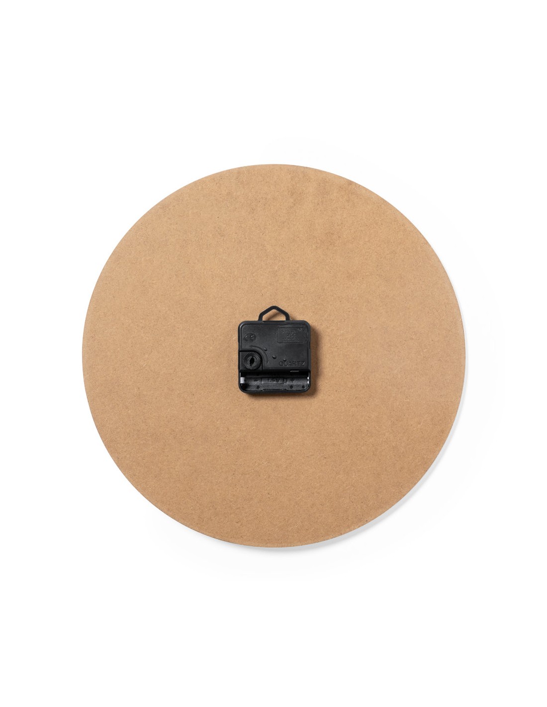 Reloj de pared fabricado en madera MDF y dial en blanco. Presentado en caja individual de diseño kraft. Alimentación a pilas (1xAA no incluida).