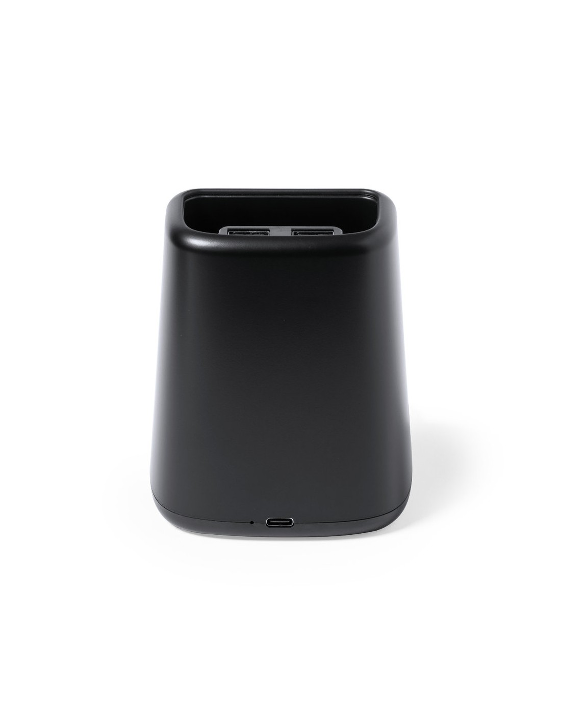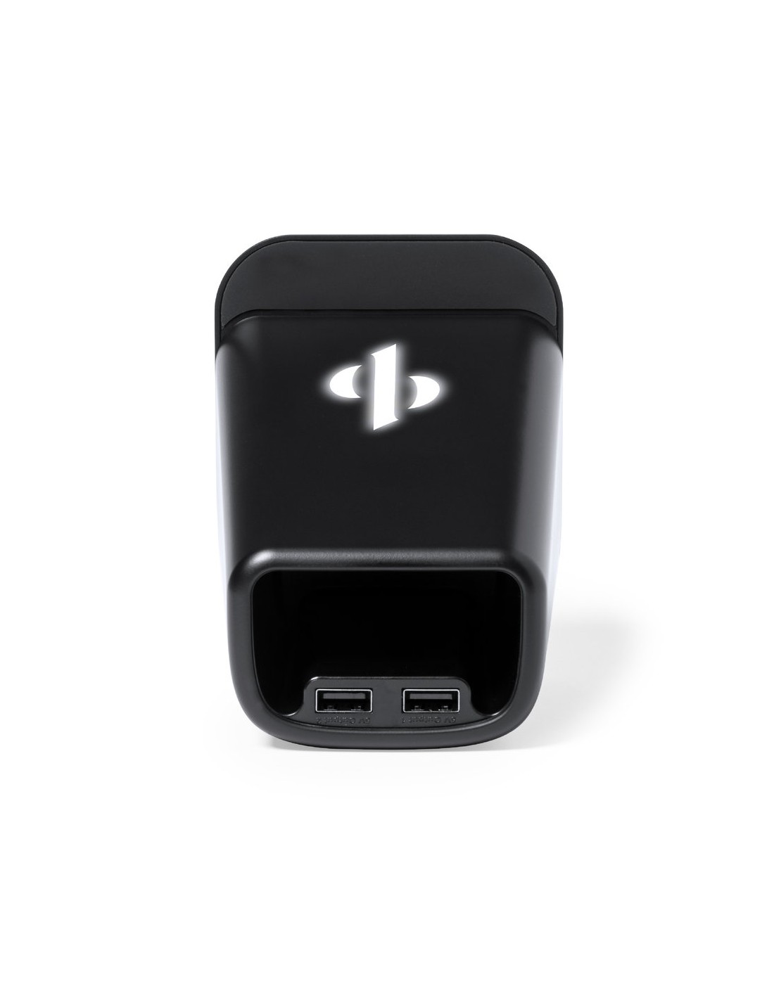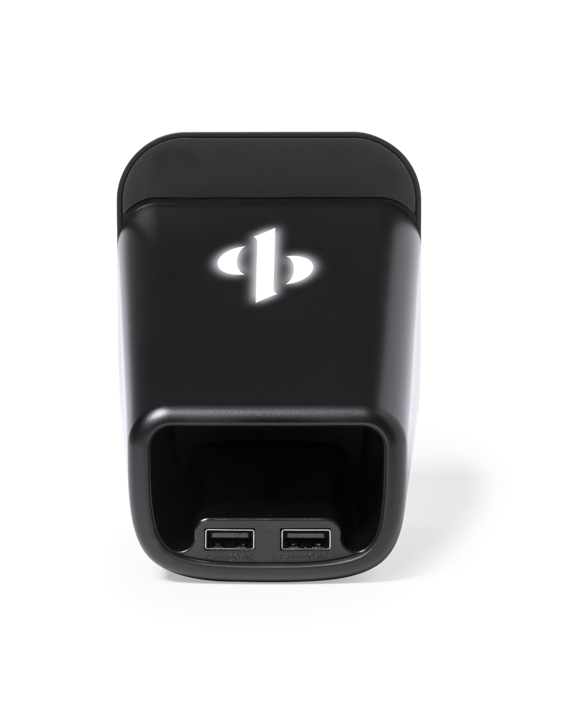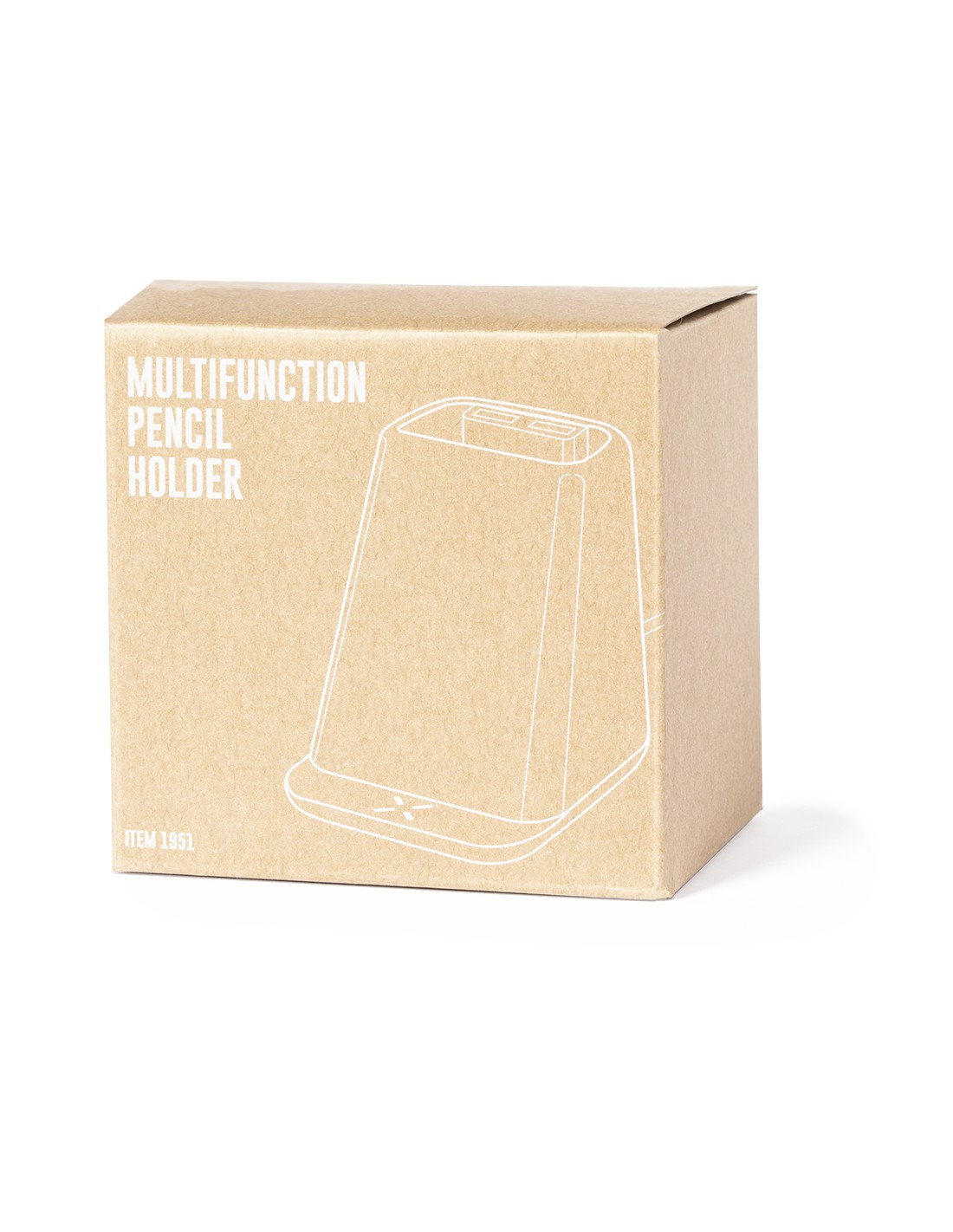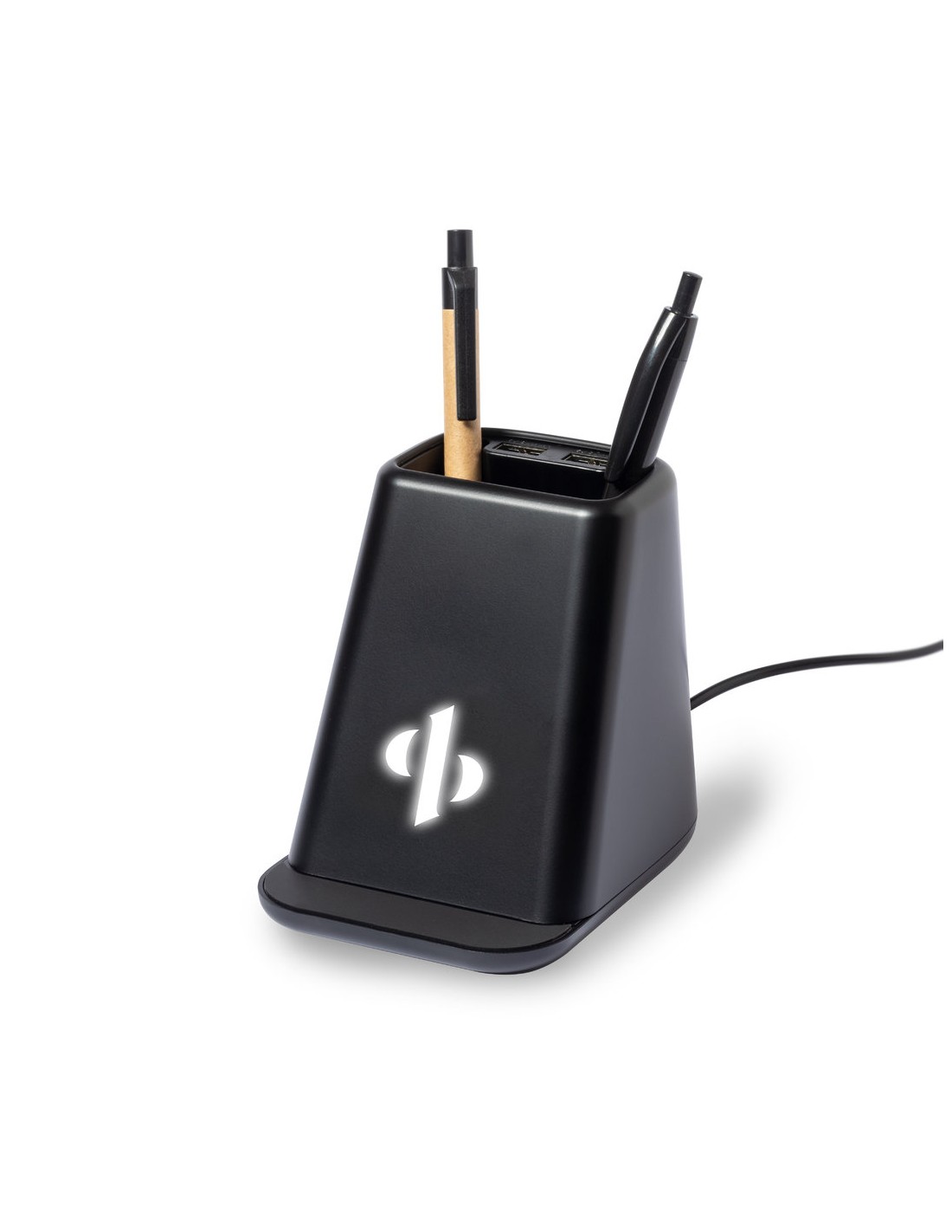 Lapicero multifunción con luz, especialmente diseñado para marcaje en láser e iluminar el logotipo.Con soporte para smartphone y cargador inalámbrico 15W integrado, compatible con dispositivos equipados con tecnología de carga inalámbrica Qi. Incluye 2 salidas USB (5V DC 2A)y cable de carga Tipo C de 150 cm. Base antideslizante y presentado en caja individual de diseño kraft, con manual de instrucciones en español e inglés.Fabricado conforme a los estándares RoHS y en cumplimiento con los siguientes requisitos de seguridad:Sistema de protección contra sobrecalentamiento.Sistema de protección contra sobrecarga.Sistema de bloqueo para evitar cortocircuitos.