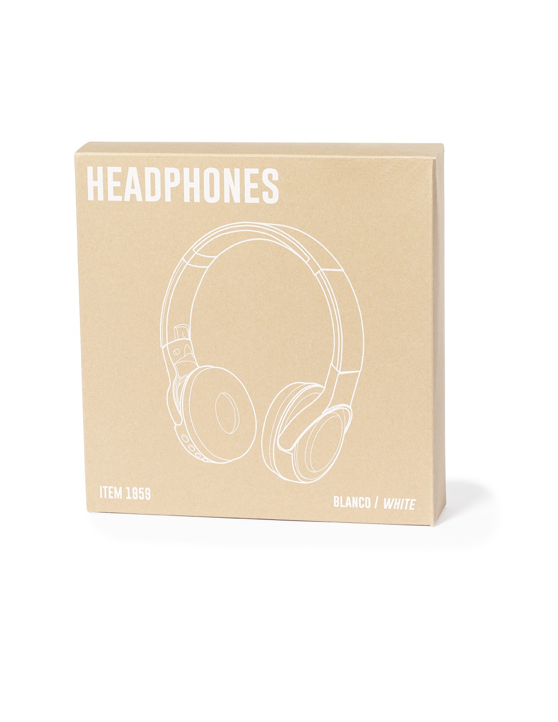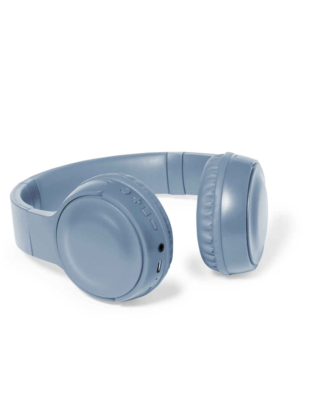 Auriculares plegables de diadema con conexión Bluetooth 5.0, con cuerpo y almohadillas a juego, disponibles en variada gama de colores. Panel de control integrado en el auricular, función manos libres y radio FM con ranura para tarjetas micro SD y entrada de línea mediante conexión jack de 3,5 mm. Recargables mediante cable USB -incluido- y con batería integrada de 200mAh. Almohadillas en suave polipiel con interior a juego y presentados caja individual de diseño kraft.