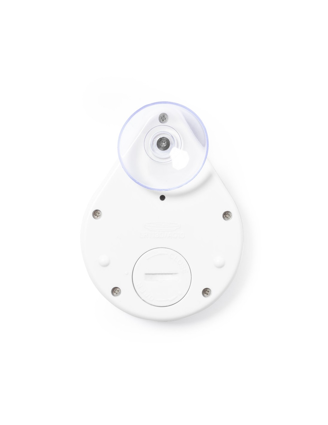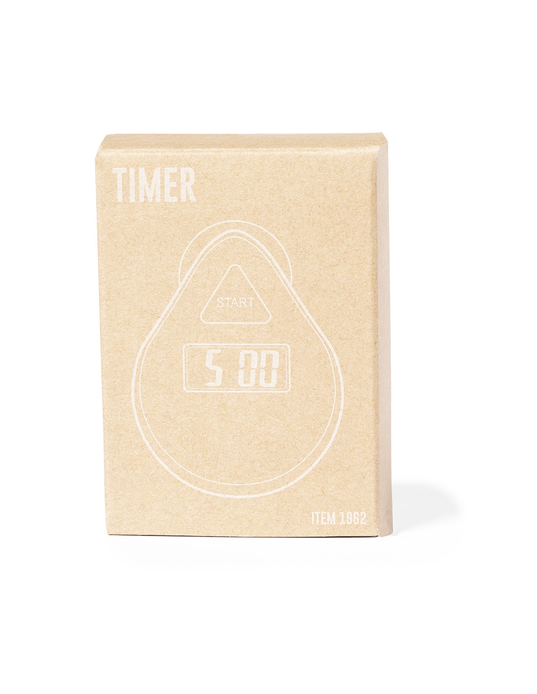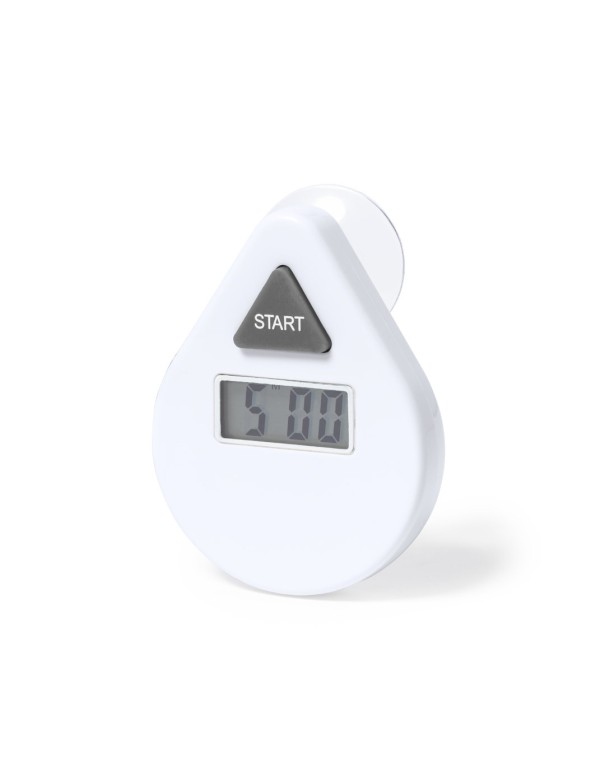 Temporizador fabricado en resistente ABS de acabado blanco y con fijación por ventosa. Pantalla LCD de fácil lectura, con botón de control de cuenta atrás (5 minutos). Alimentación con pila (de botón incluida). Presentada en caja individual de diseño kraft, con manual de instrucciones en español e inglés.