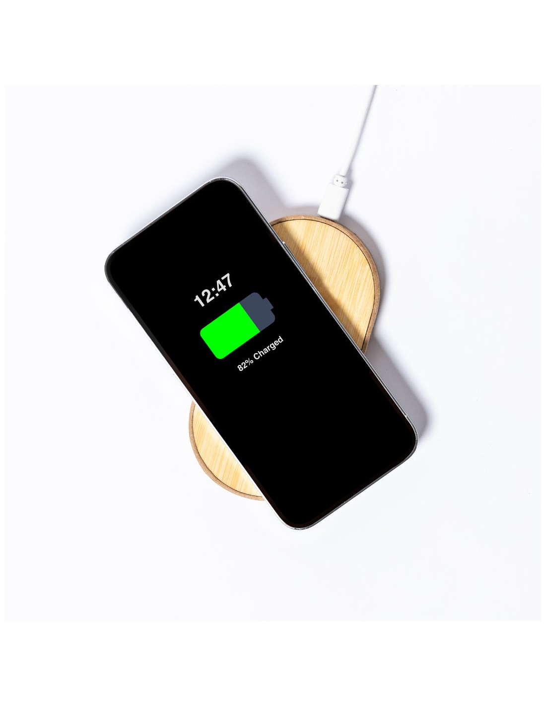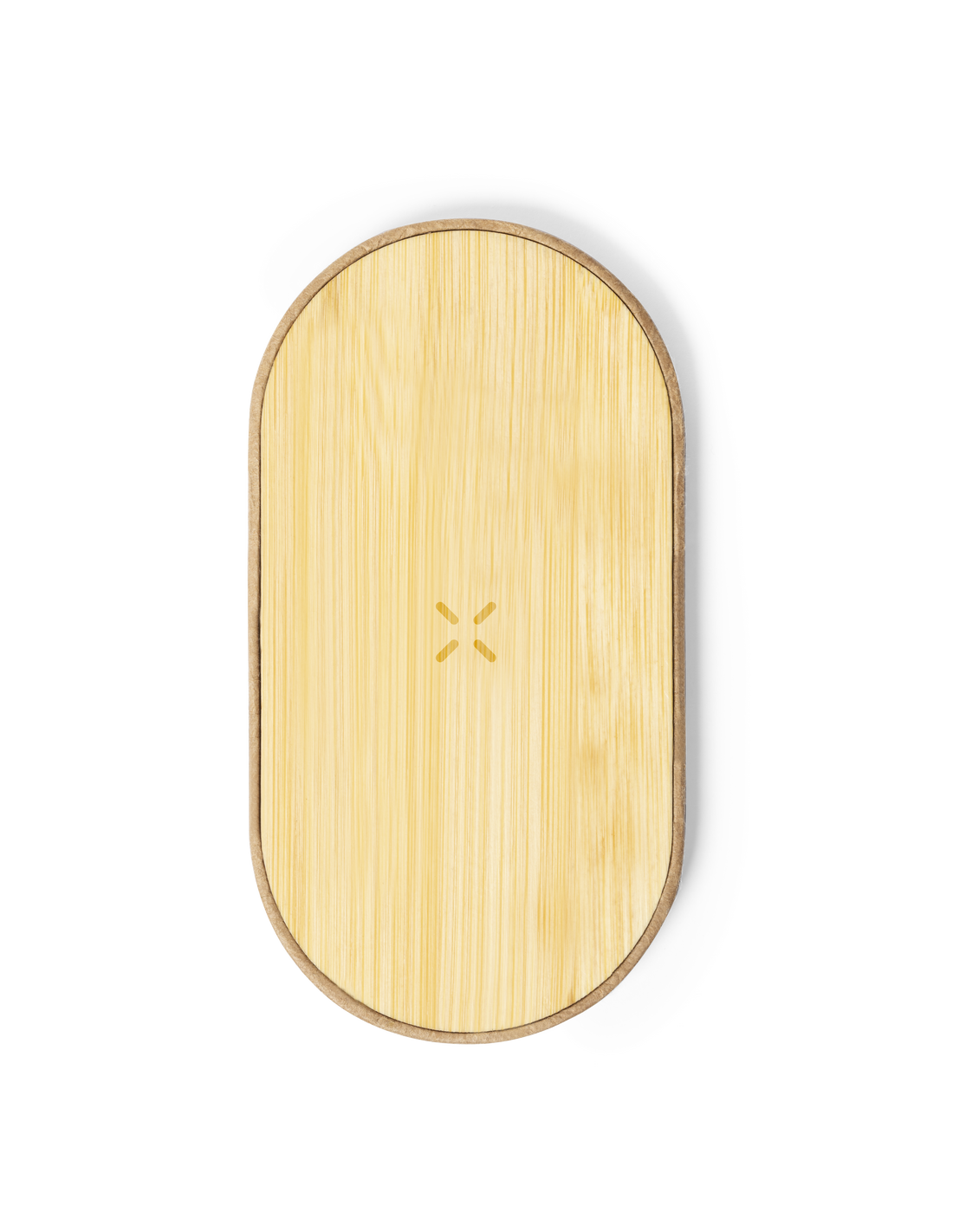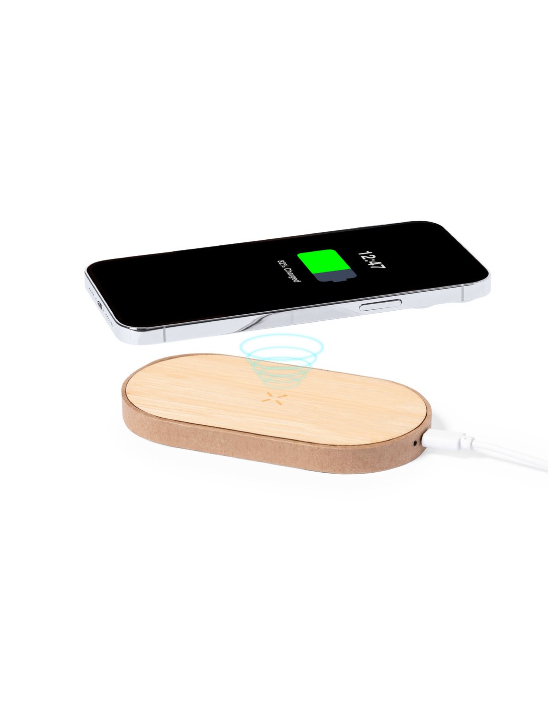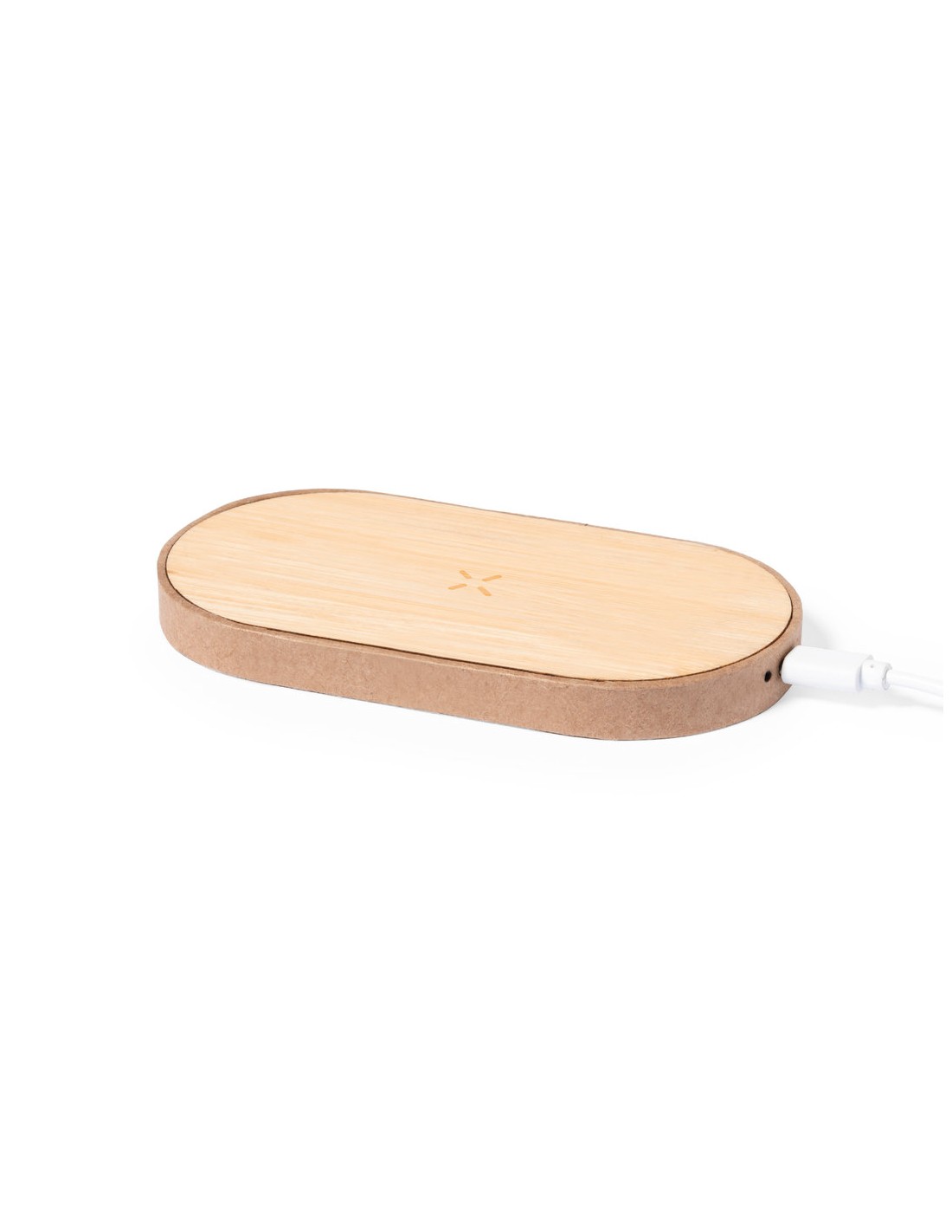 Cargador inalámbrico 10W de línea nature, con base fabricada en cartón reciclado y superficie de carga en bambú. Compatible con dispositivos equipados con tecnología de carga inalámbrica Qi. Con indicador LED de estado de carga y cable de carga Tipo C incluido. Base antideslizante y presentado en caja individual de diseño kraft, con manual de instrucciones en español e inglés.Fabricado conforme a los estándares RoHS y en cumplimiento con los siguientes requisitos de seguridad:Sistema de protección contra sobrecalentamiento.Sistema de protección contra sobrecarga.Sistema de bloqueo para evitar cortocircuitos.