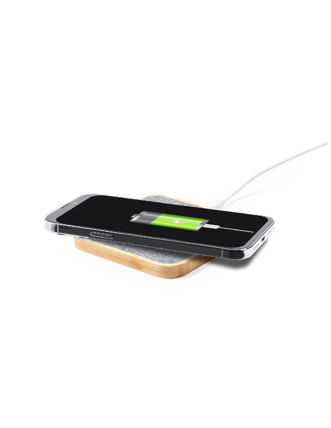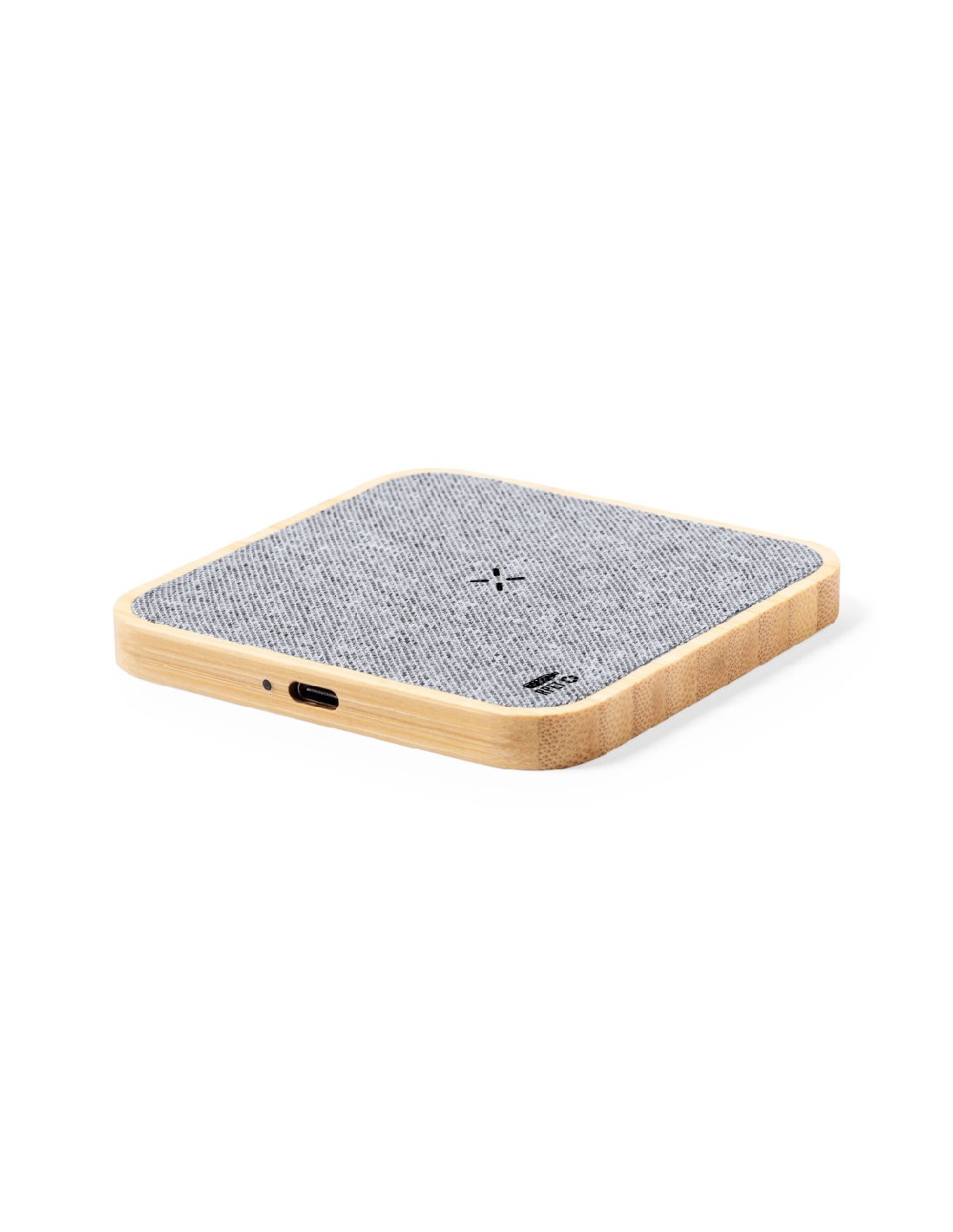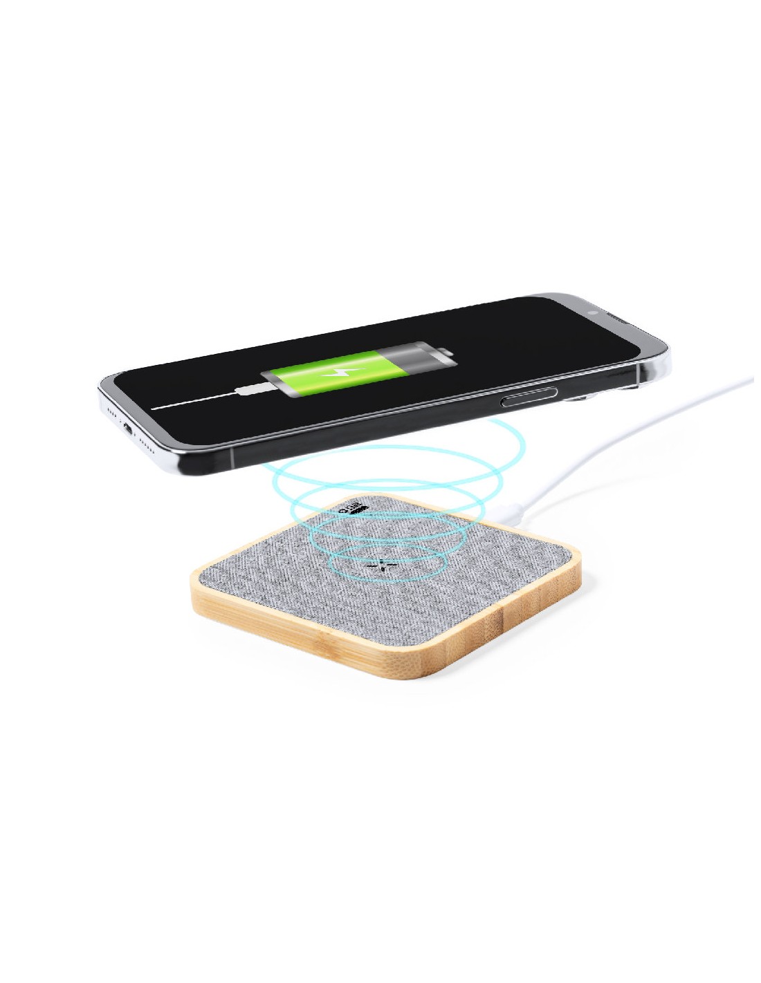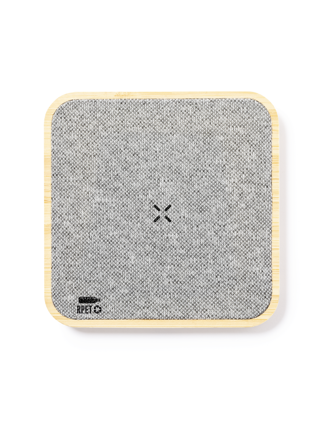 Cargador inalámbrico 15W de diseño rectangular. Fabricado en bambú y poliéster RPET, elaborado a partir de plástico reciclado, para así fomentar la reutilización de residuos plásticos y ayudar a la sostenibilidad del planeta. Compatible con dispositivos equipados con tecnología de carga inalámbrica Qi. Incluye cable cargador Tipo C y manual de instrucciones en español e inglés. Con distintivo RPET y presentado en caja individual de diseño kraft.Fabricado conforme a los estándares RoHS y en cumplimiento con los siguientes requisitos de seguridad:Sistema de protección contra sobrecalentamiento.Sistema de protección contra sobrecarga.Sistema de bloqueo para evitar cortocircuitos.