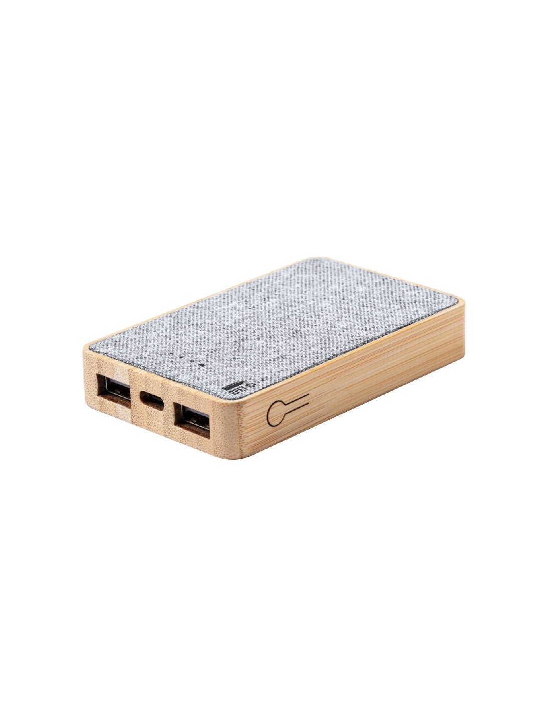Batería auxiliar externa de 5.000 mAh, fabricada en bambú y poliéster RPET, elaborado a partir de plástico reciclado, para así fomentar la reutilización de residuos plásticos y ayudar a la sostenibilidad del planeta. Con 2 salidas USB y conexión dual de entrada y salida Tipo C. Cable de carga Tipo C incluido, con distintivo RPET y presentada en caja individual de diseño kraft. Disponible manual de instrucciones en español e inglés.Entrada/Salida USB C: 5V DC 2.4VSalida USB: 5V DC 2.4ALas capacidades mostradas en todas nuestras baterías auxiliares externas son reales, incorporando todas ellas baterías de grado A y no recicladas, con una vida útil de al menos 500 ciclos de carga y según normativa CE. Además, están fabricadas conforme a los estándares RoHS y en cumplimiento con los siguientes requisitos de seguridad:Sistema de protección contra sobrecarga del power bank. Sistema de protección contra descarga completa que proporciona una mayor durabilidad del power bank. Sistema de bloqueo para evitar cortocircuitos. Sistema de transferencia de carga constante, acorde con la capacidad del dispositivo de destino.