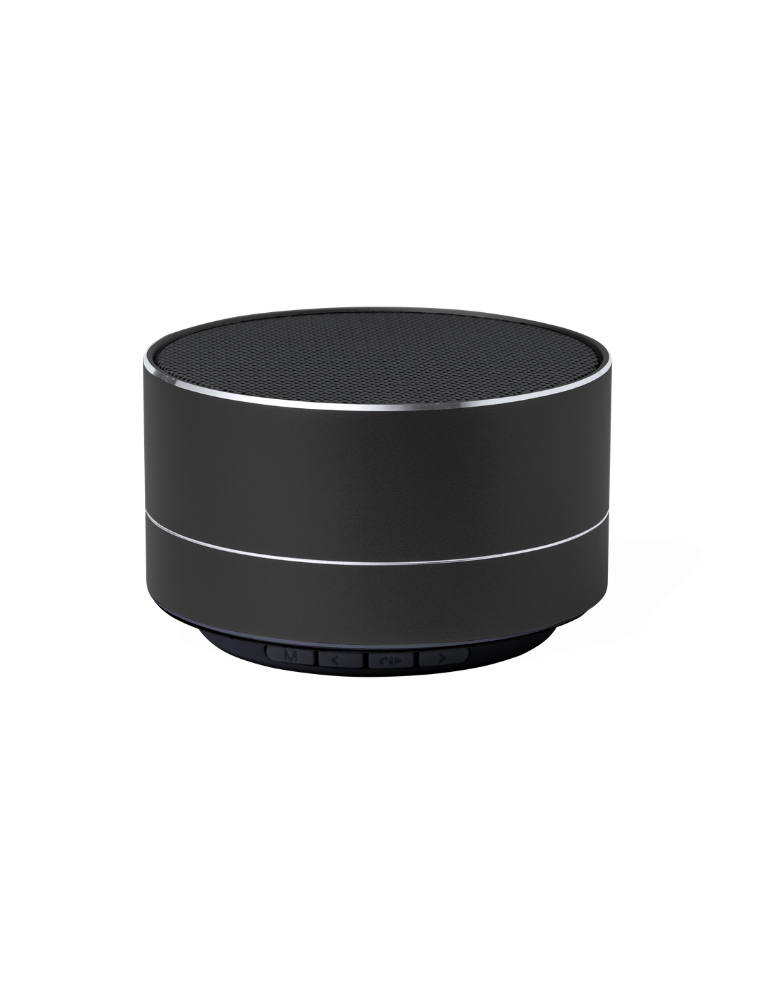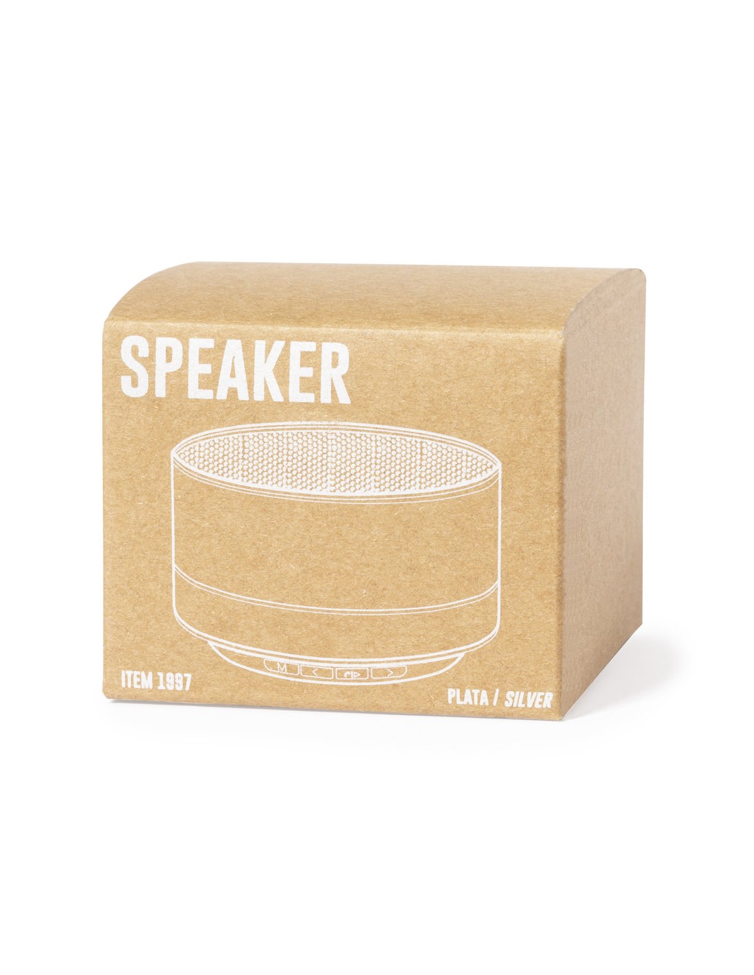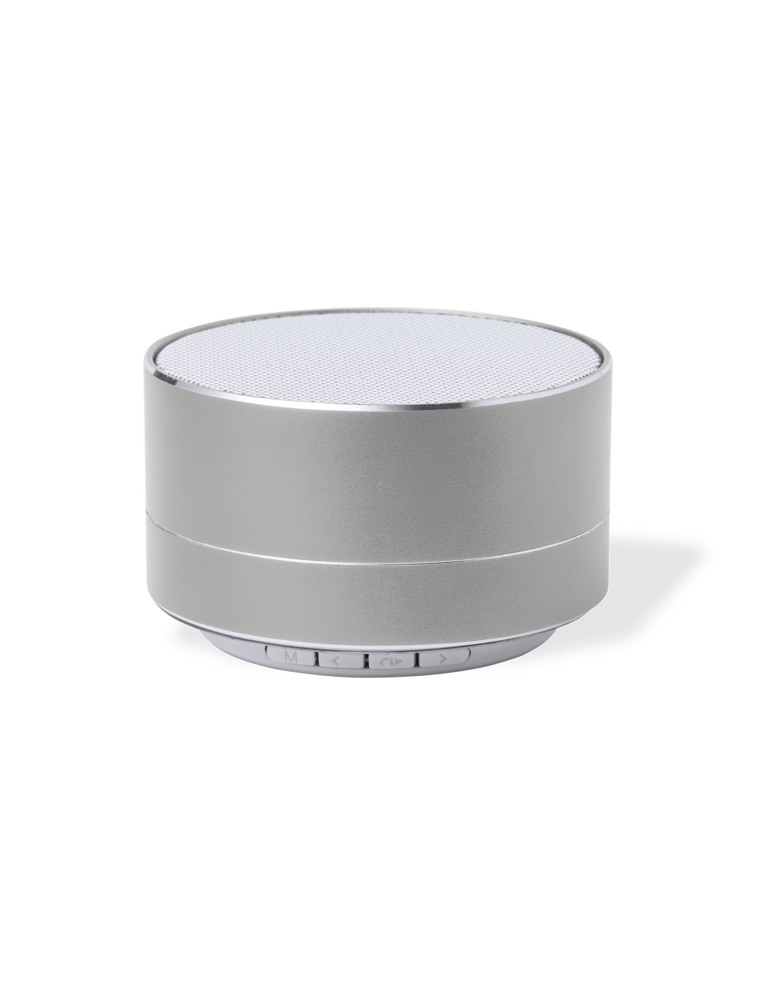 Compacto altavoz con conexión Bluetooth. Fabricado en aluminio reciclado, con posibilidades de reciclaje casi infinitas, sin perder sus propiedades originales y consumiendo menos energía en este proceso. Con 3W de potencia y batería de 450 mAh. Conexión Bluetooth 5.0, con función manos libres y radio FM. Ranura para tarjetas micro SD, con luz ambiente en la parte inferior. Disponible en variada gama de colores y presentado en caja individual de diseño kraft, con manual de instrucciones en español e inglés.