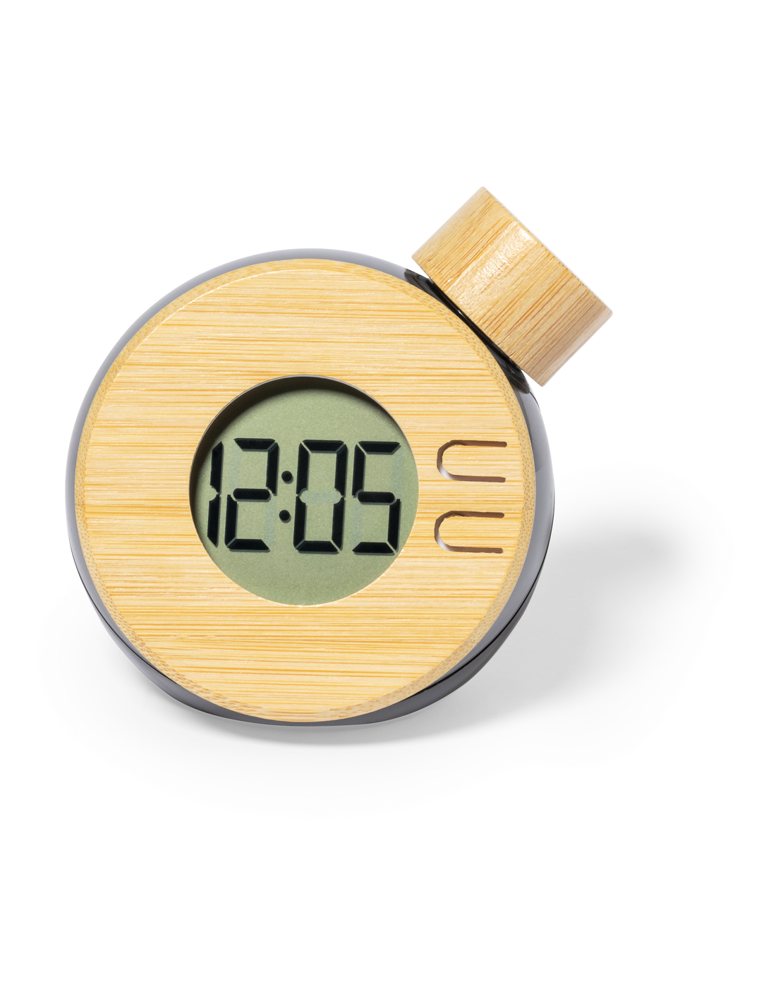 Elegante y sostenible reloj de mesa, fabricado en bambú natural.Funcionamiento único, sin necesidad de baterías. Simplemente funciona con agua, un tributo a la sostenibilidad y la innovación.Gran pantalla LCD que muestra la hora en formato de 12 horas, AM y PM. Incluye indicador de fecha que proporciona información adicional de un solo vistazo. Este sorprendente reloj viene presentado en una caja de diseño kraft y protegido con papel, reforzando así su estética natural y consciente.Materiales como el bambú fomentan la utilización de materias primas naturales reduciendo las emisiones contaminantes. Además, el bambú proviene de una planta de gran resistencia y versatilidad, con crecimiento y regeneración rápida, siendo una excelente alternativa al uso de madera tradicional.